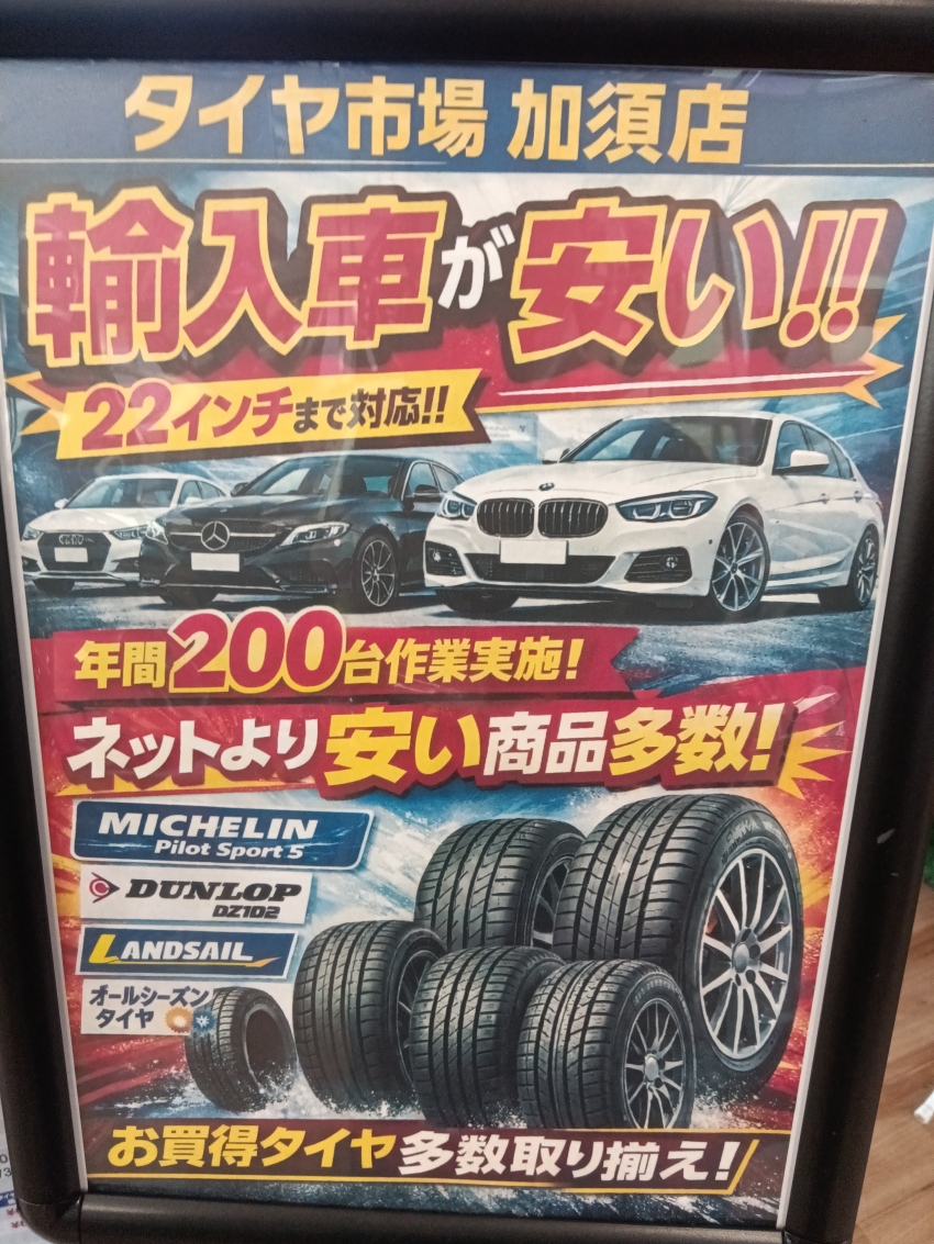 タイヤ市場加須店は輸入車タイヤが安い