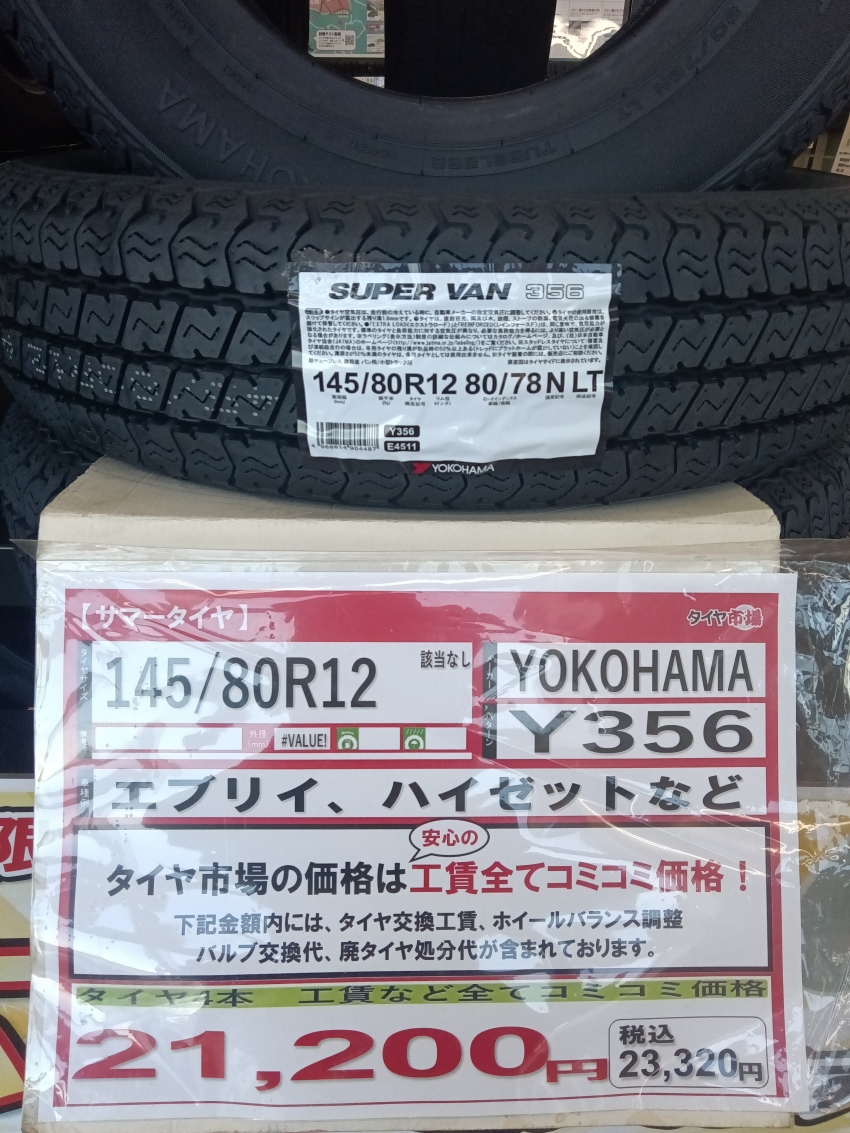 軽トラ、軽バンに最適 ヨコハマY356 他店に負けない大特価価格で販売中