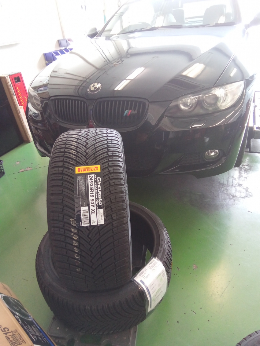 本日 BMW 5 シリーズでピレリのオールシーズンタイヤサイズは245/35R19持ち込みで作業させていただきました。