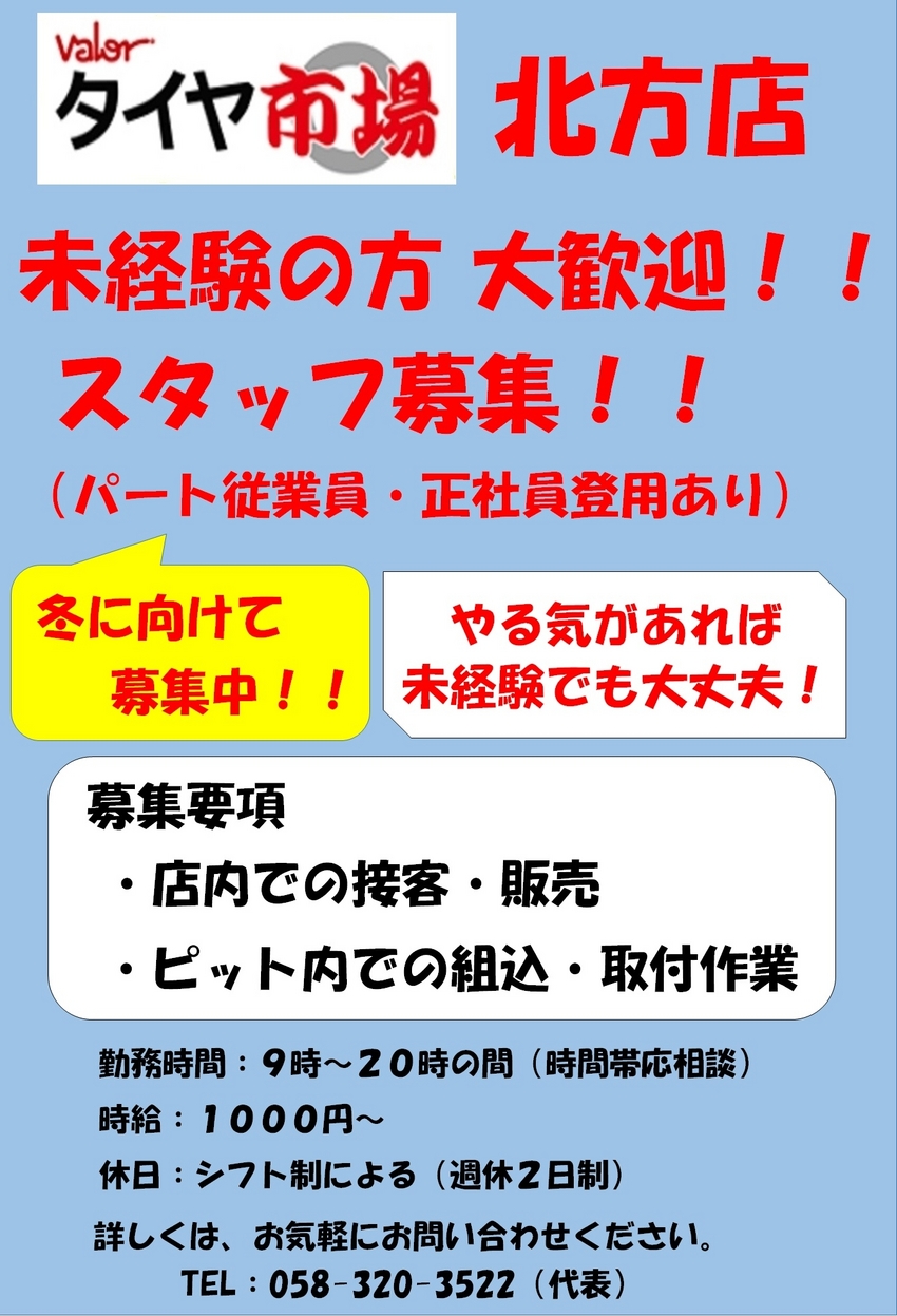 只今、北方店では冬に向けてピット作業人員を大募集中です。