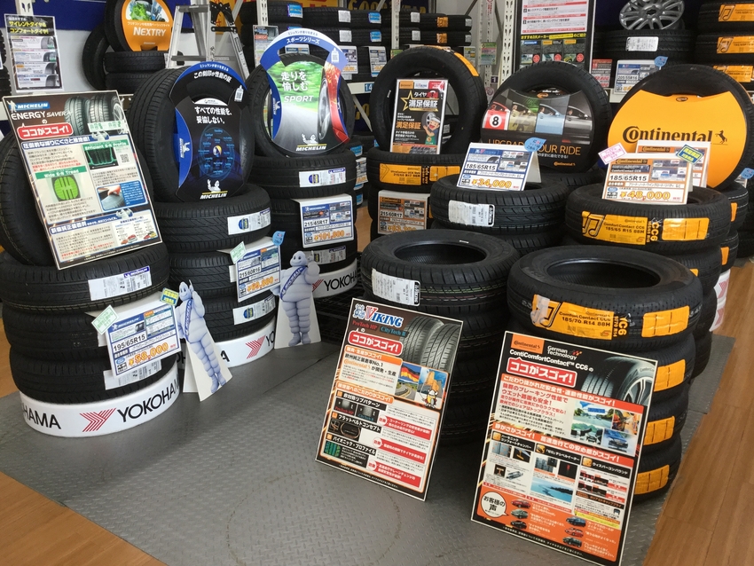 サマータイヤが続々入荷し売り場の衣替えを行っています。