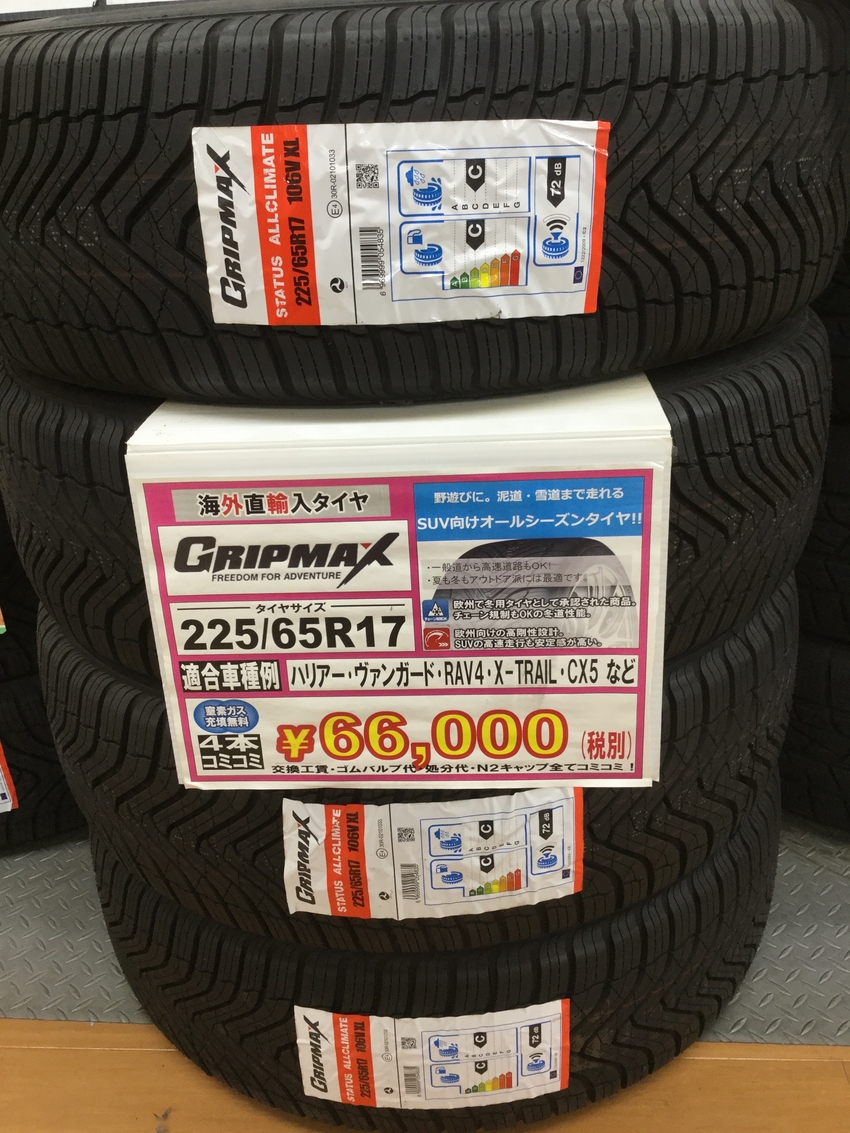 今回は当店のお勧めタイヤ グリップマックスのオールシーズンタイヤをご紹介します。