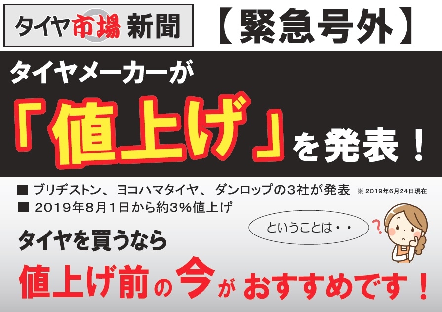 大手メーカーが8月よりタイヤの値上げを発表しました。