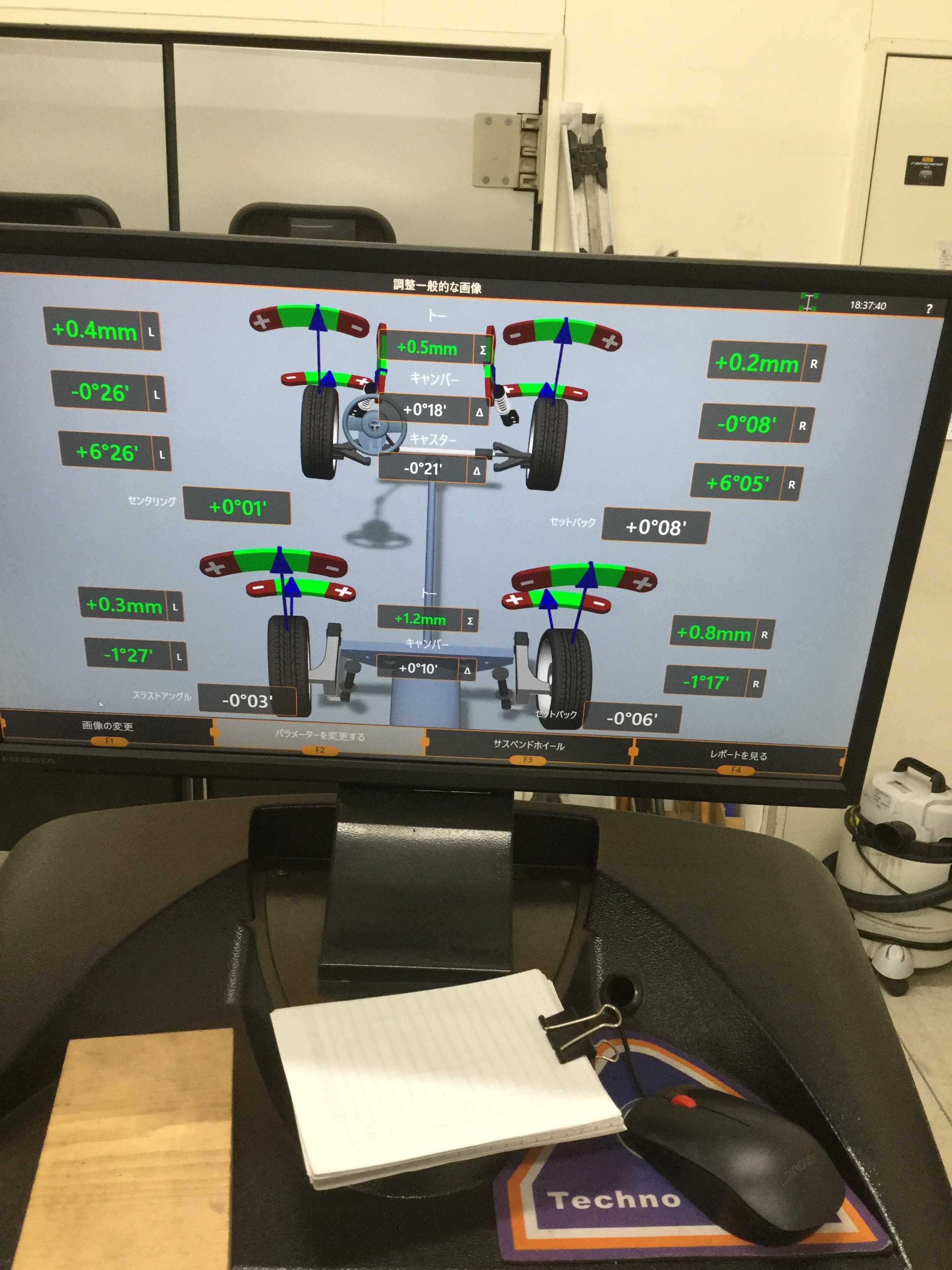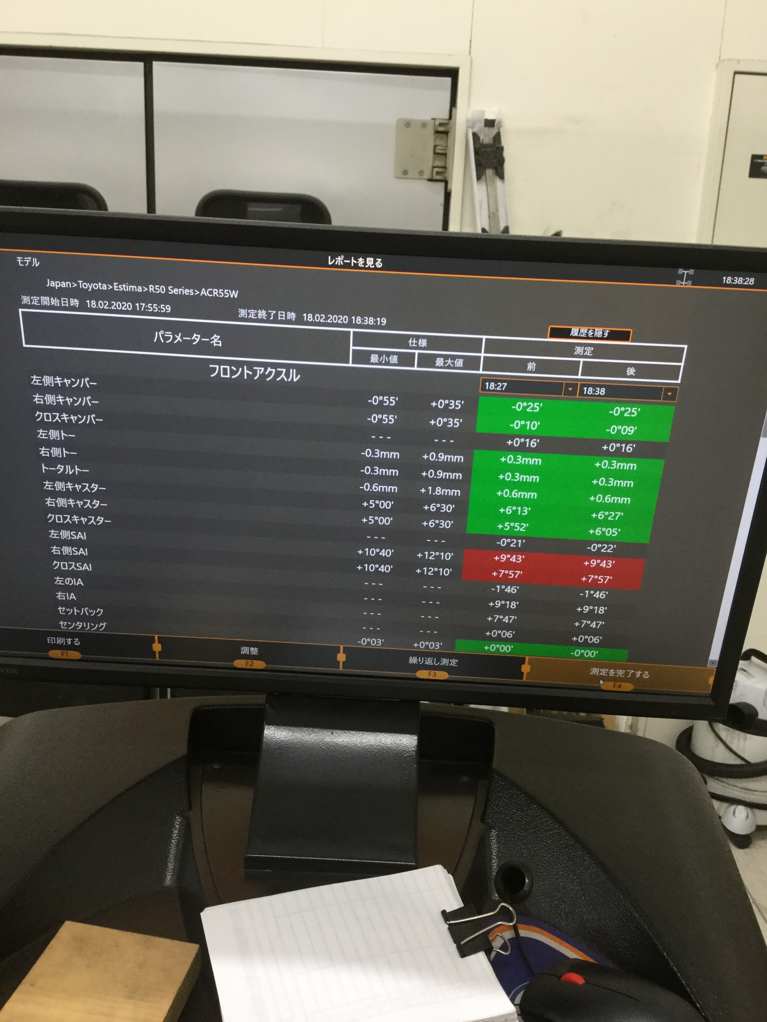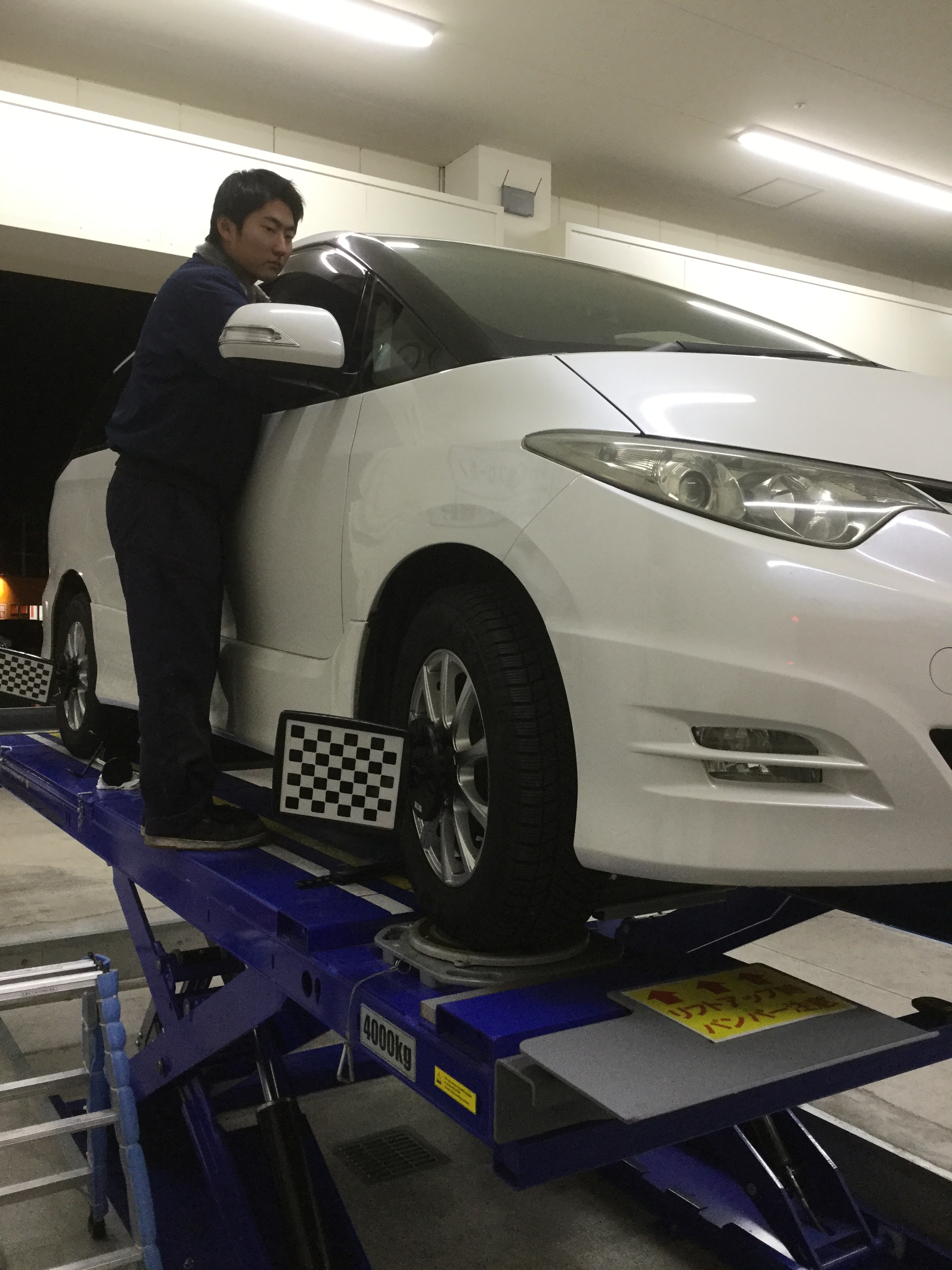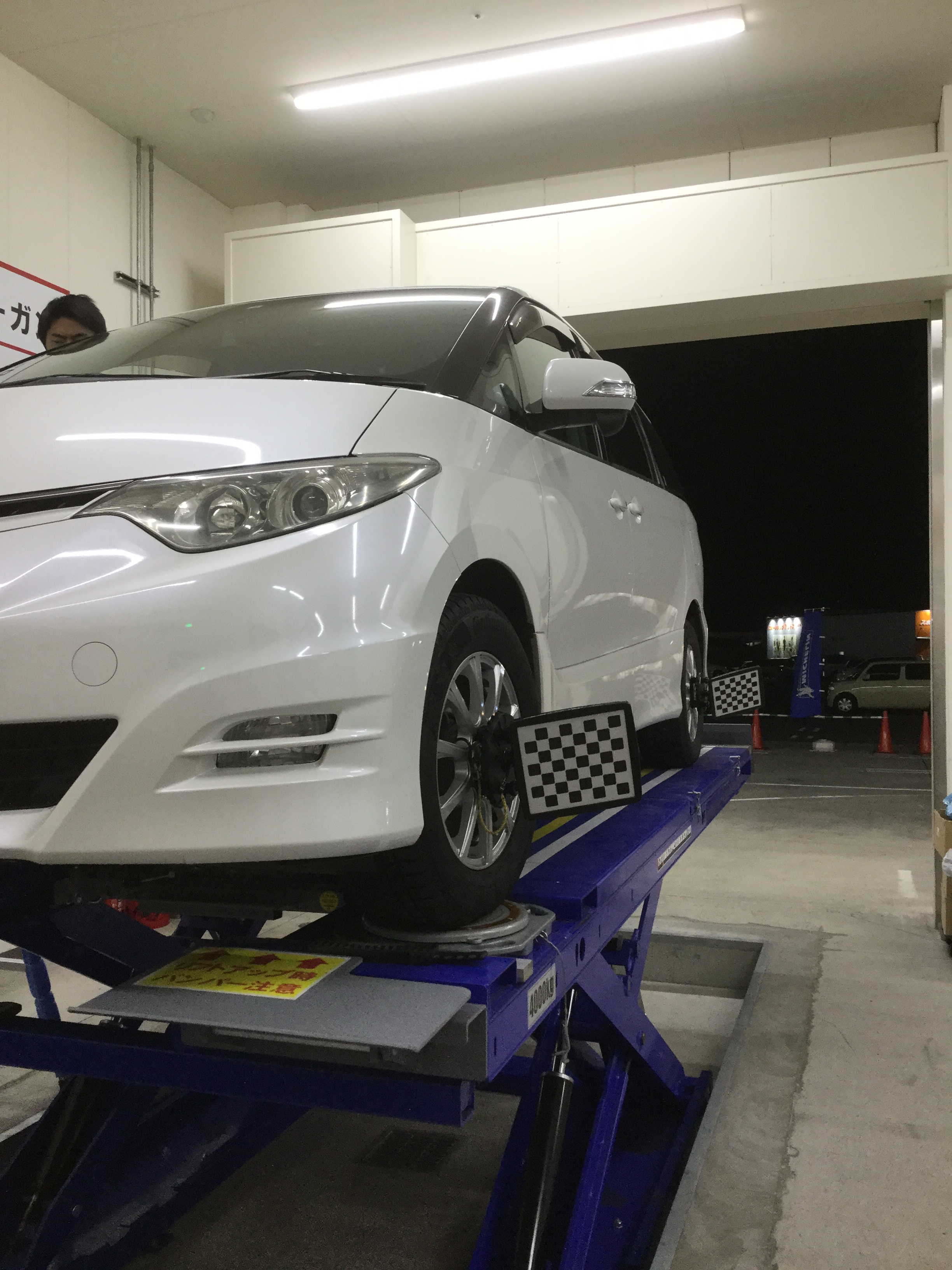 本日の作業はトヨタ・エスティマのアライメント調整作業です。