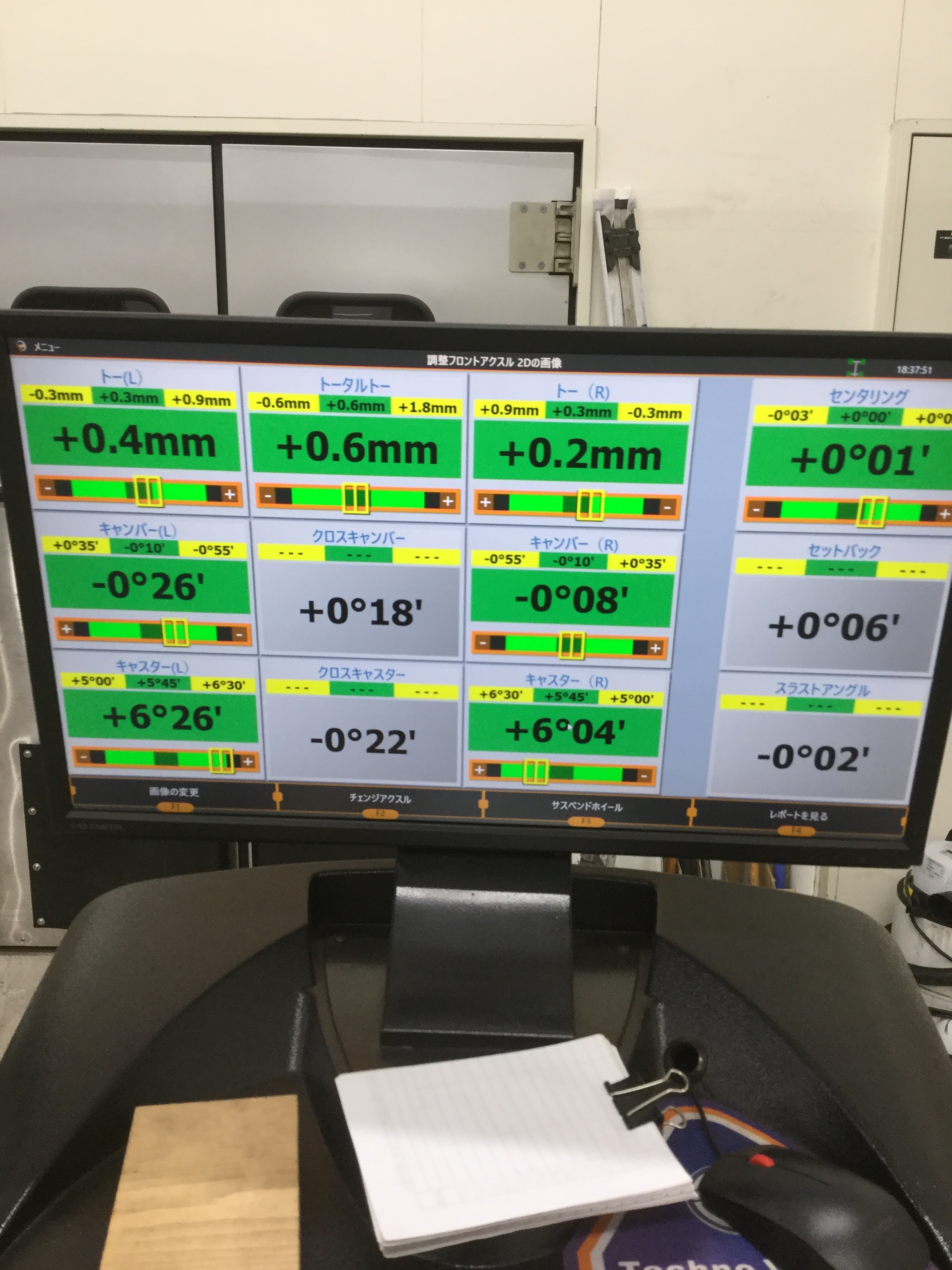 測定後、確認の為タイヤ市場従業員が運転し、要確認した結果、ハンドルのブレも無く、ブレーキング時のブレもなくなりました。