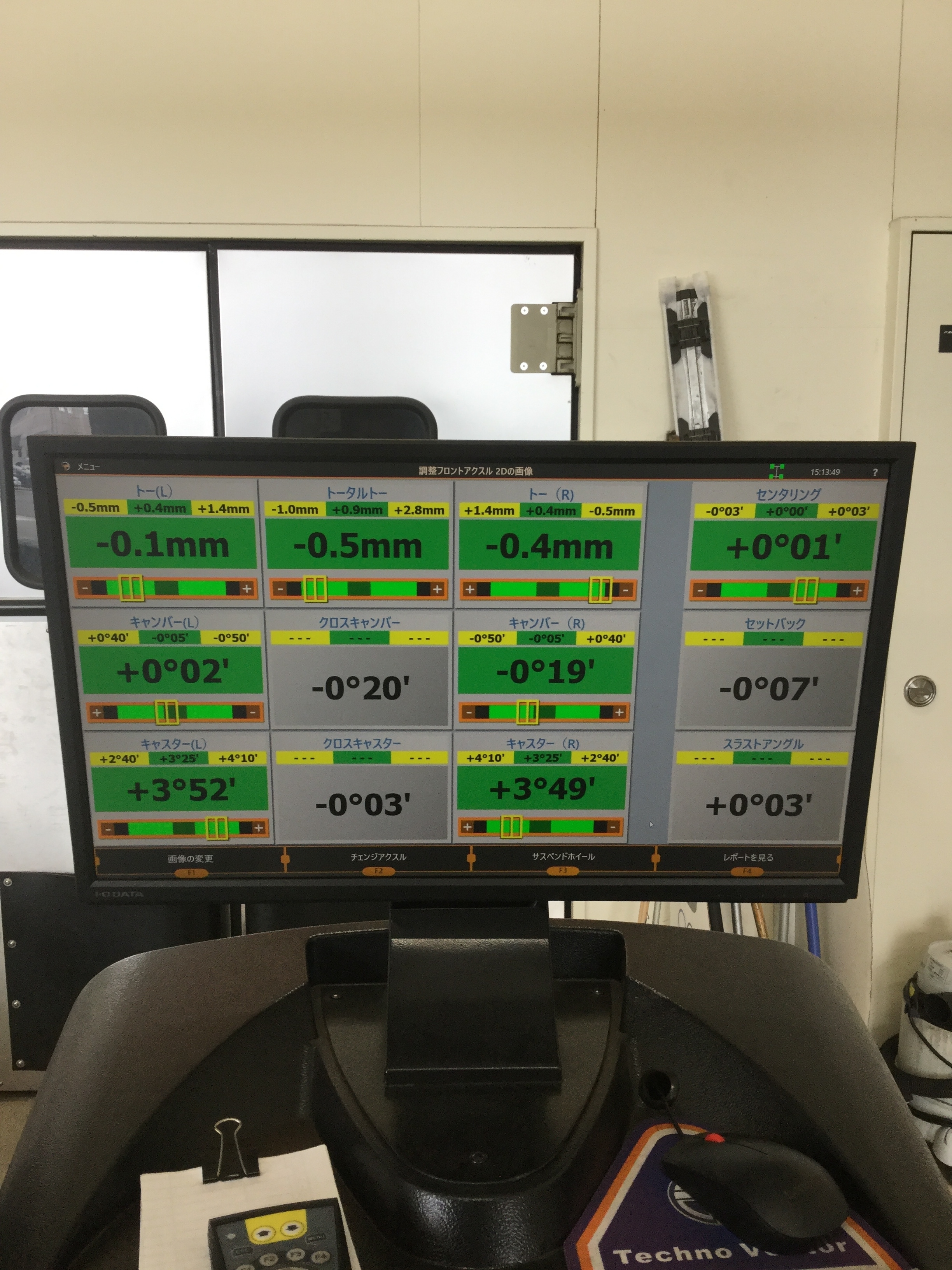 交換する前の前輪タイヤが極端な片減りをしていたので、アライメント調整作業もオススメ。