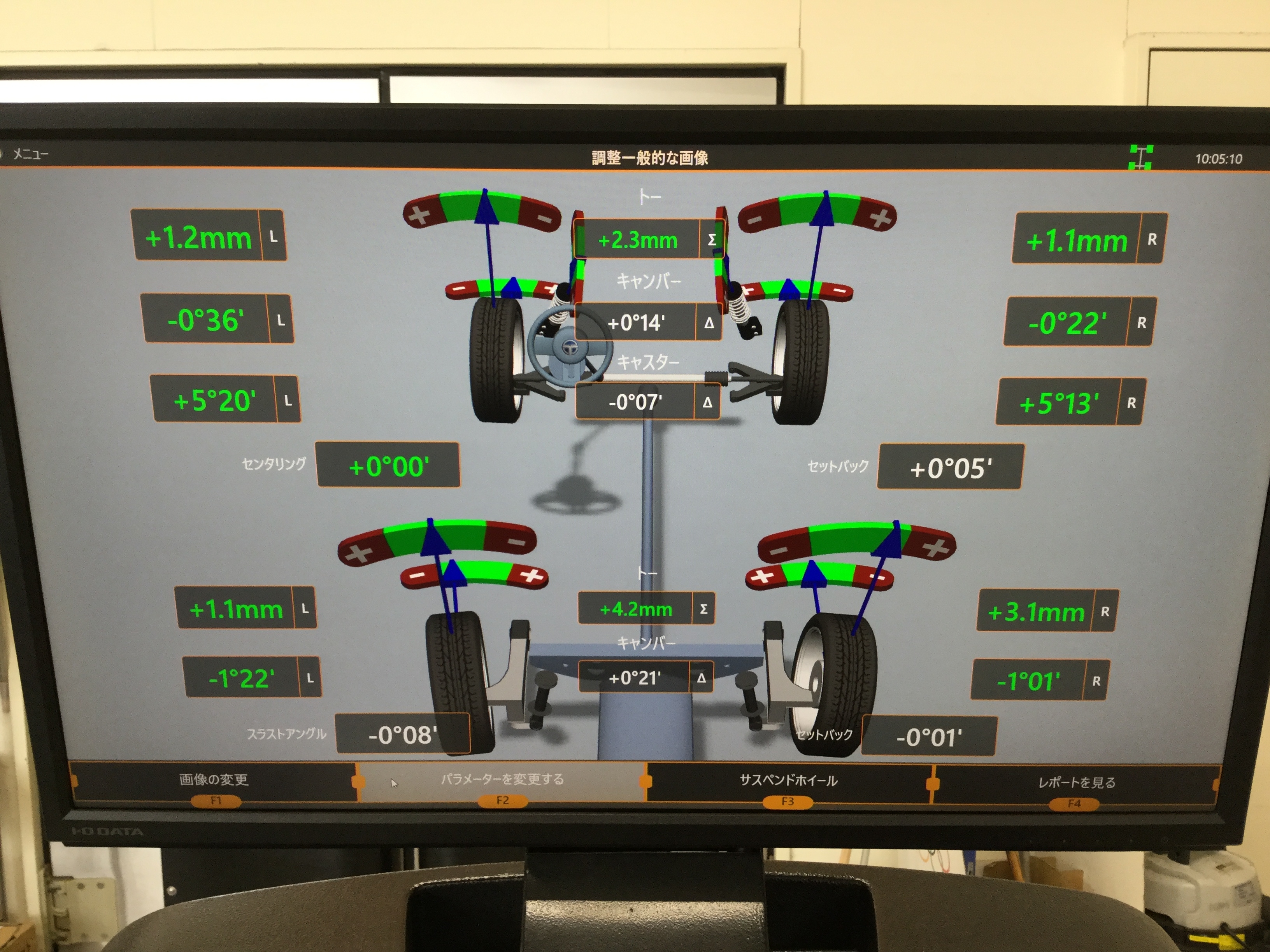 これで、走行時の安定性、タイヤの偏摩耗防止、燃費の向上に繋がっていくと思います。