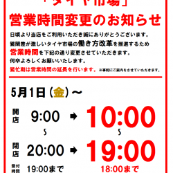AM9:00~PM8:00(ピット作業受付:AM9:00~PM7:00)1月/2月/5月/6月/7月/8月/9月