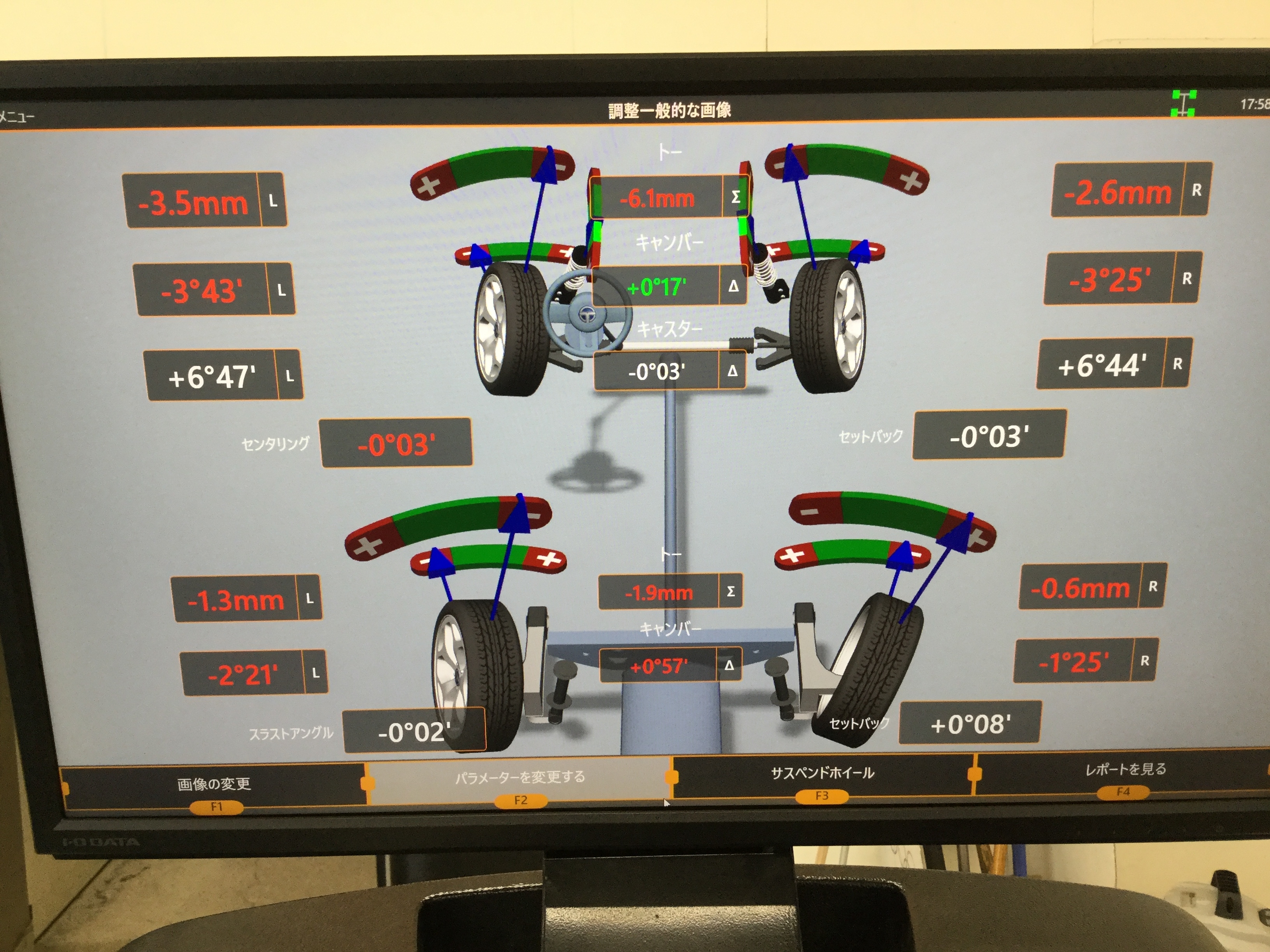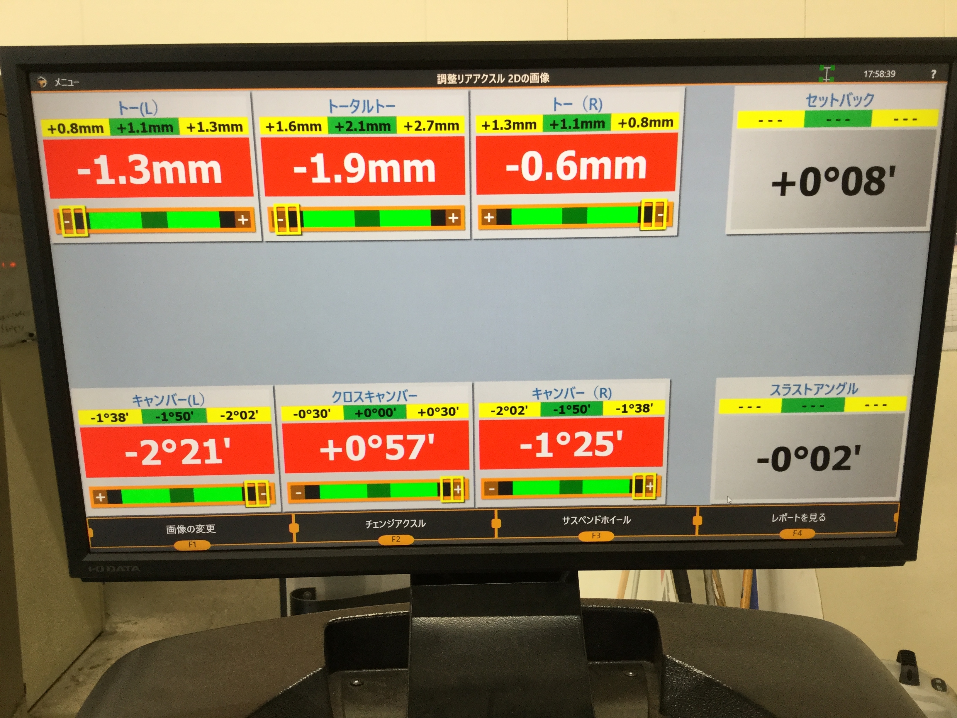 リアの調整範囲がかなりシビアでしたが、基準値内に収める事が出来ました!