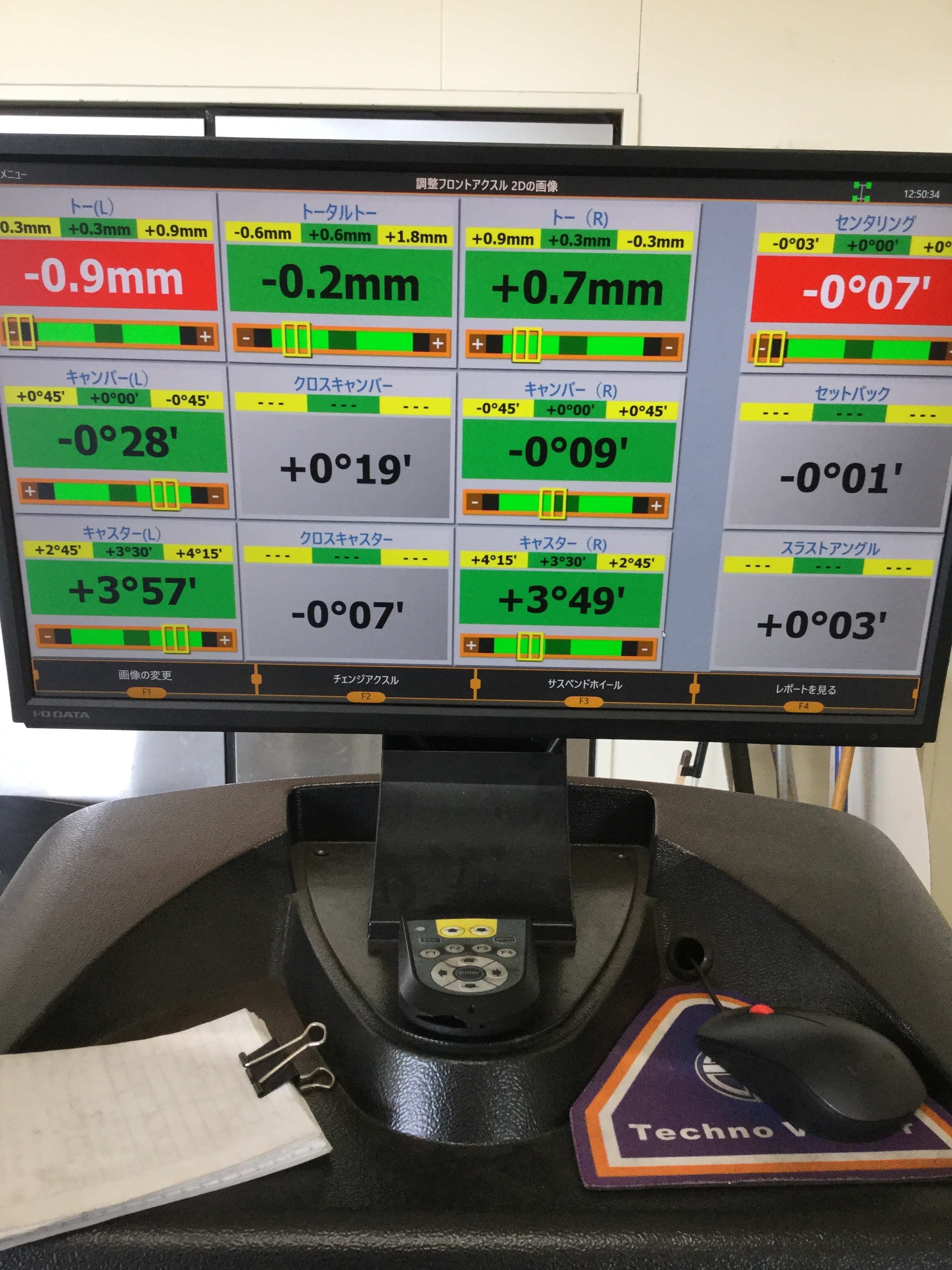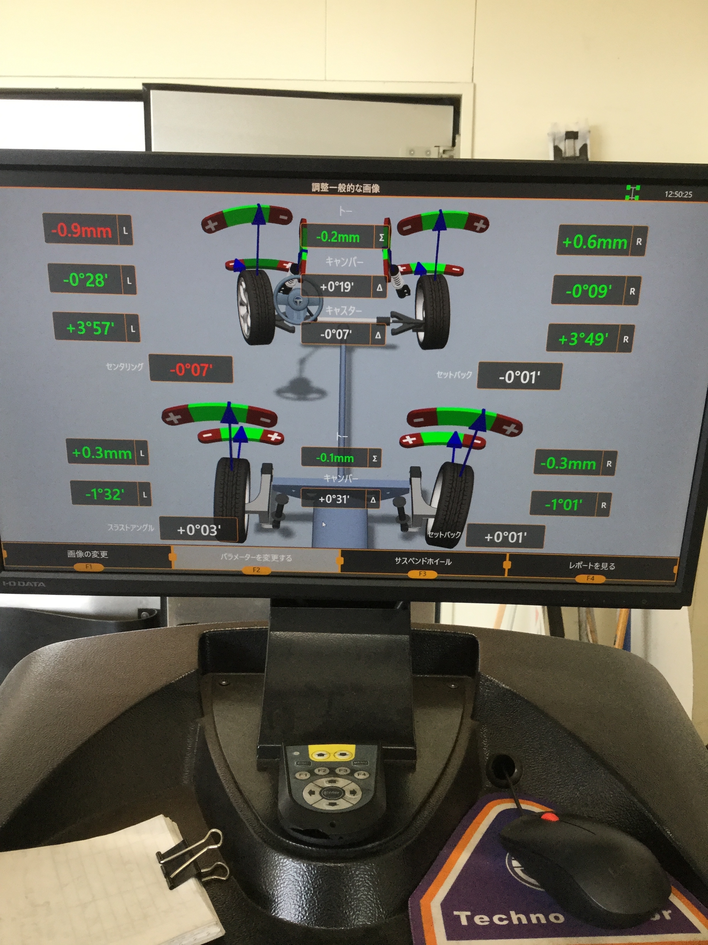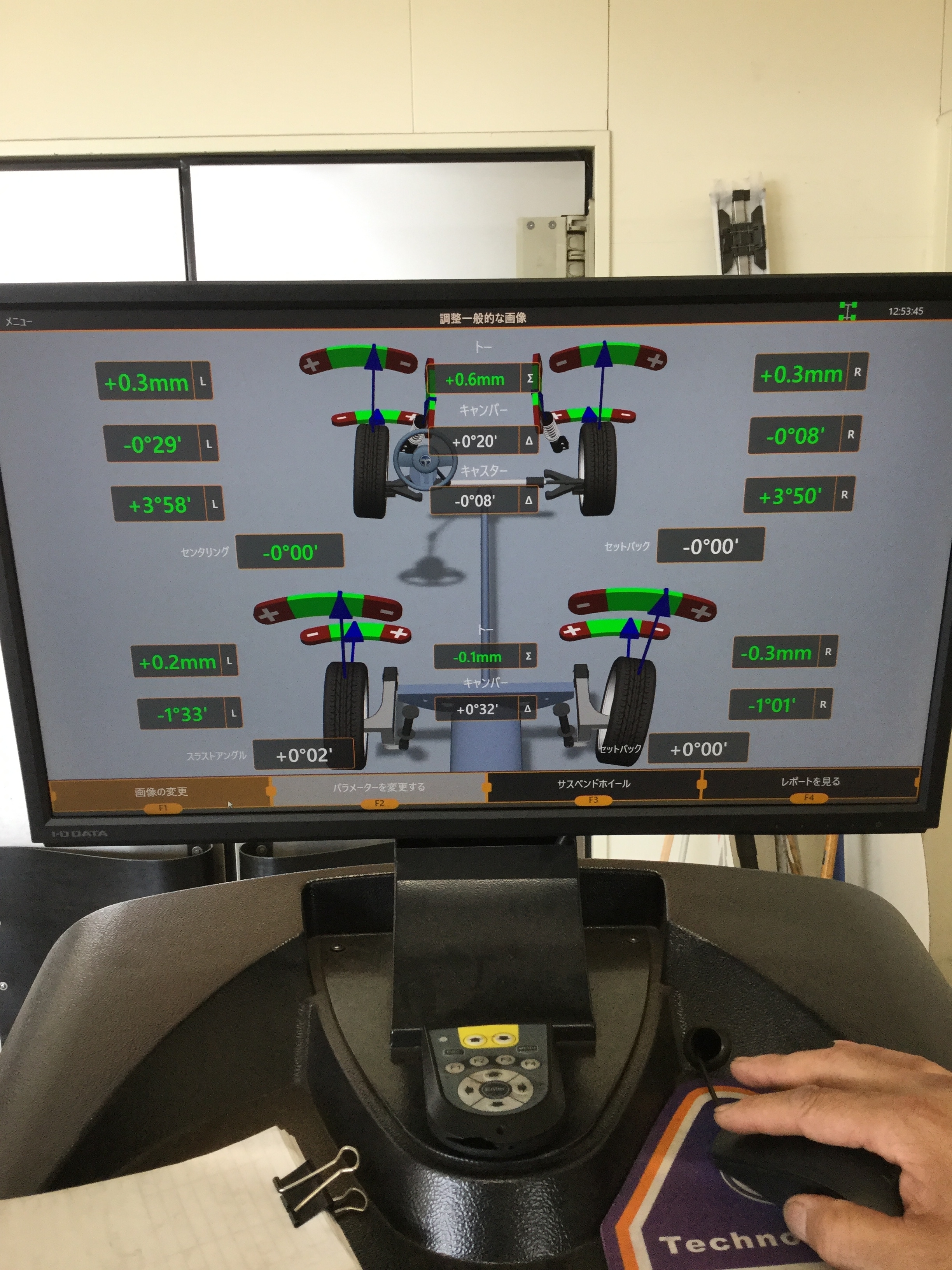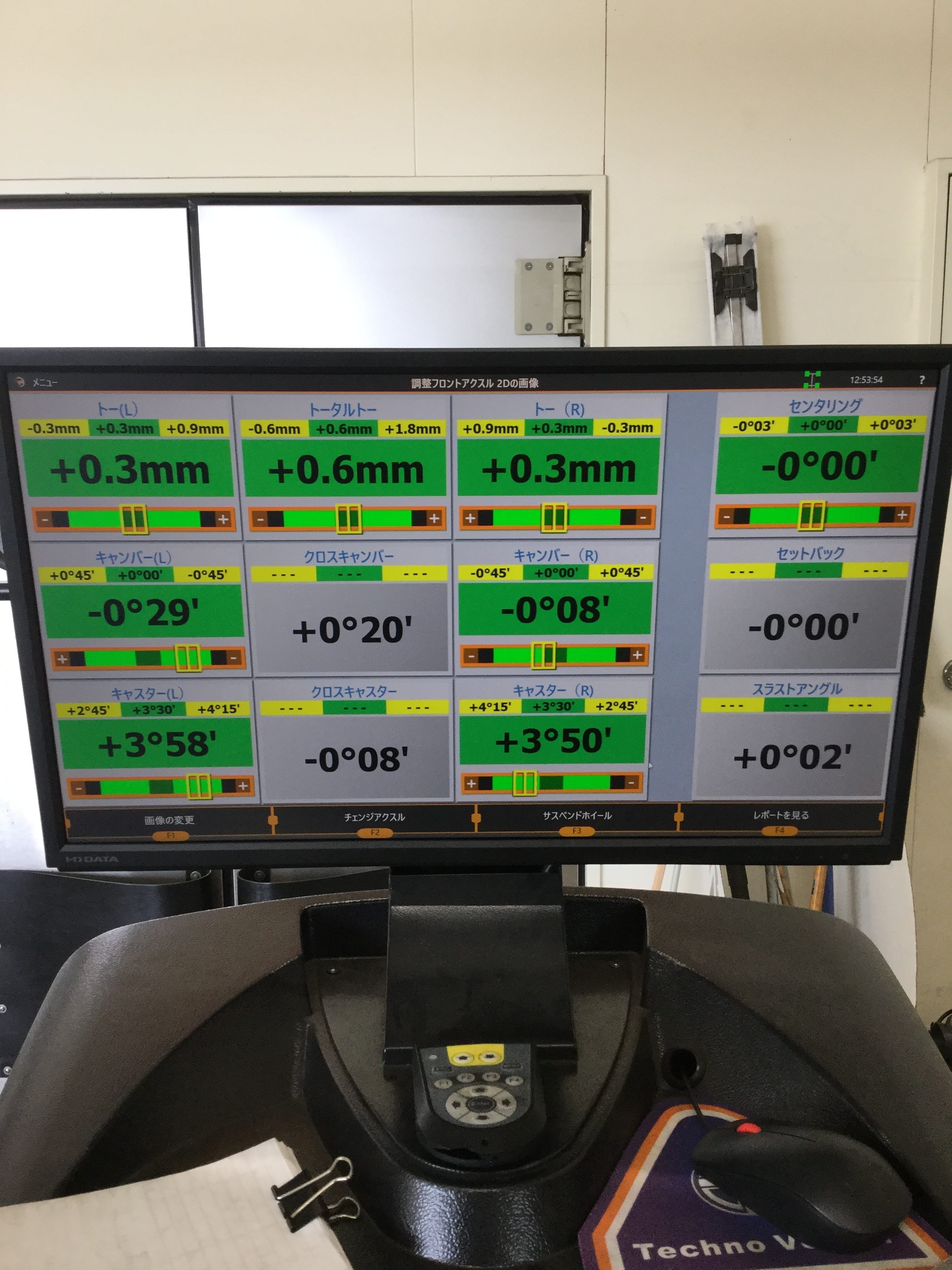 右側は基準値内ではありますが、真っ直ぐではないので右も微調整を施し・・・