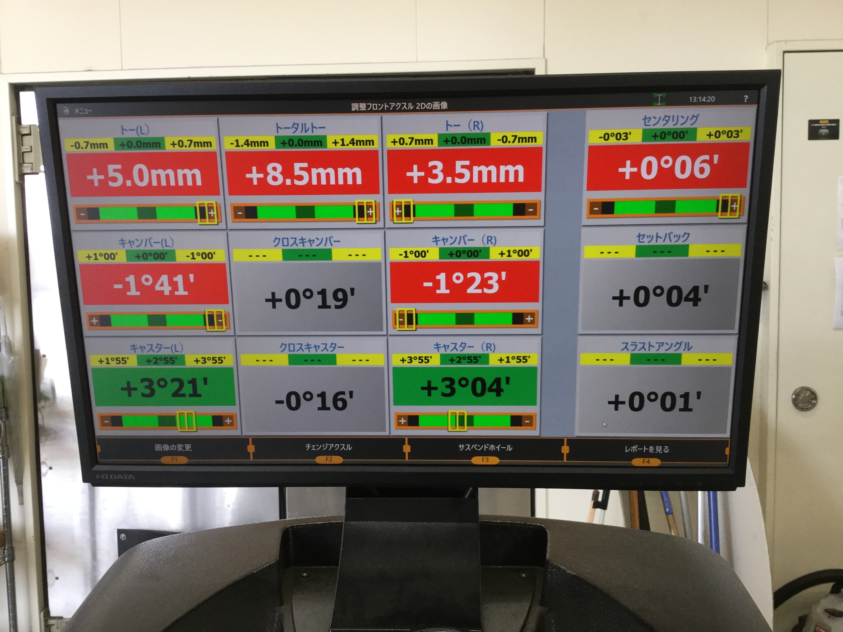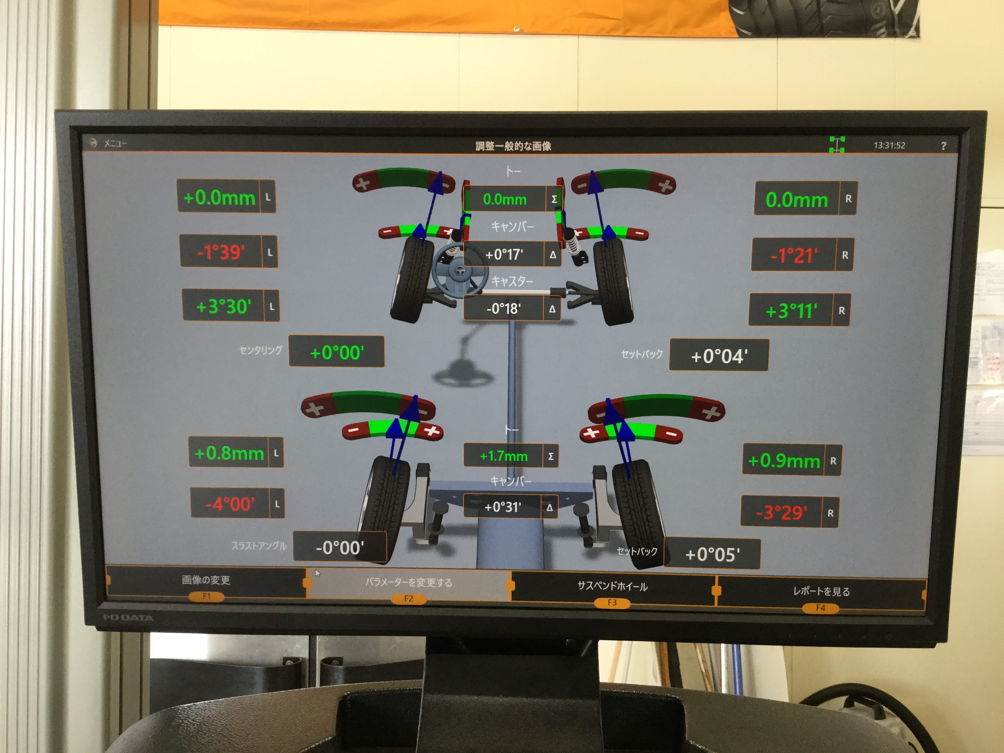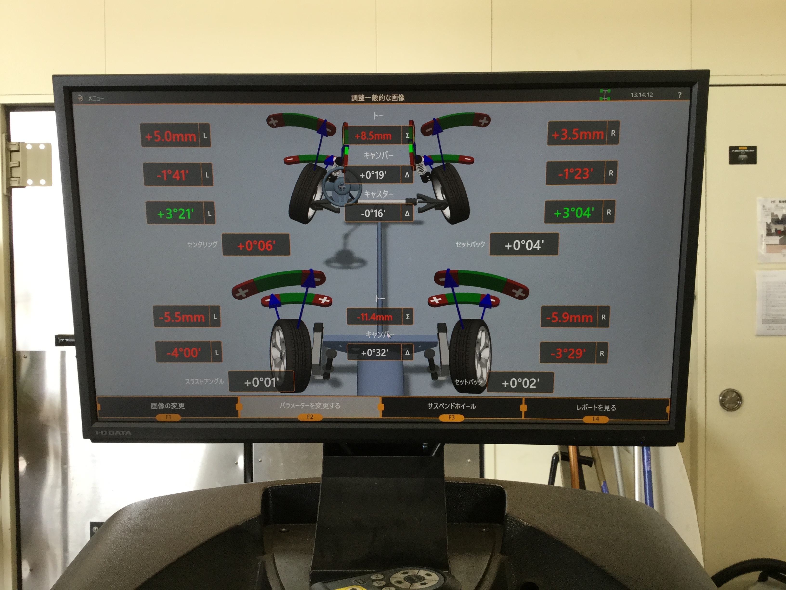 キャンバー角は車検の都合上立てられないのでトー角のみの調整となります。