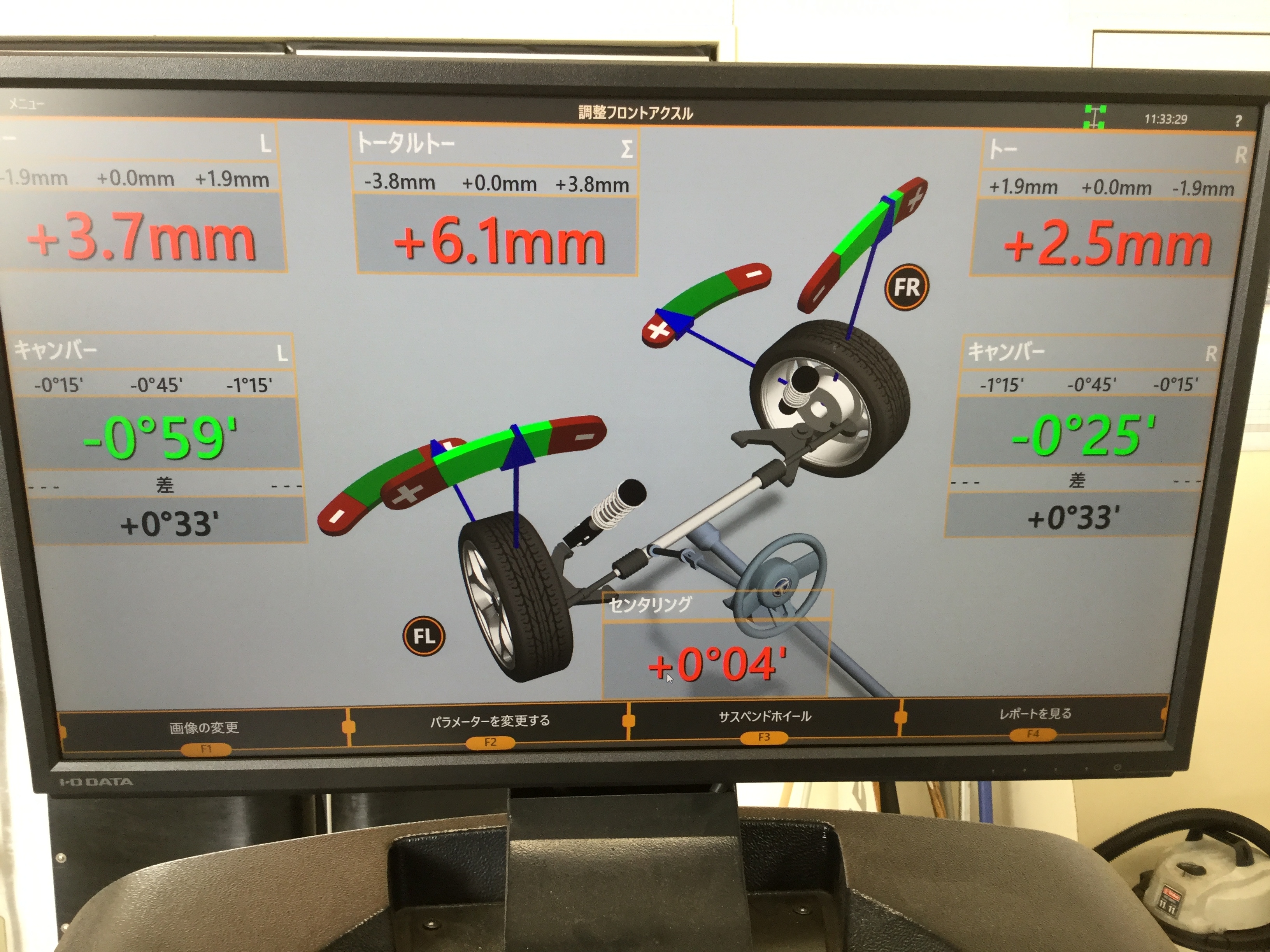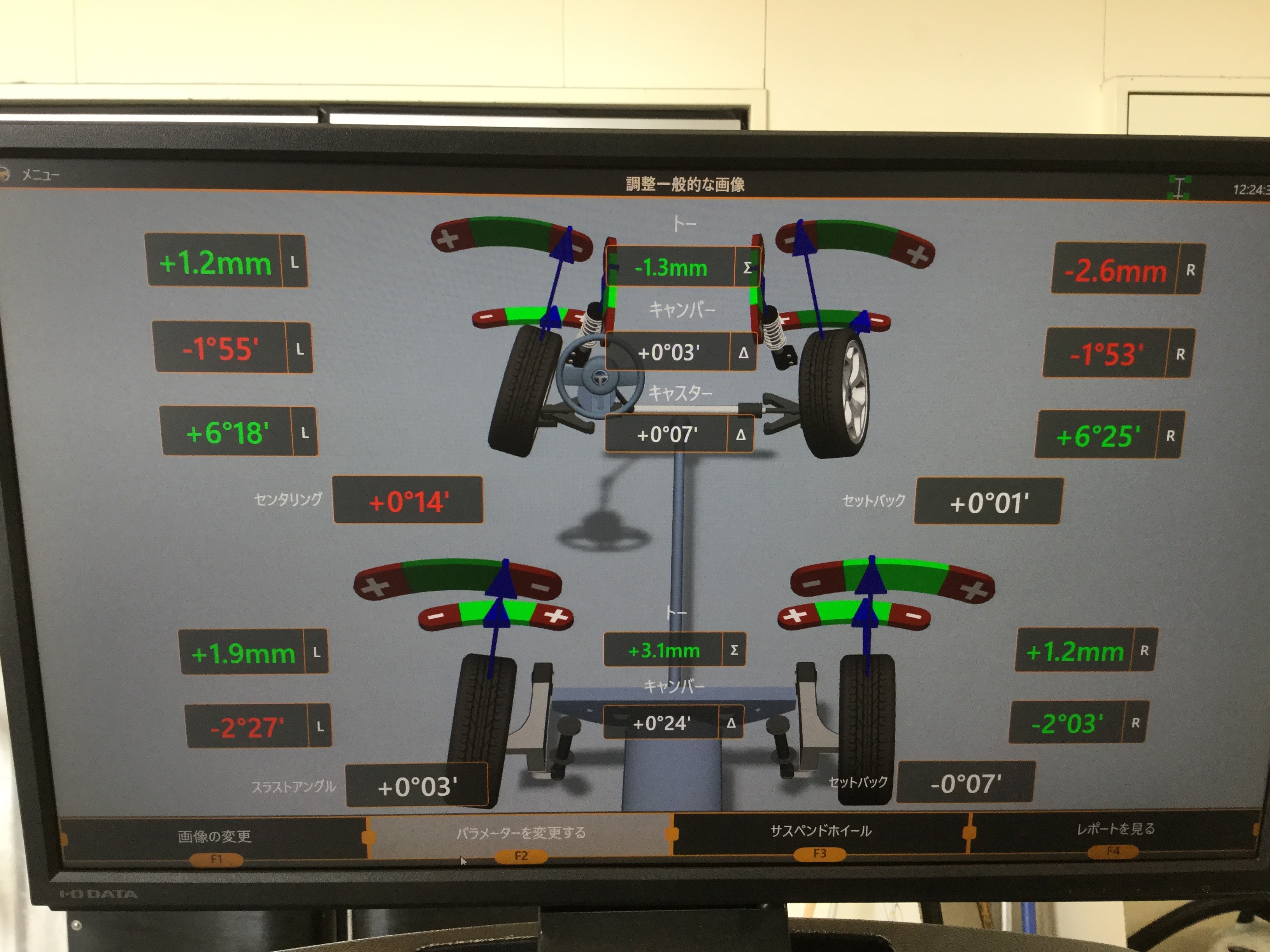左右共に、許容範囲内の差でしたが、今回はもう少し寝かせたいというご希望でしたので-1°50あたりを目標に調整します。