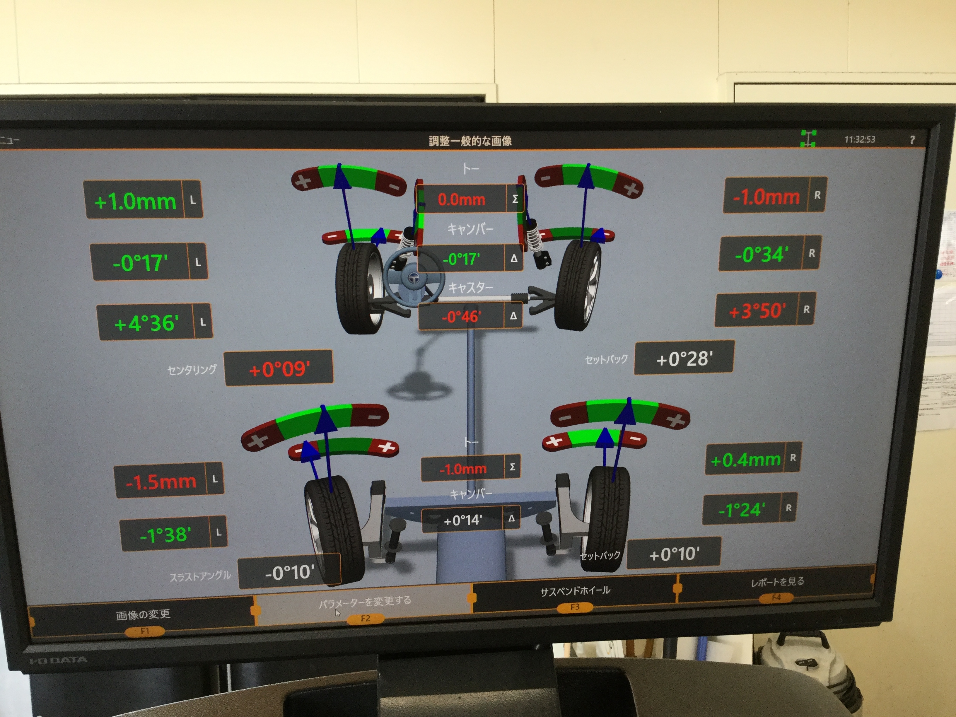 測定した所、やはり右側に大きなズレが見られましたので調整します!