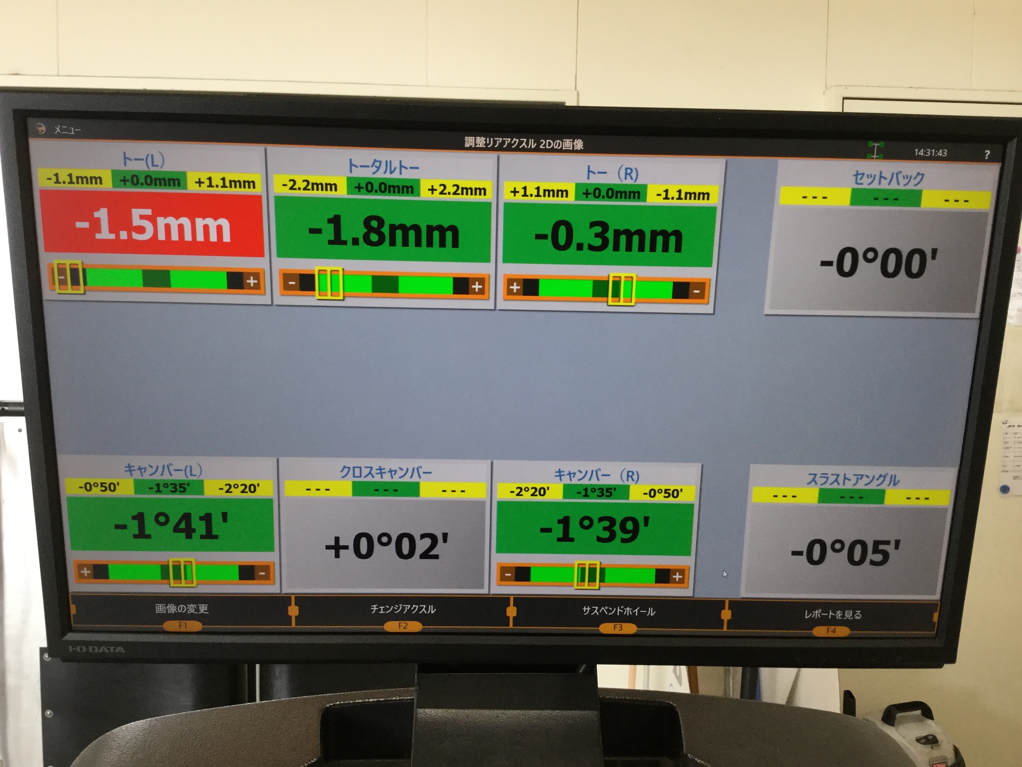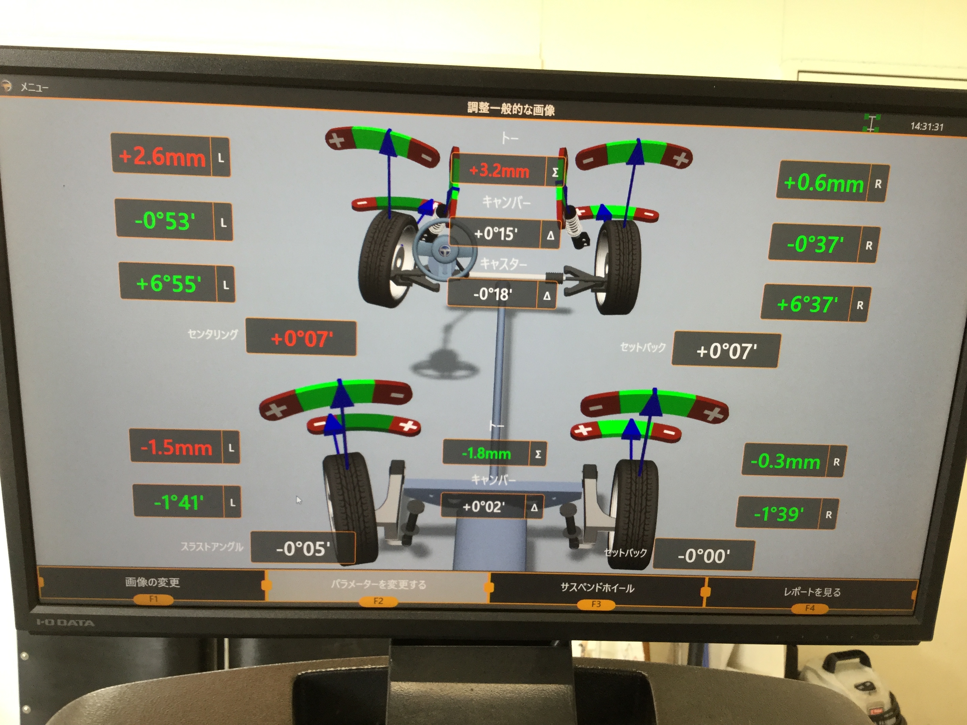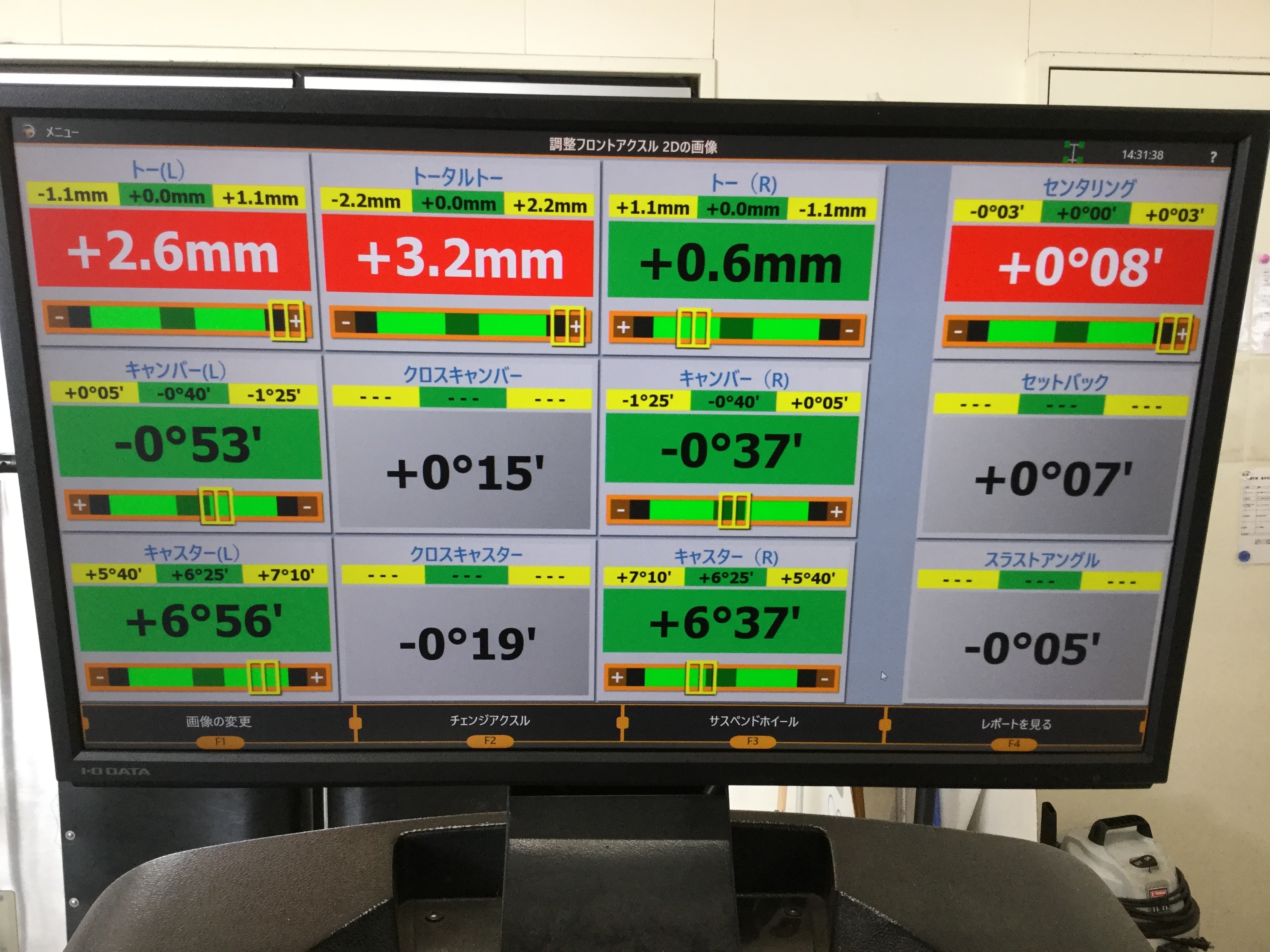 IMG_0185.JPGIMG_0186.JPGIMG_0187.JPG作業終了です! 前後共に基準値内に収まりました!