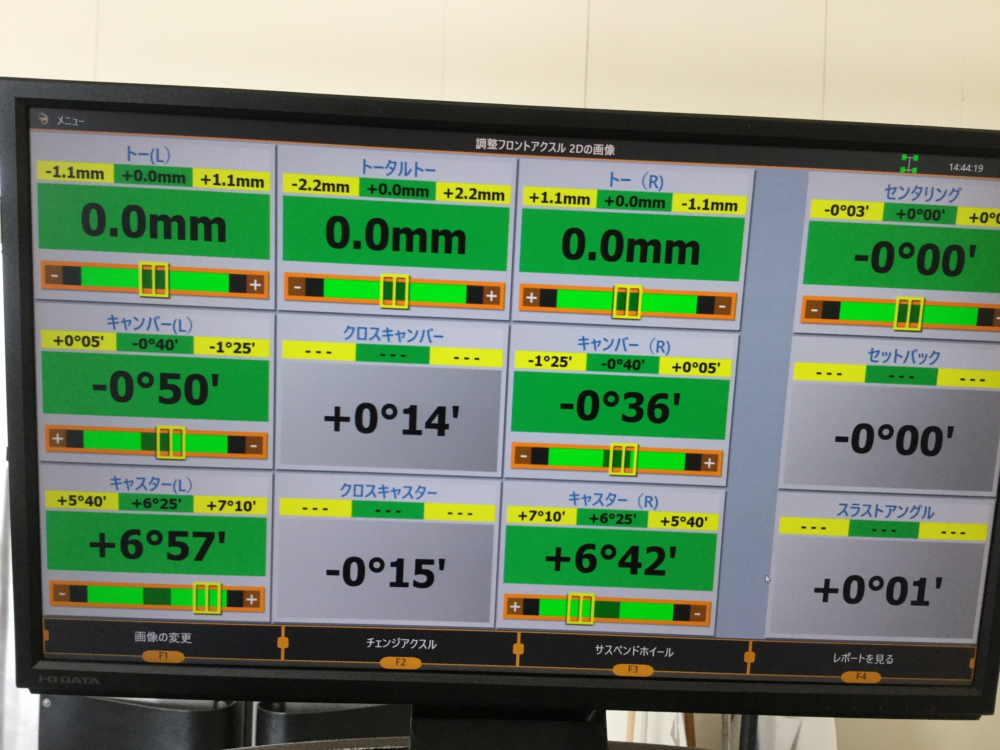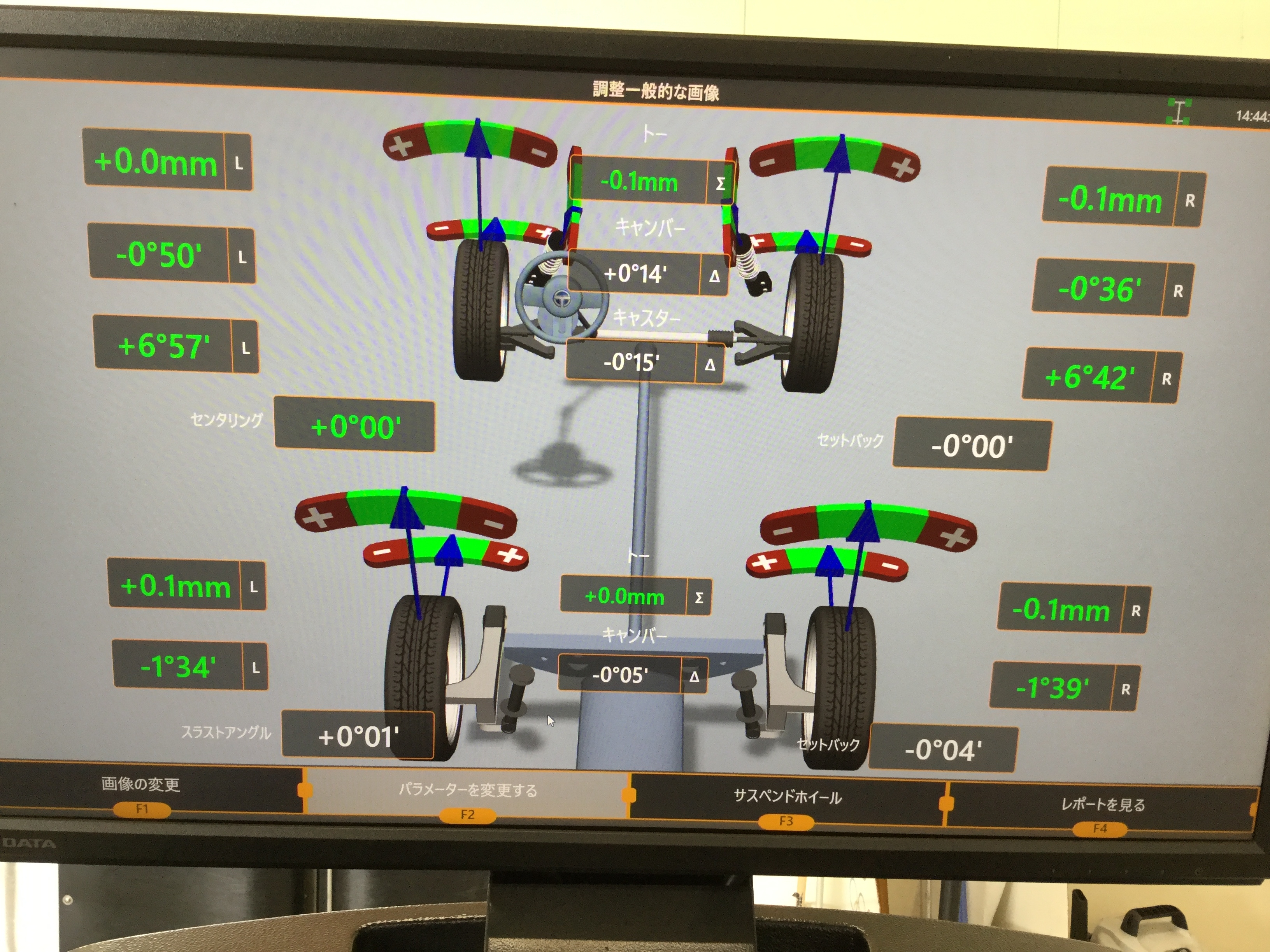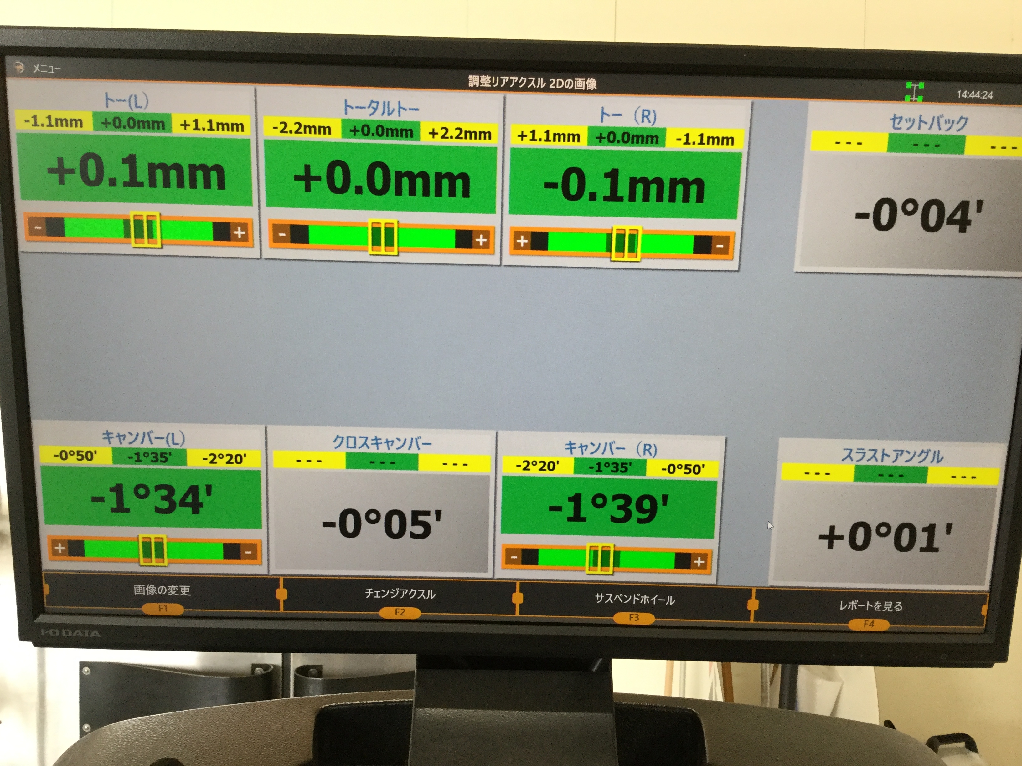 IMG_0185.JPGIMG_0186.JPGIMG_0187.JPG作業終了です! 前後共に基準値内に収まりました!