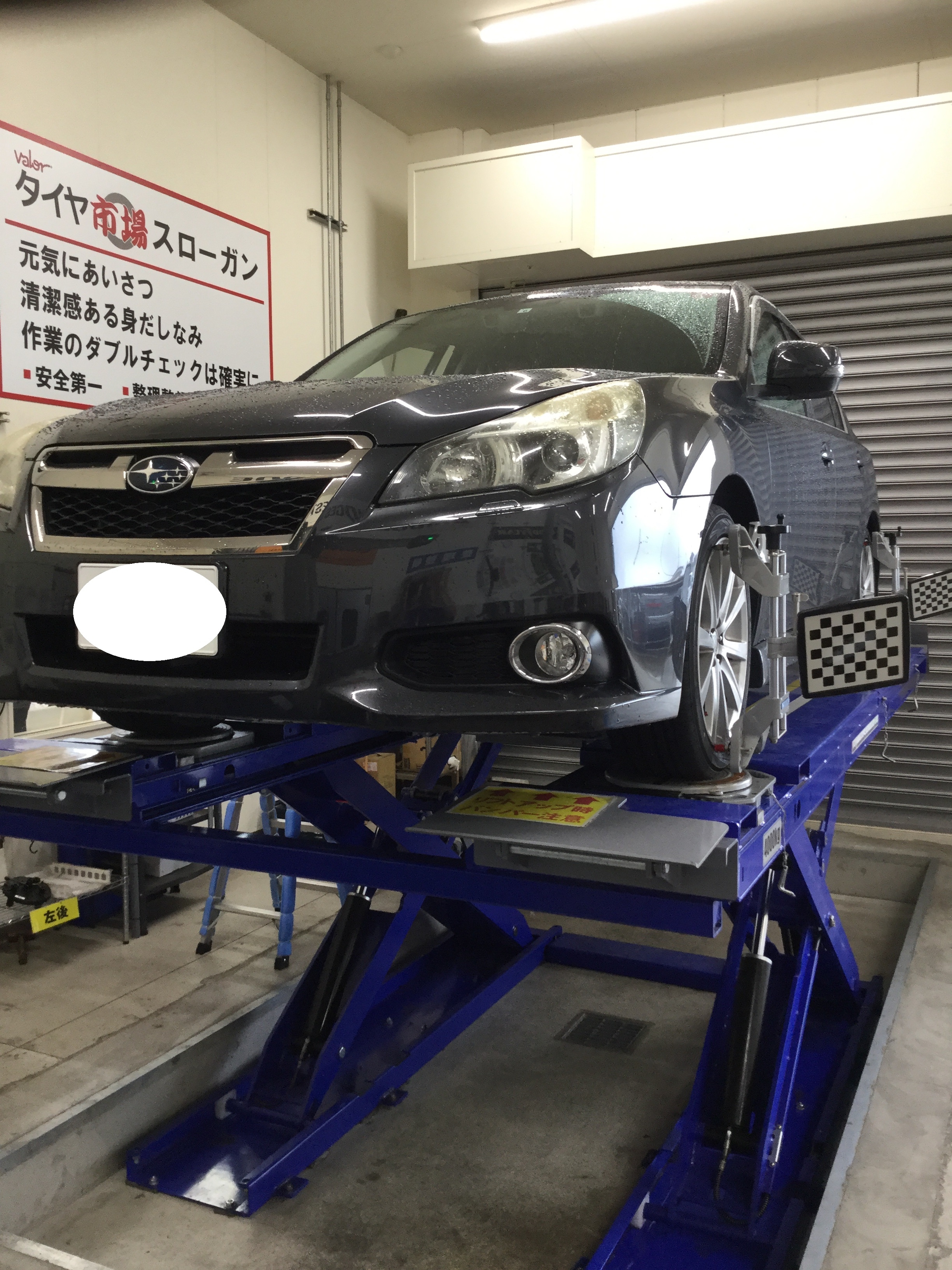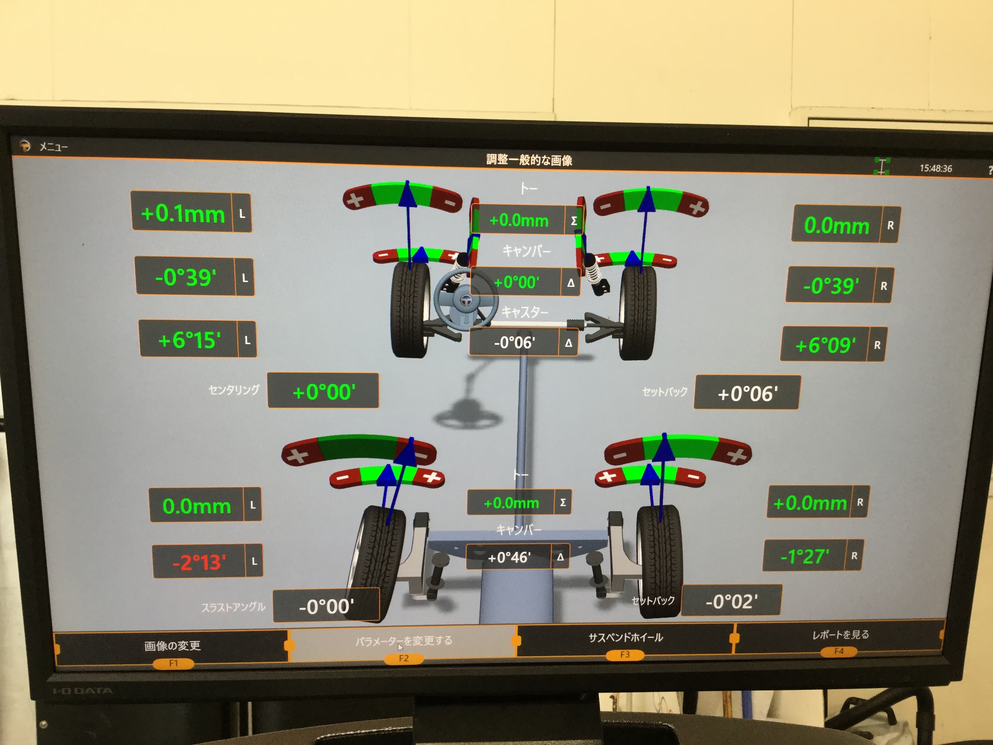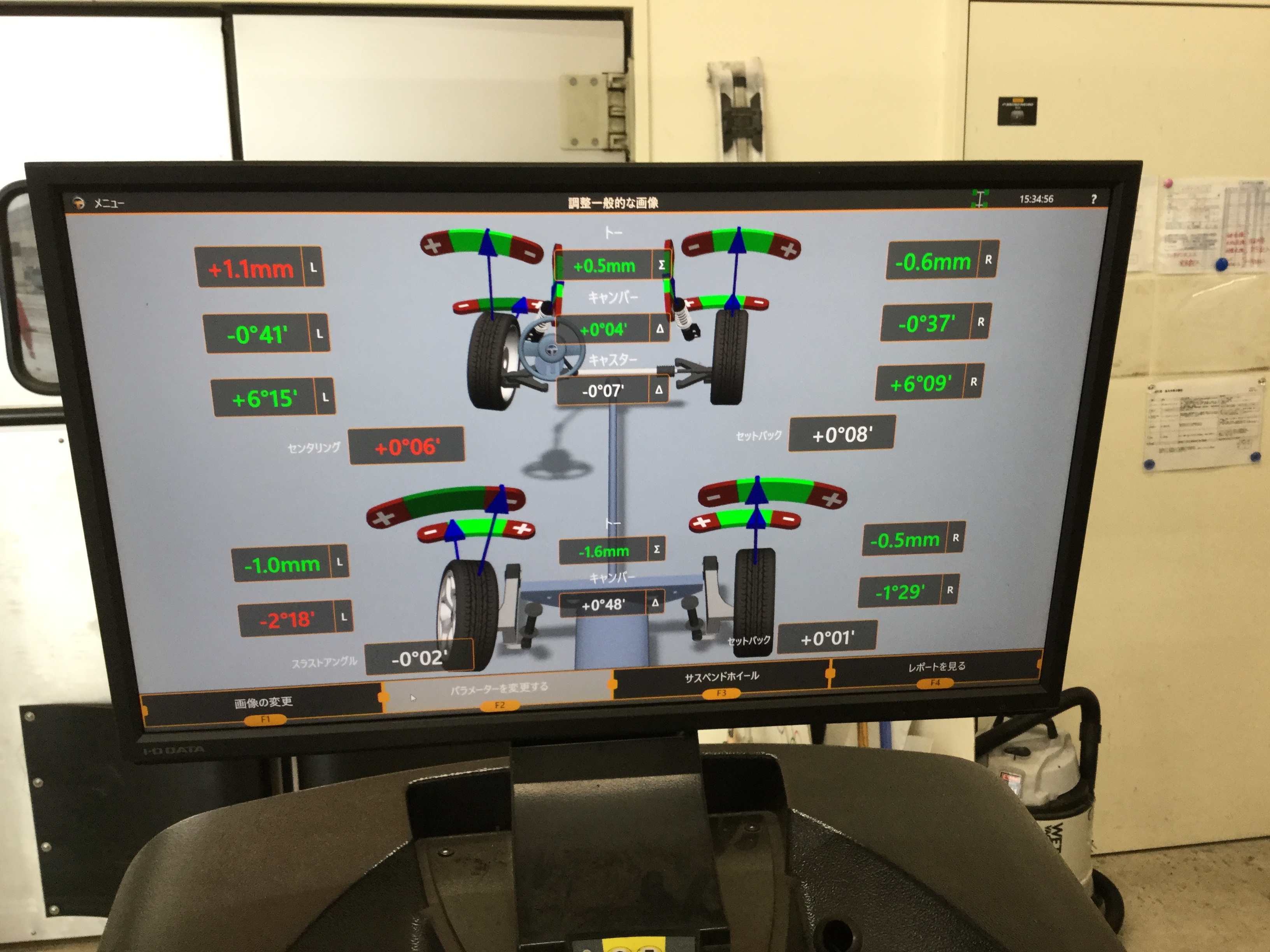 さて、タイヤ交換後、アライメントのまずは測定です!