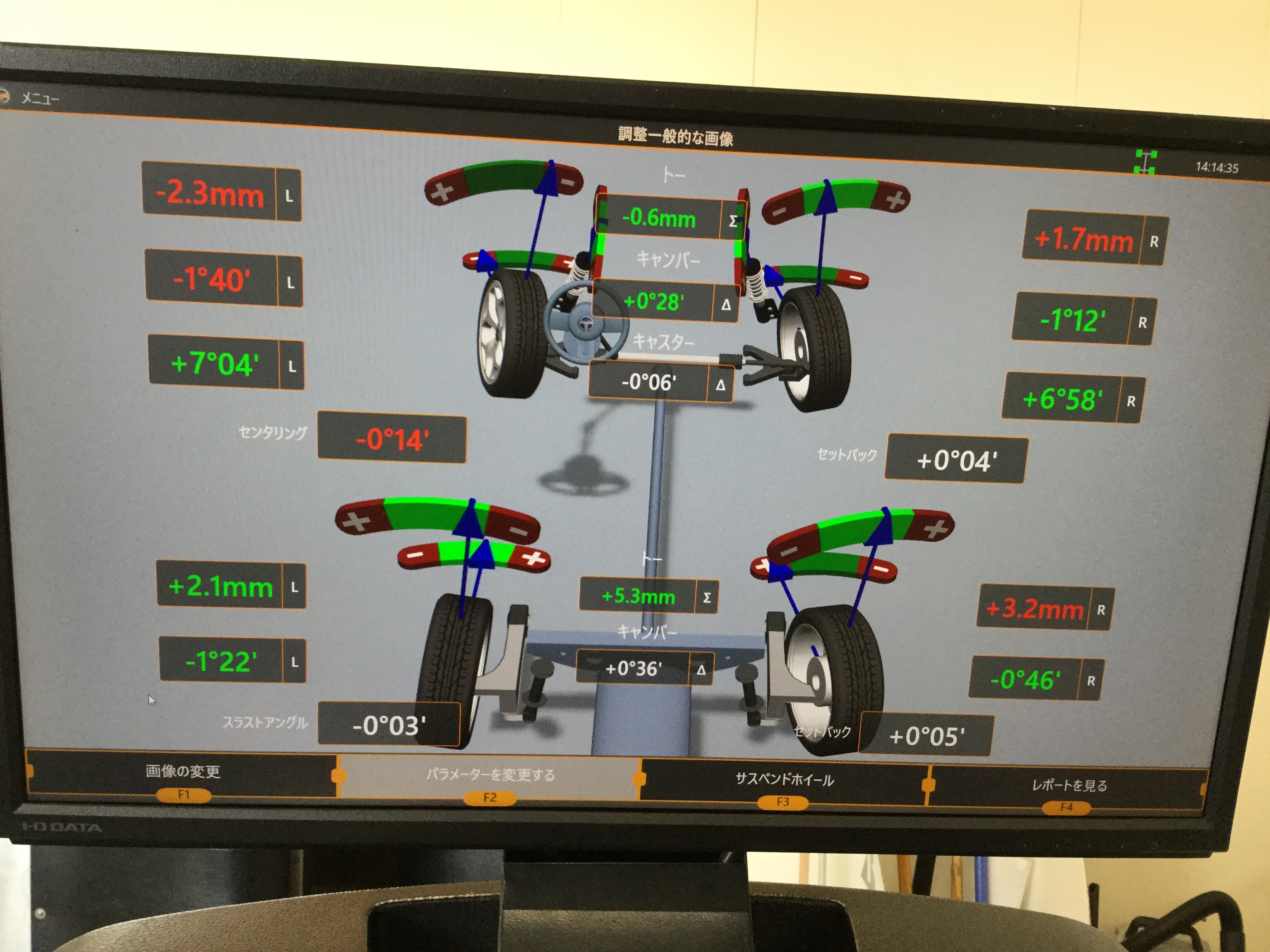 さて、本日のご紹介は、当店にて3台ものアライメント測定・調整を