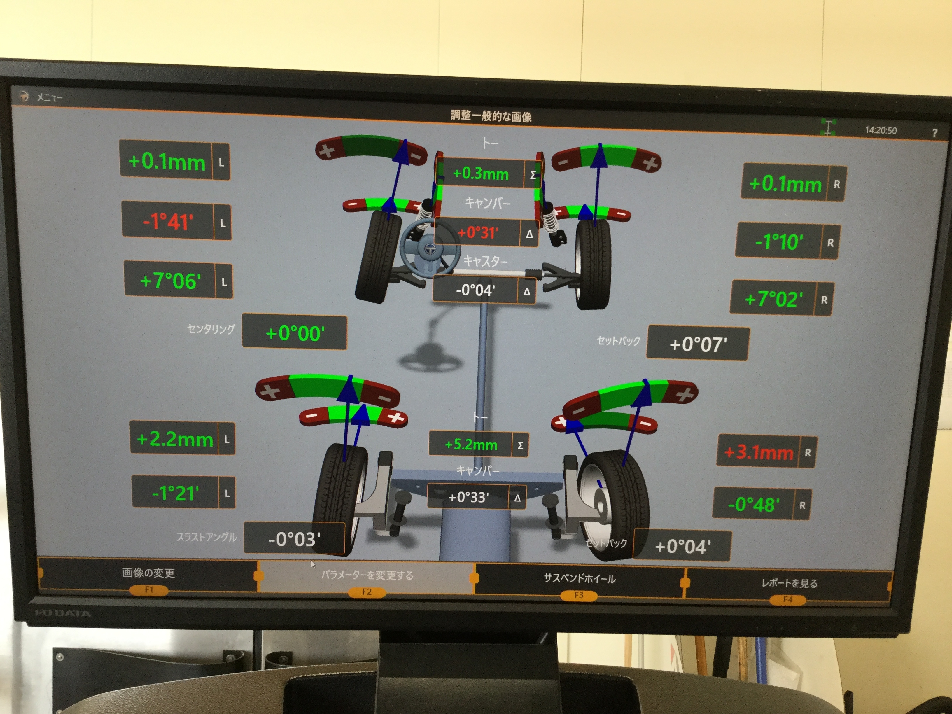 ↑コチラが調整前ですね。大幅なズレではありませんが、基準値からは外れていますので、調整させて頂きました。