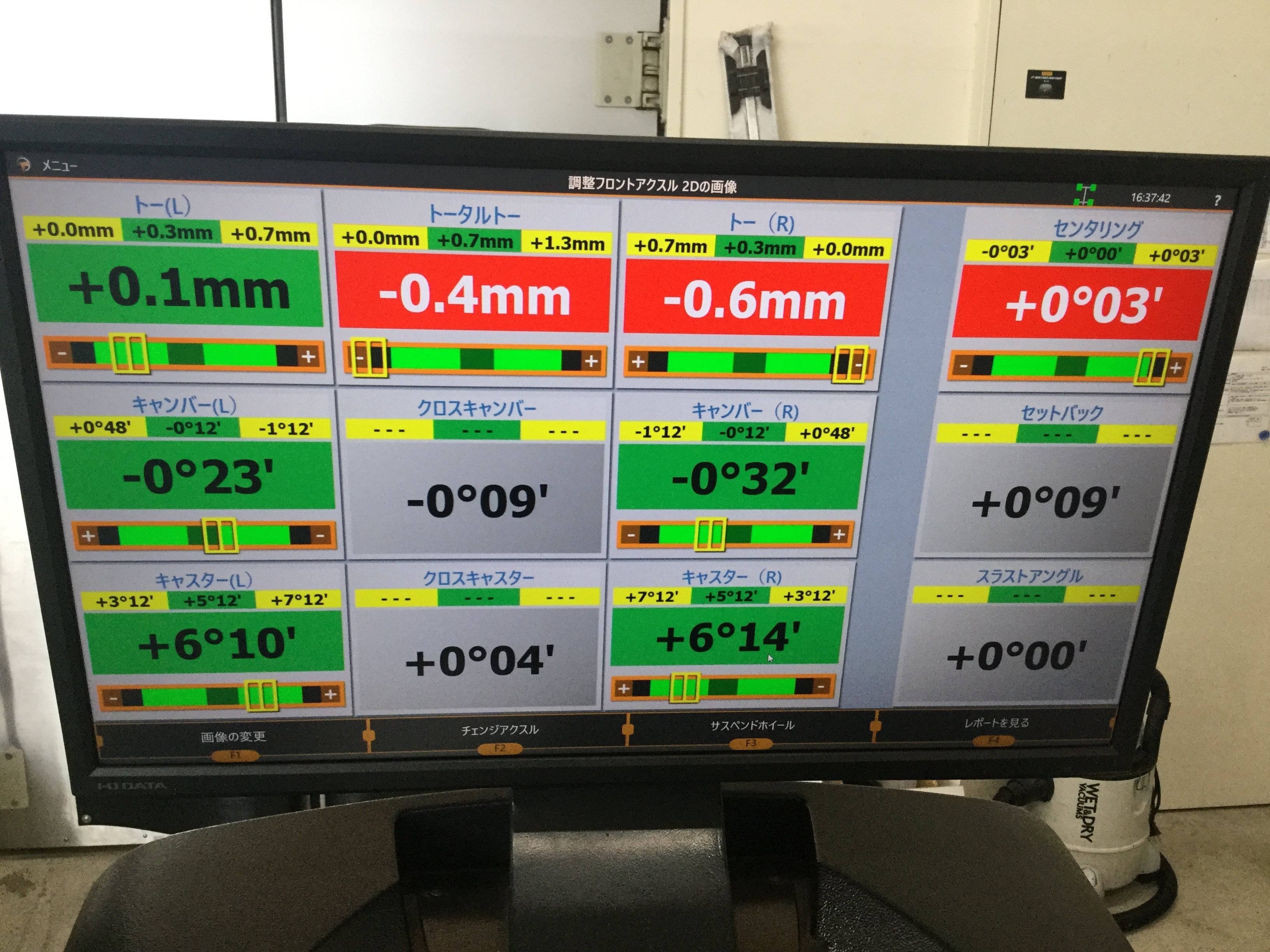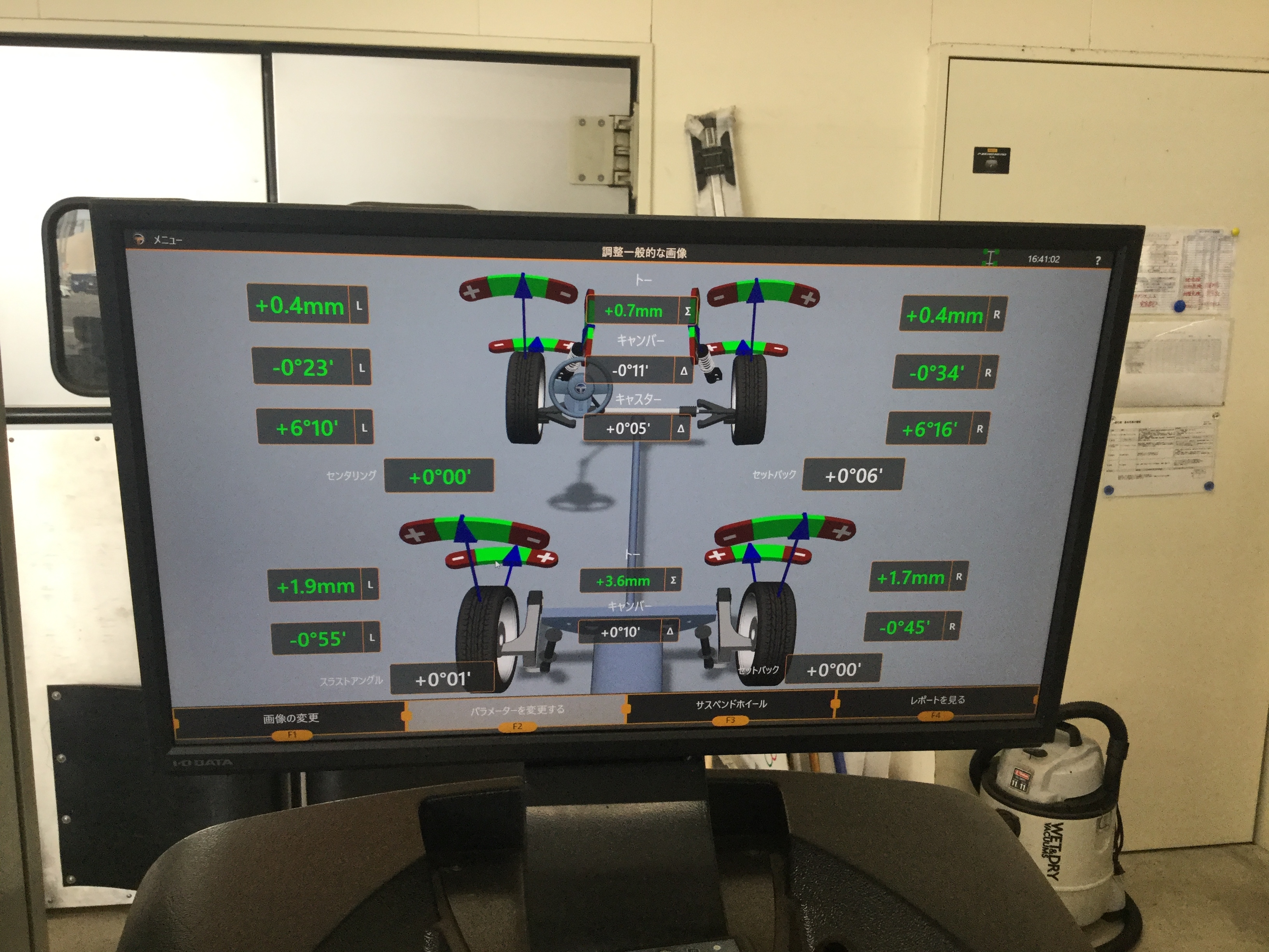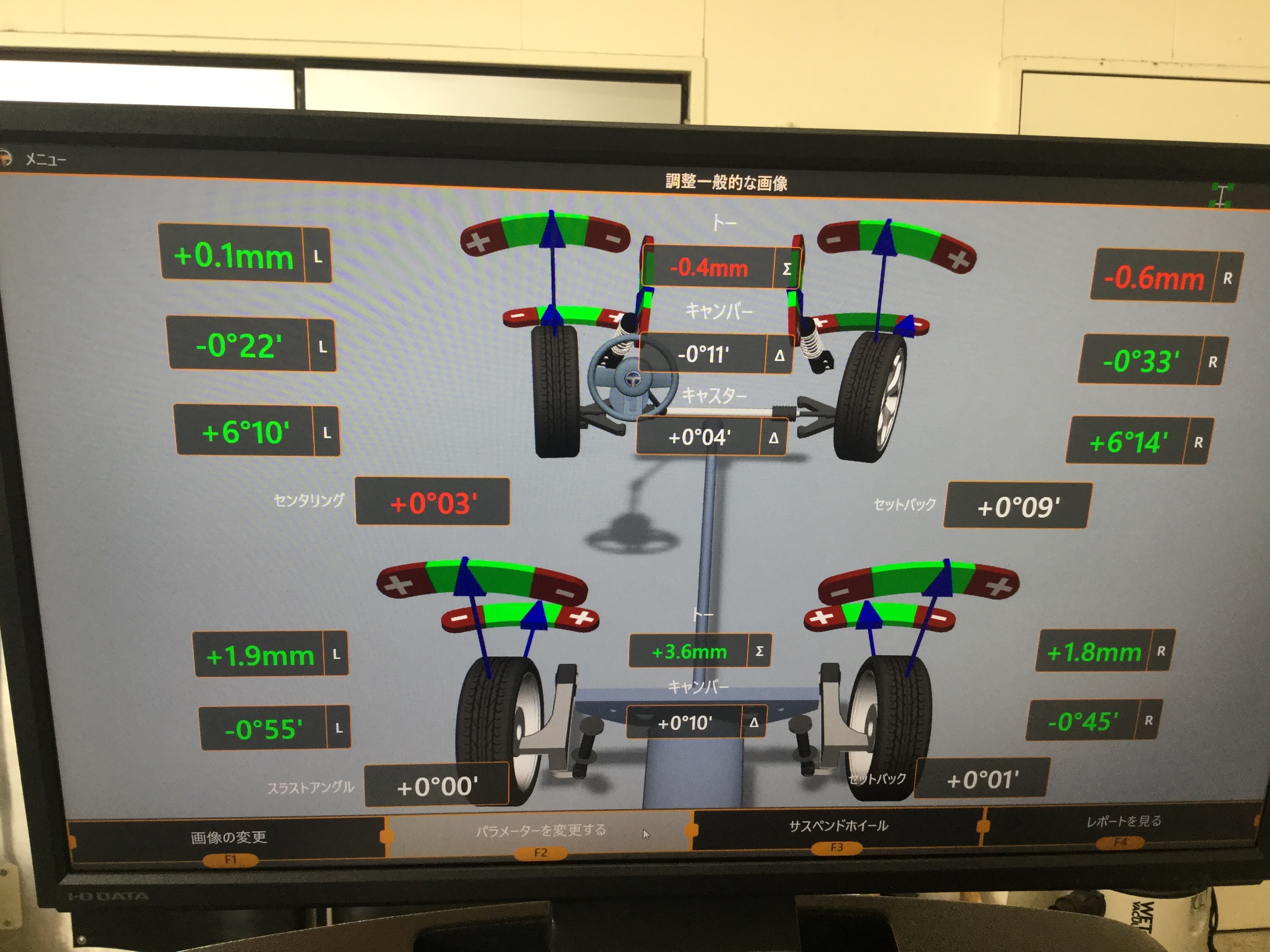 当店のアライメント調整は普通車¥12000(税別)、軽自動車¥10000(税別)とお値打ち価格にてご案内させております!
