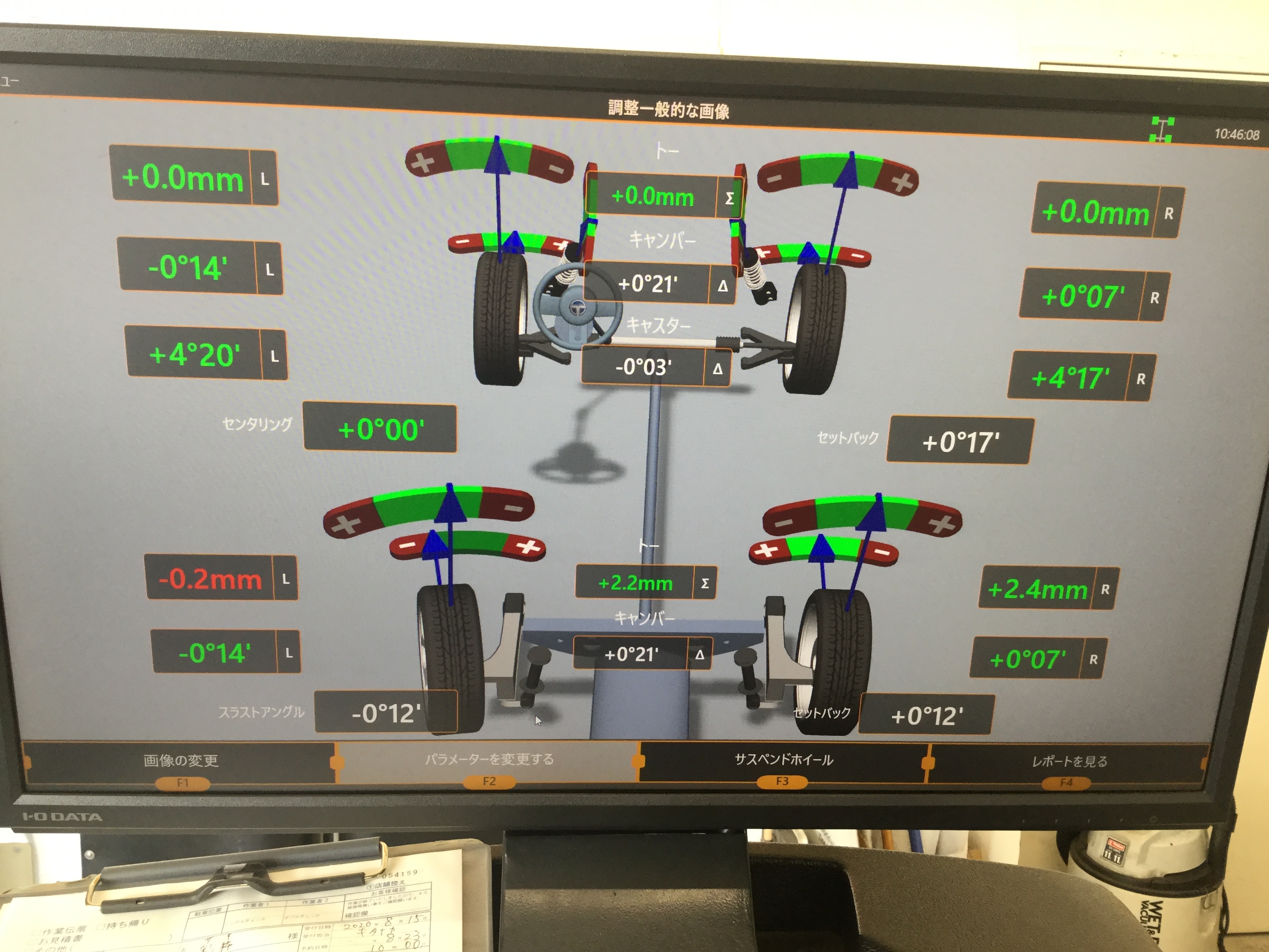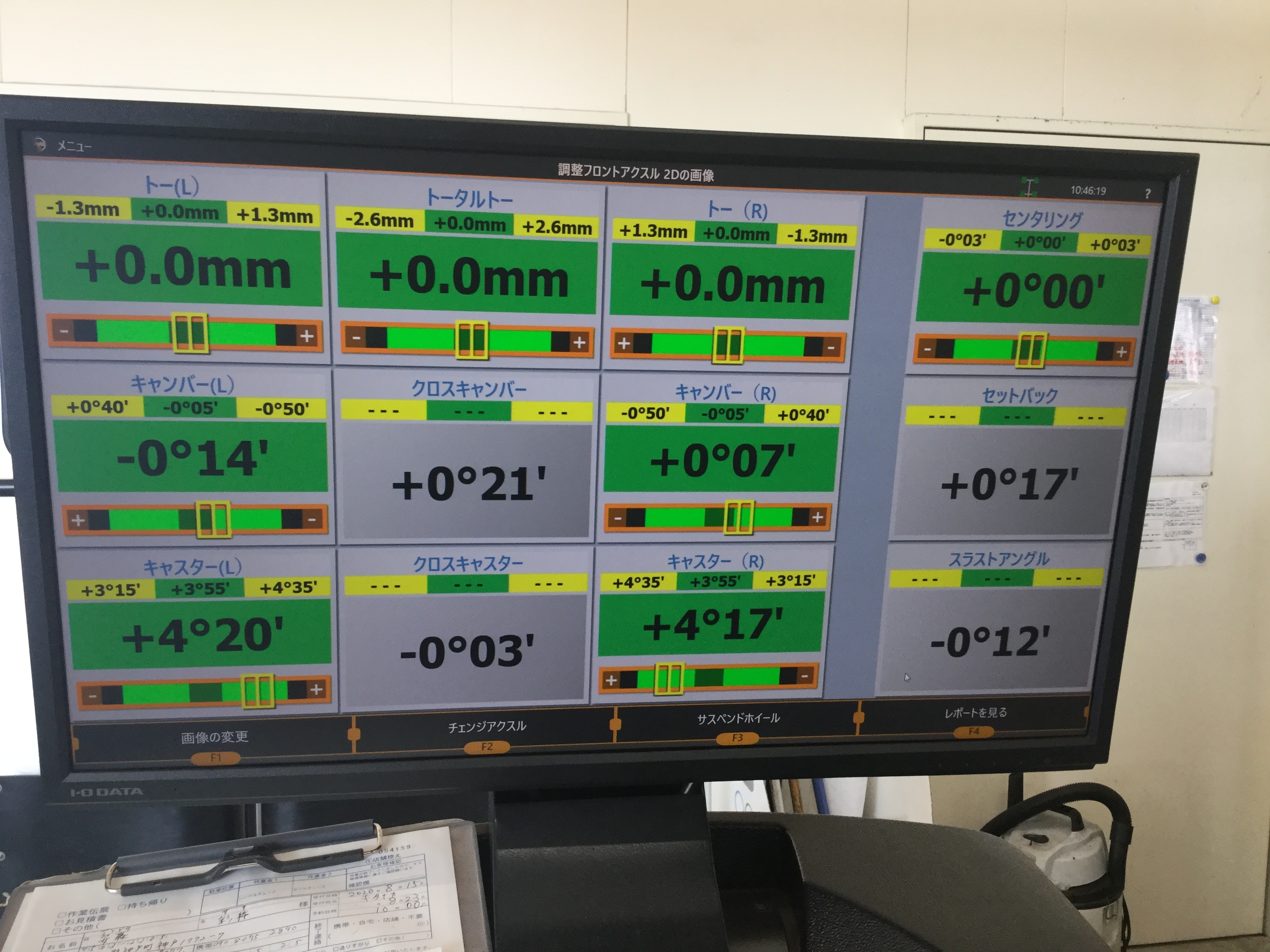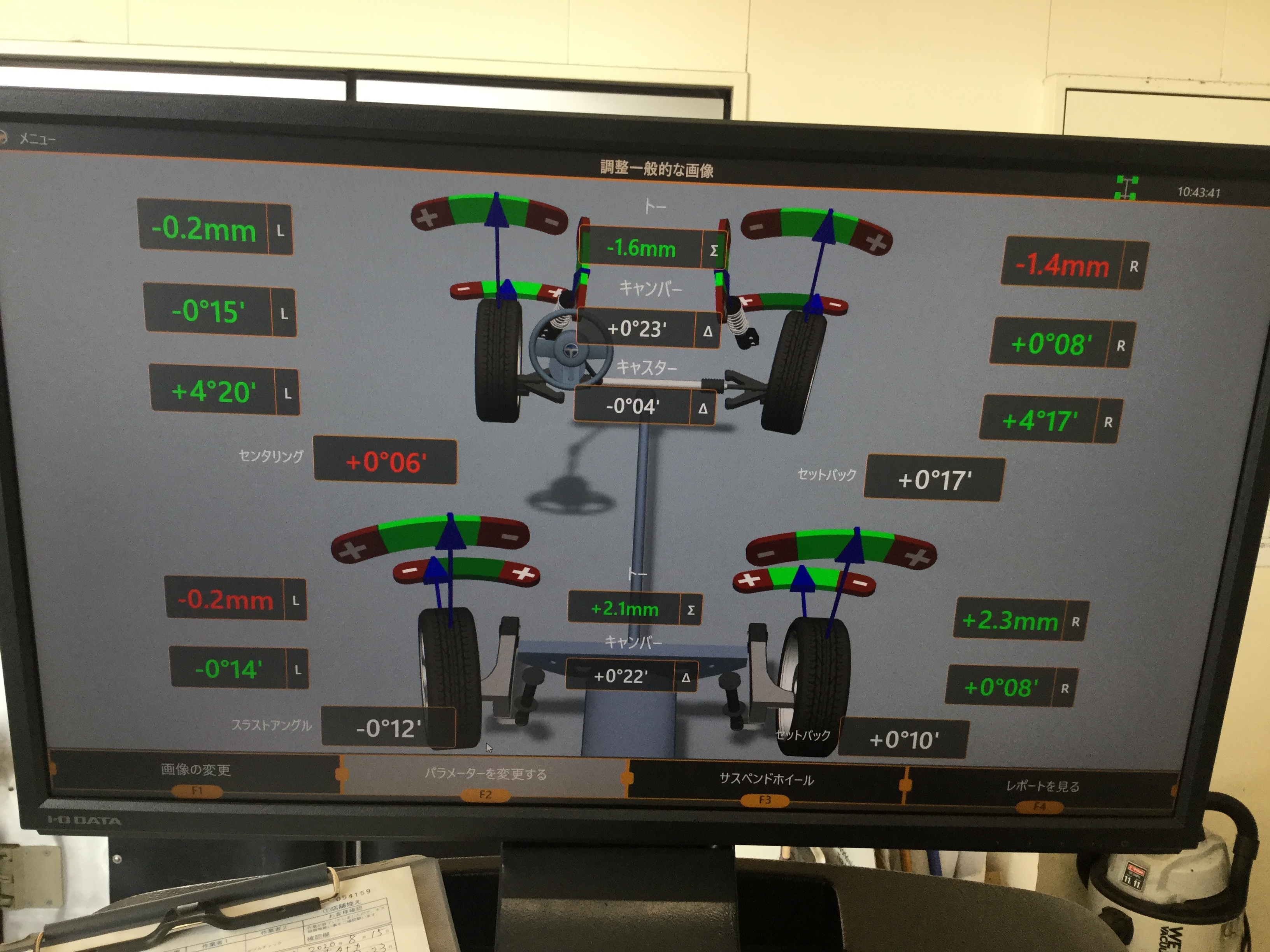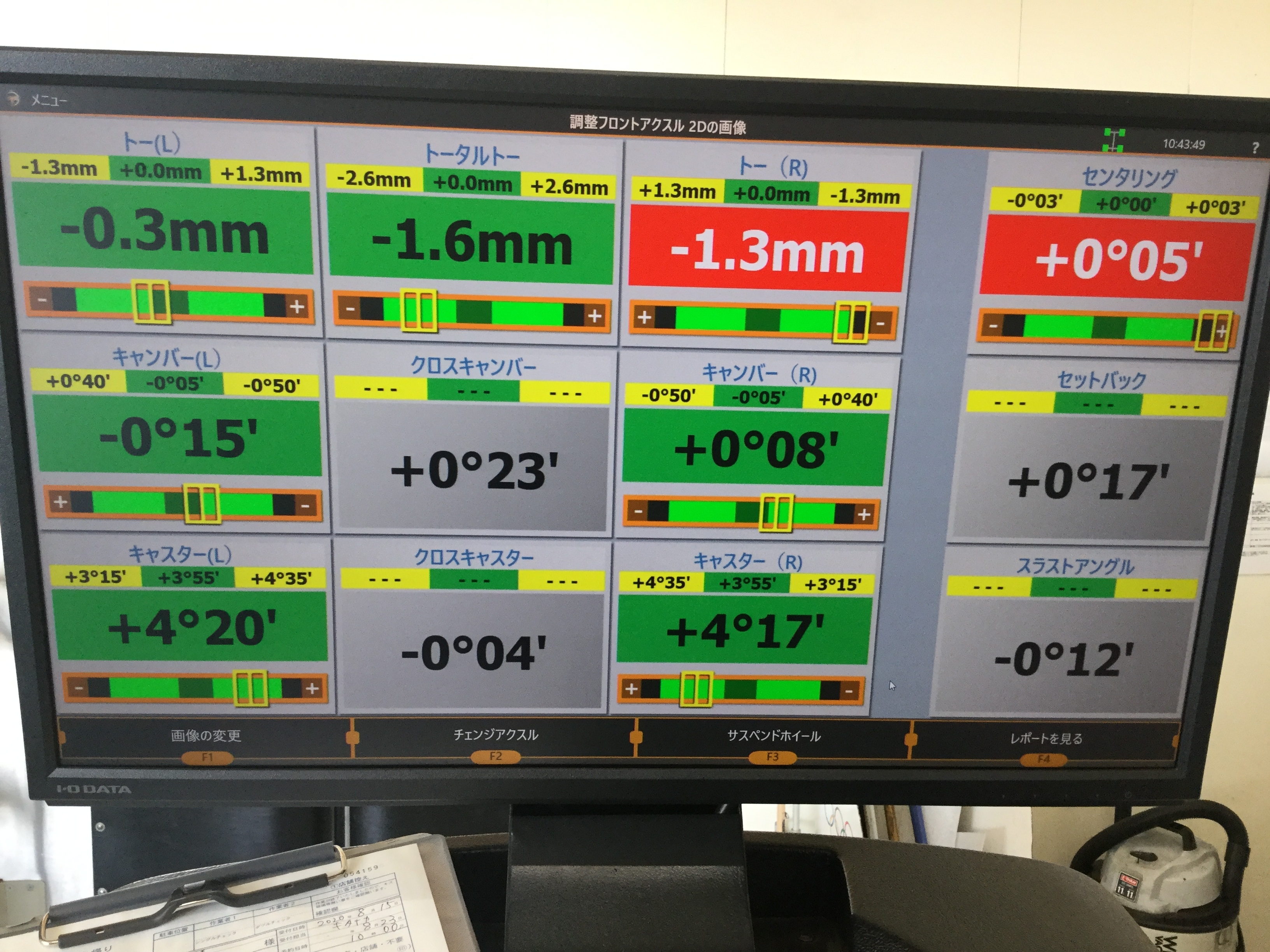 IMG_1291.JPGIMG_1292.JPG右前のトー角がズレていたので基準値に調整します。