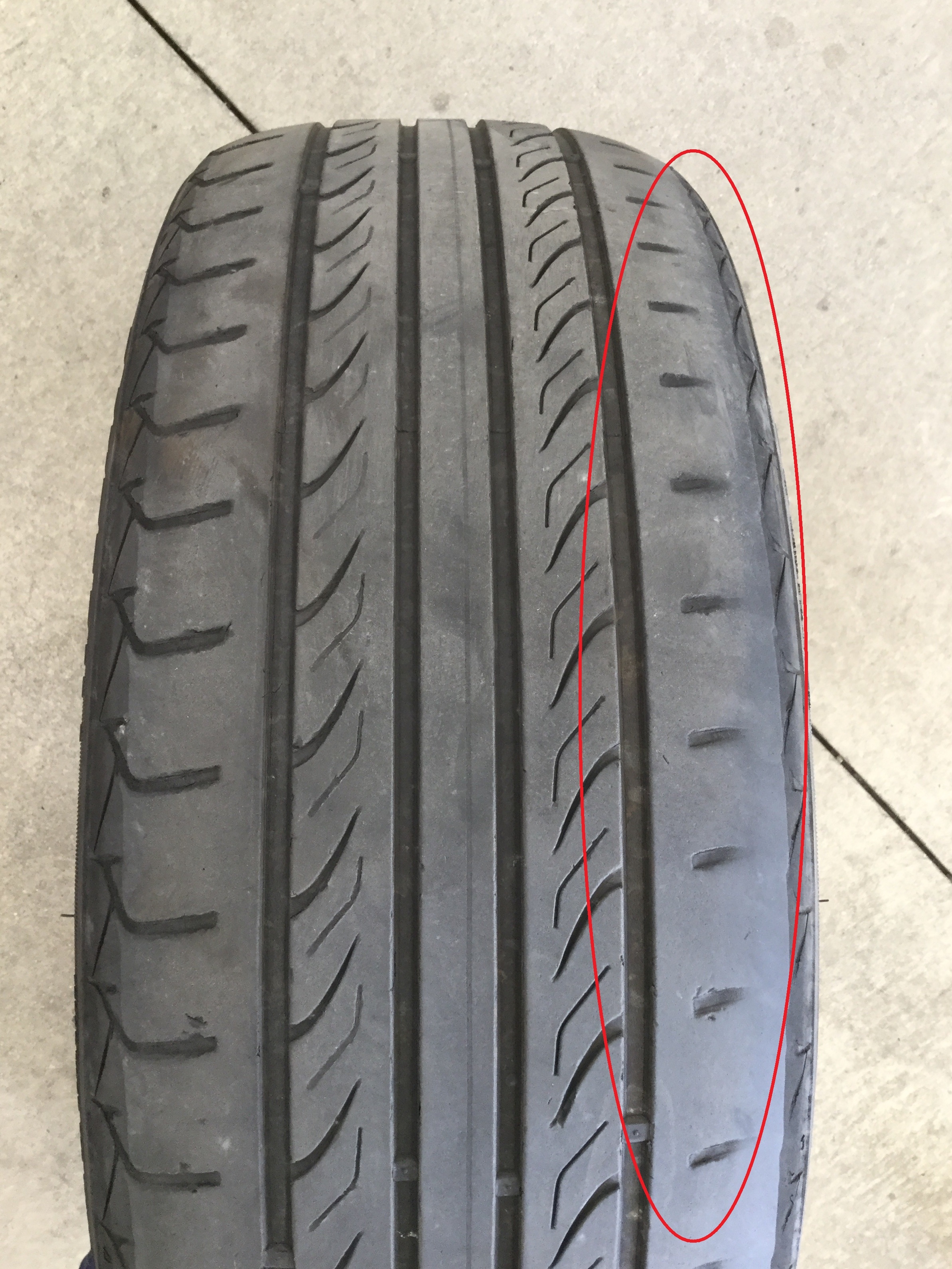 アライメントが狂っているとタイヤにこのような症状が見られます。