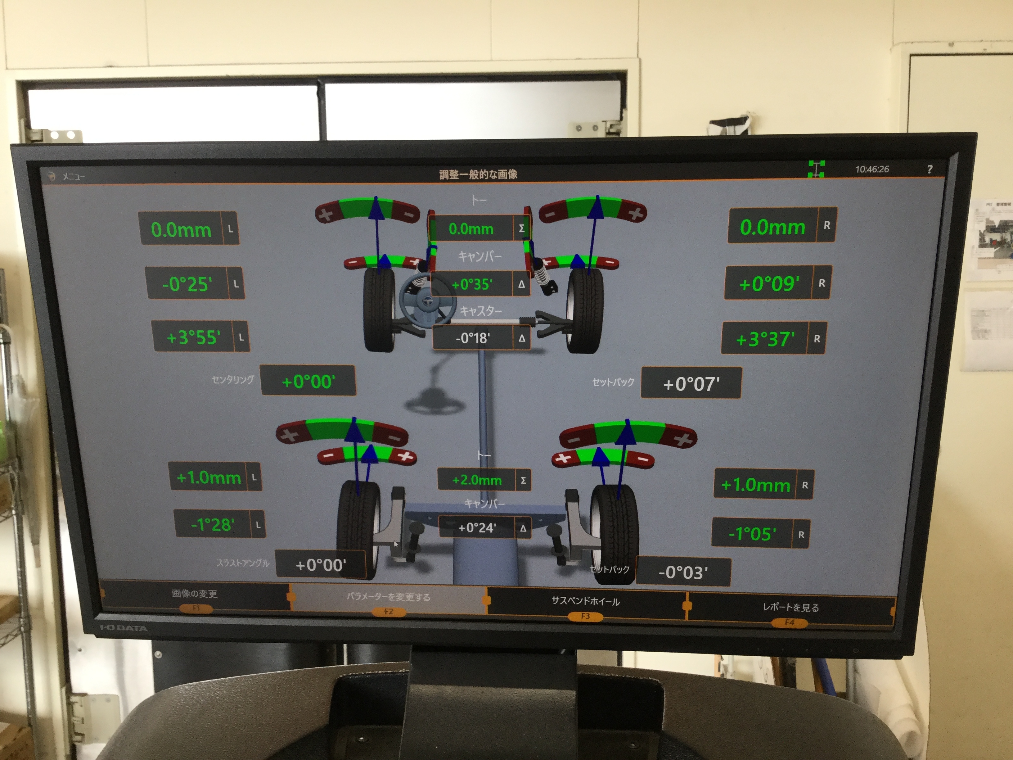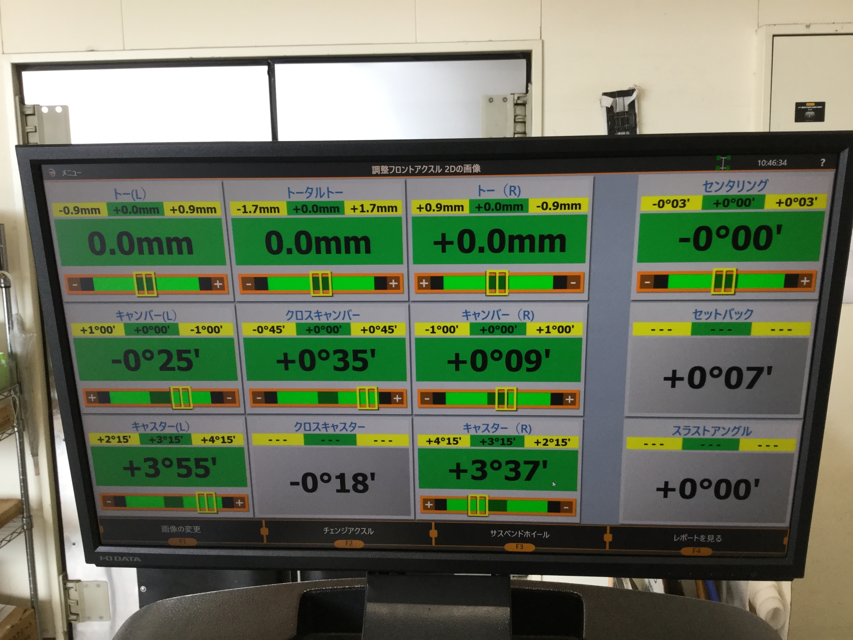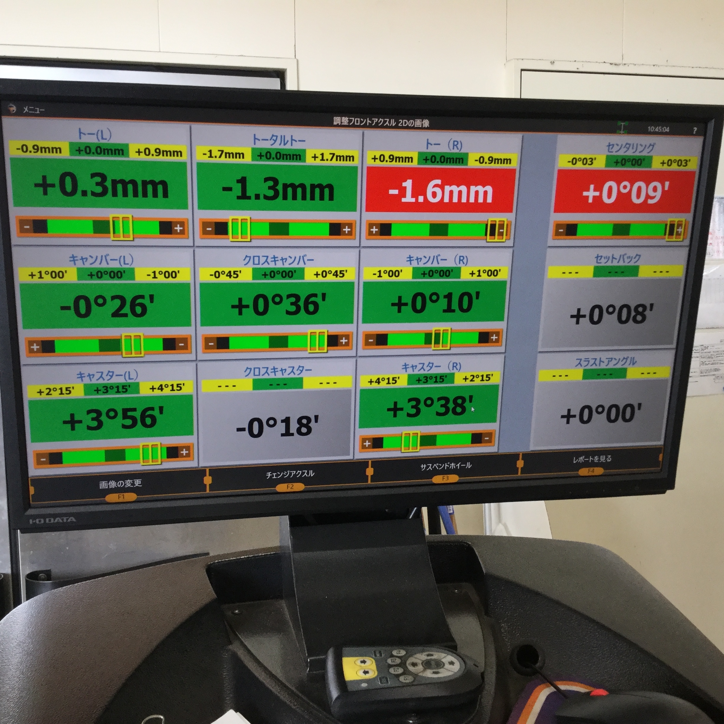 左のトー角も僅かですが基準値ピッタリに微調整を施します。