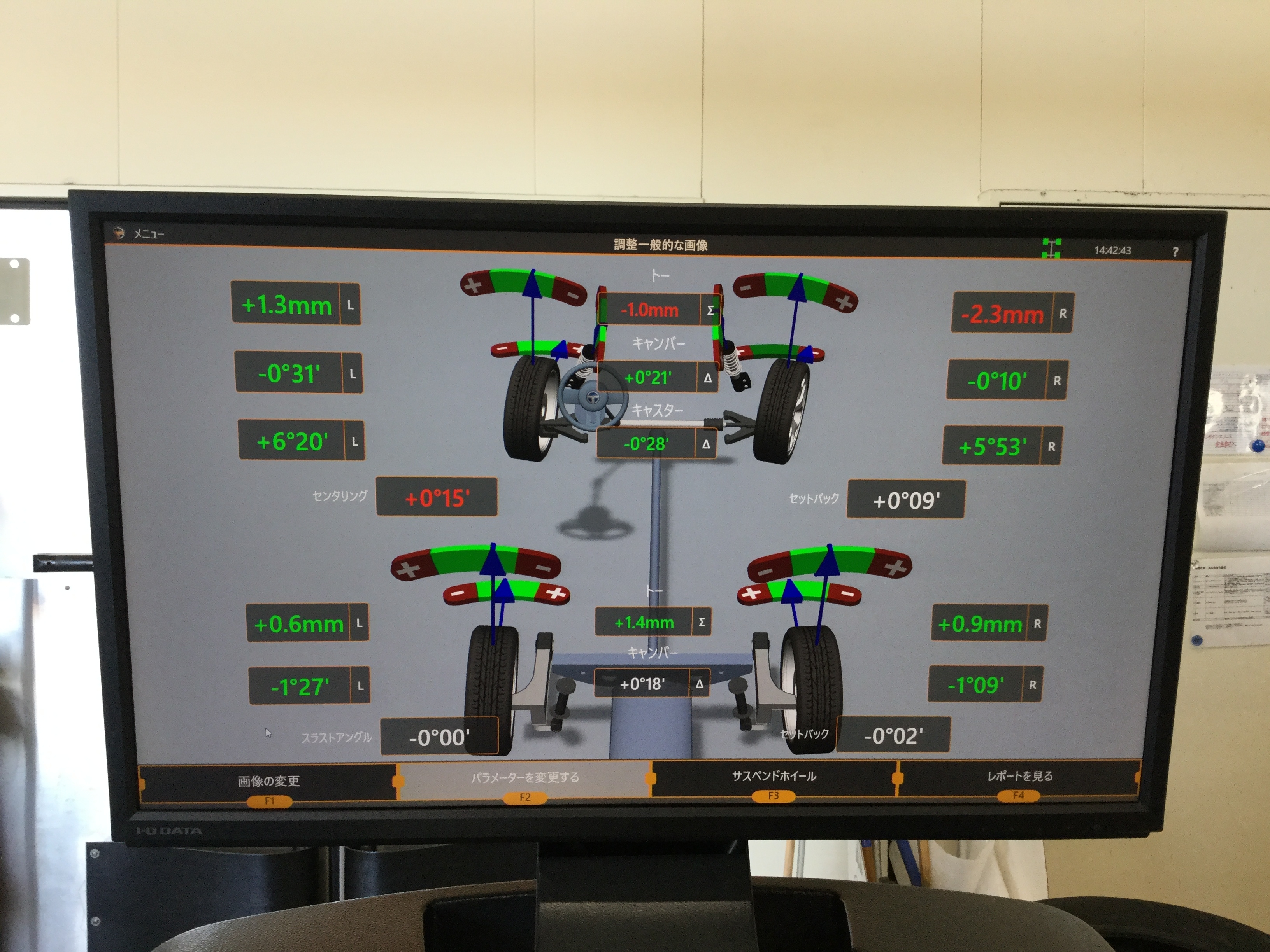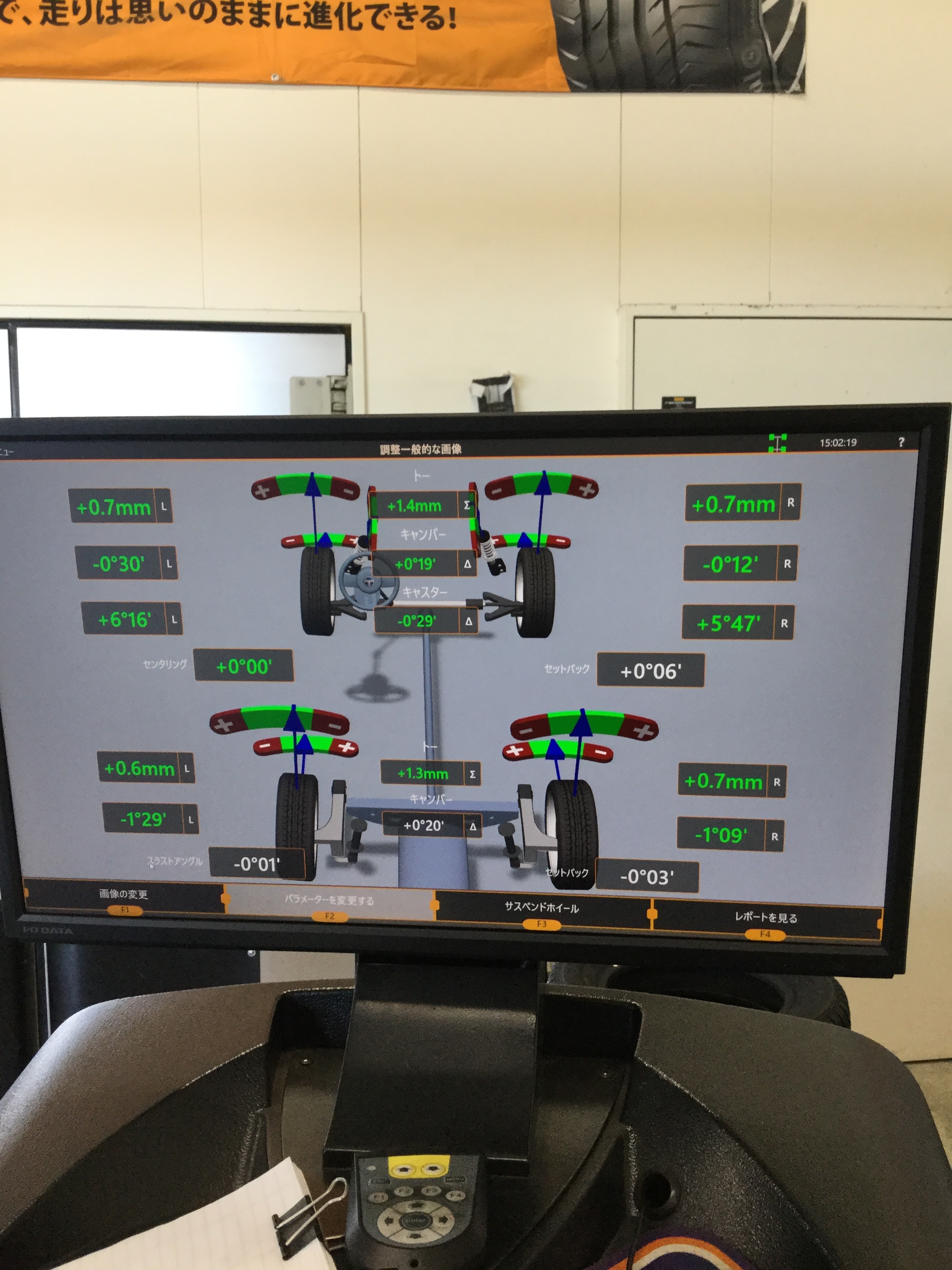 更にこちらのお車、以前装着されていたタイヤに偏摩耗が見られたのでアライメント調整もオススメし、作業致しました!