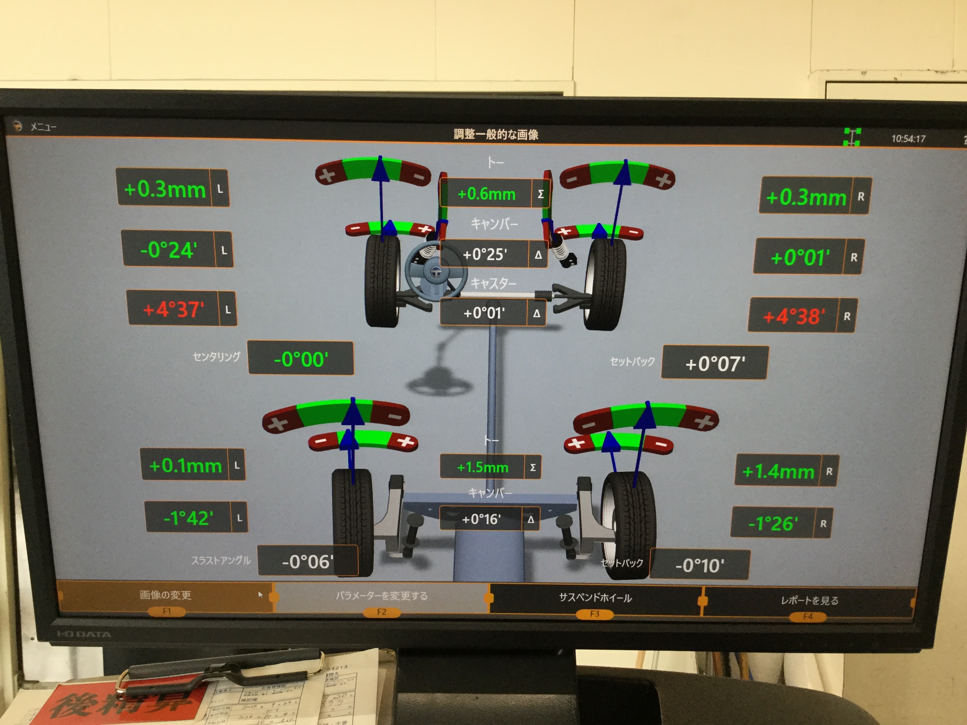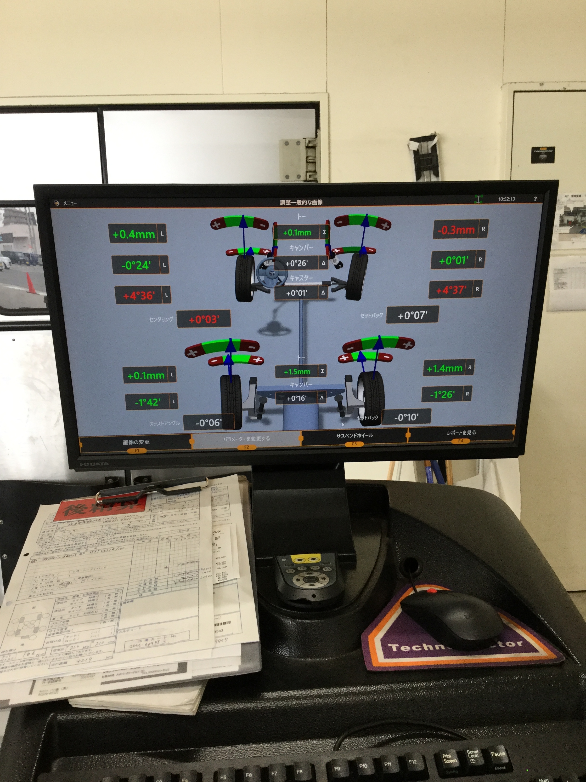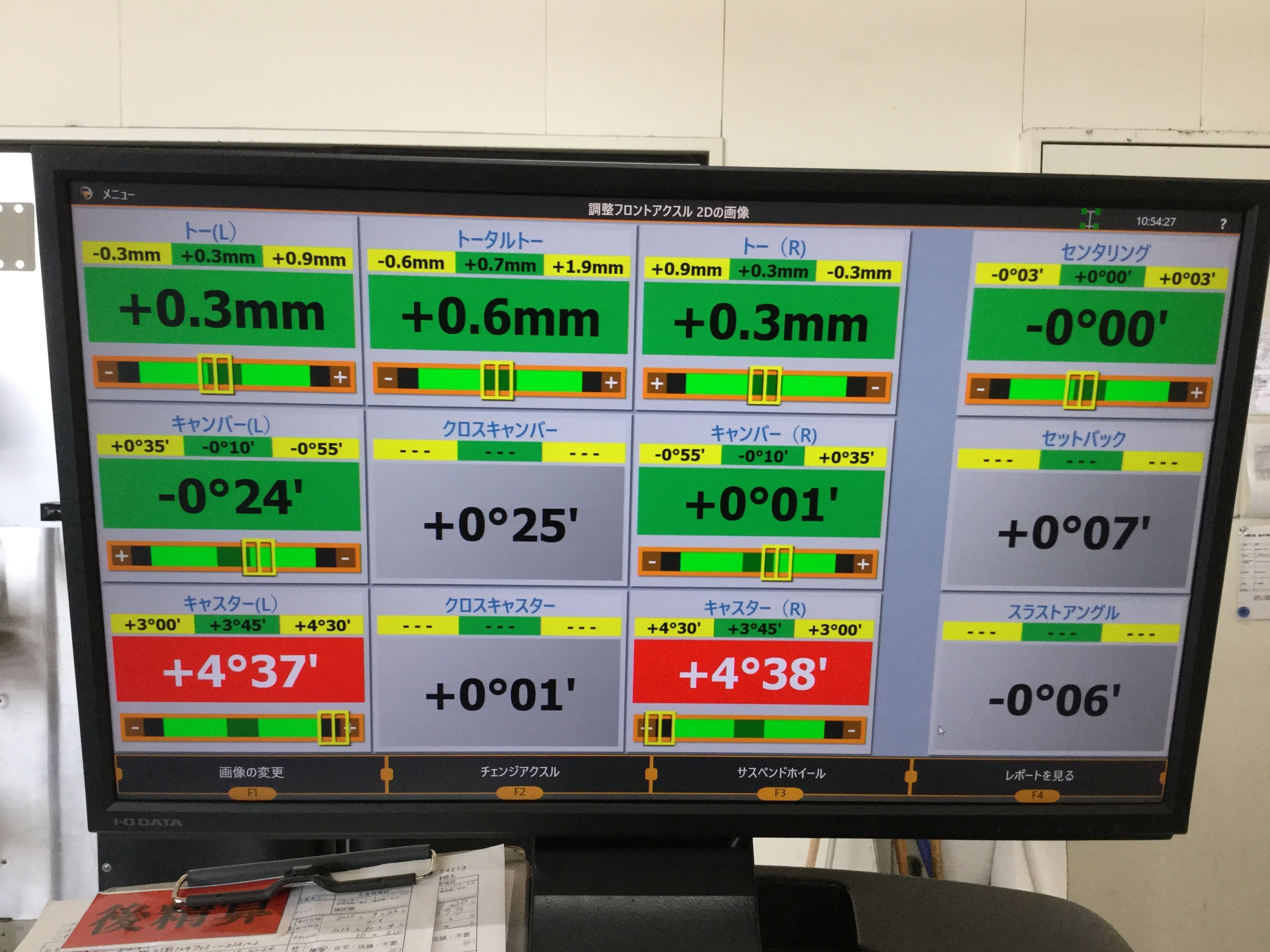こちらのお車は走行距離4000km程なのですが、そのようなお車でも段差や道路の起伏等でアライメントが狂ってしまいます・・・