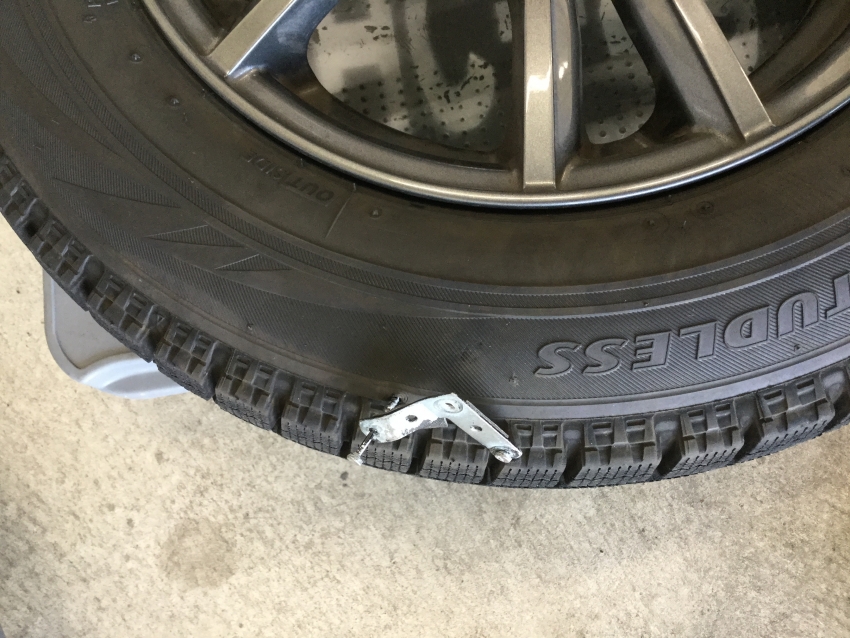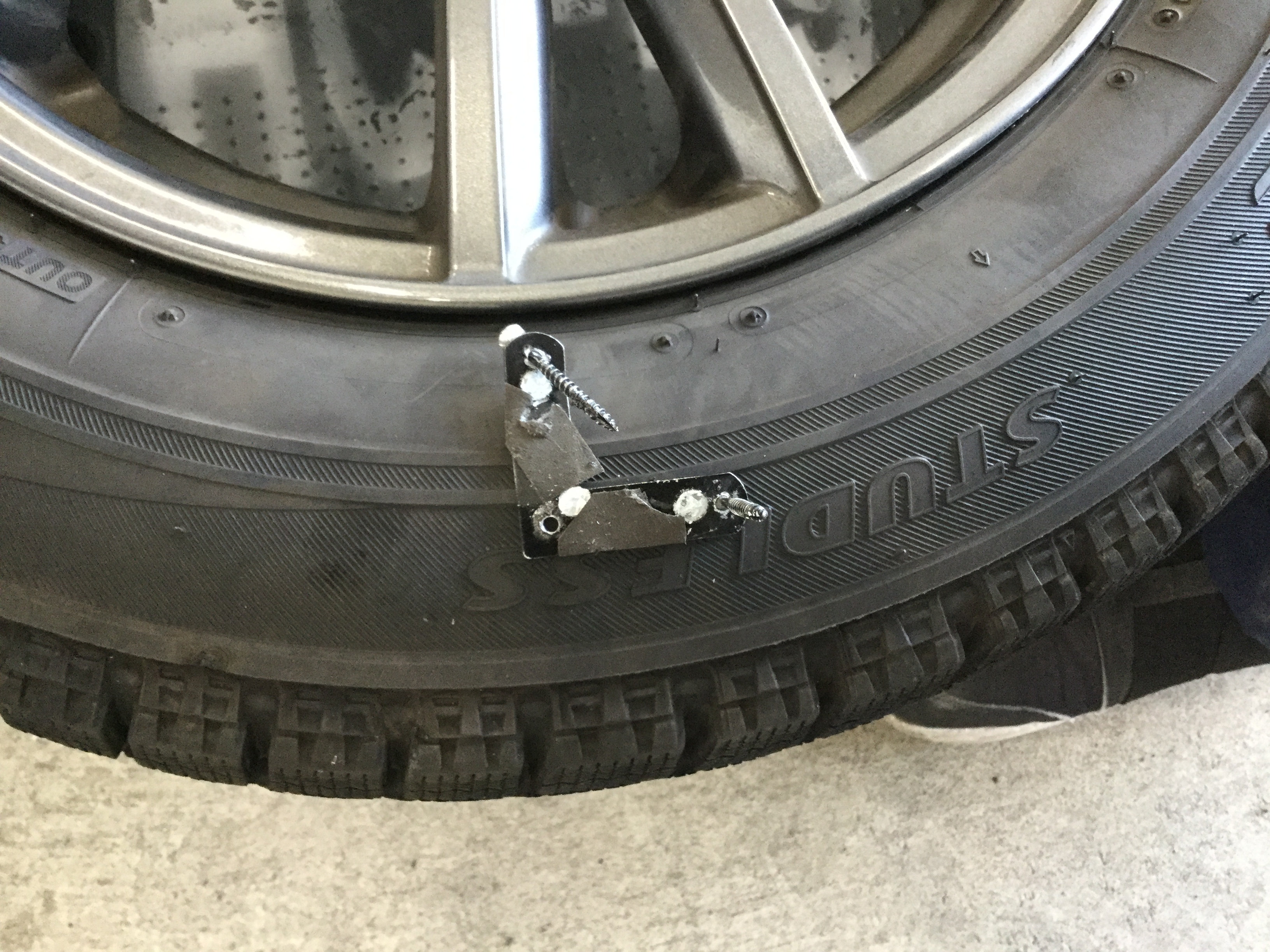 写真を見るとわかるようにネジのついた部品がタイヤに刺さっている状態で,