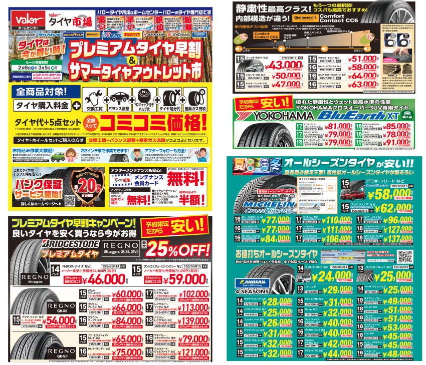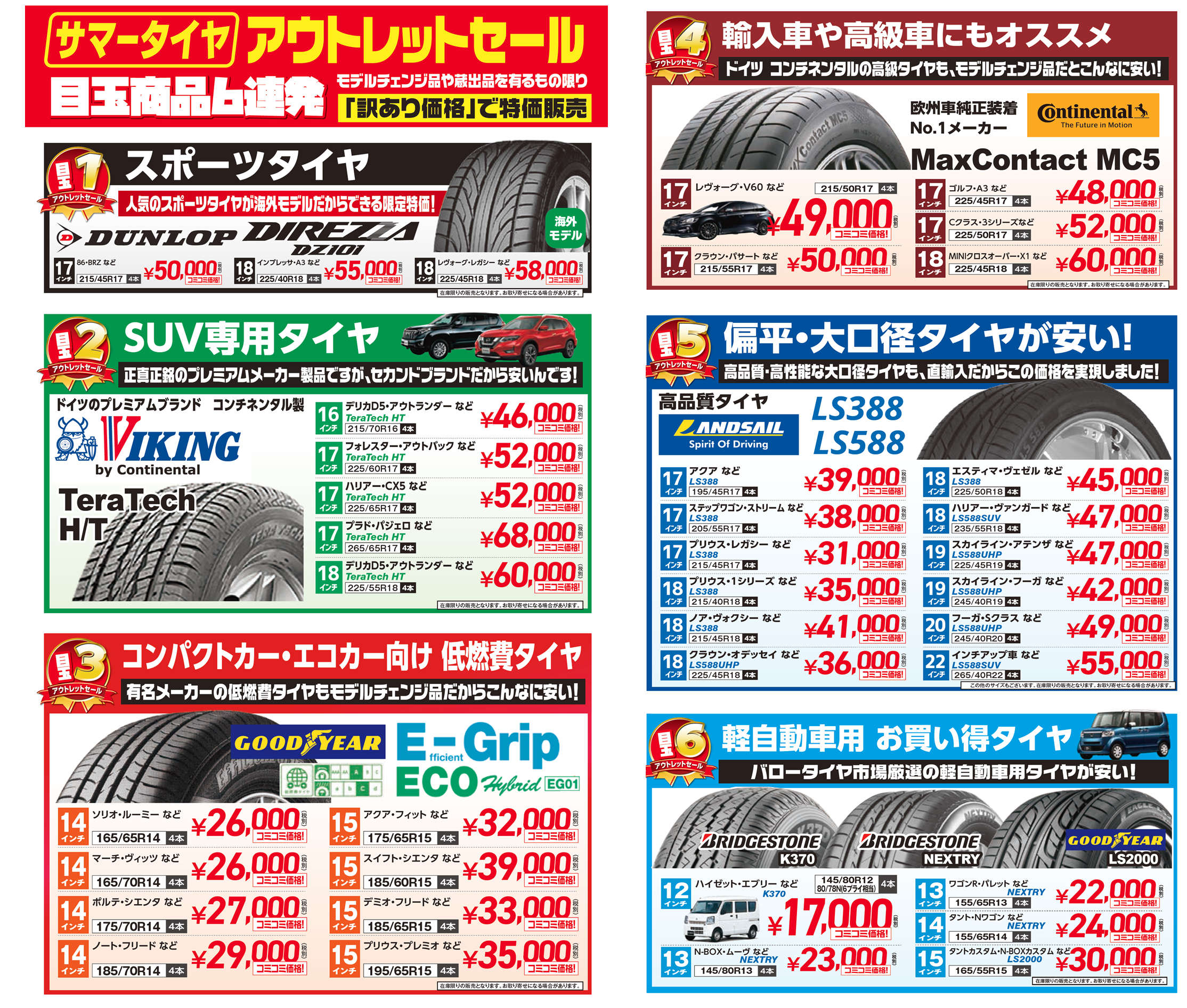 他にも、アウトレットの格安タイヤをはじめ、夏冬両方履けるオールシーズンタイヤなど、様々なタイヤをお値打ち価格にて販売させていております。