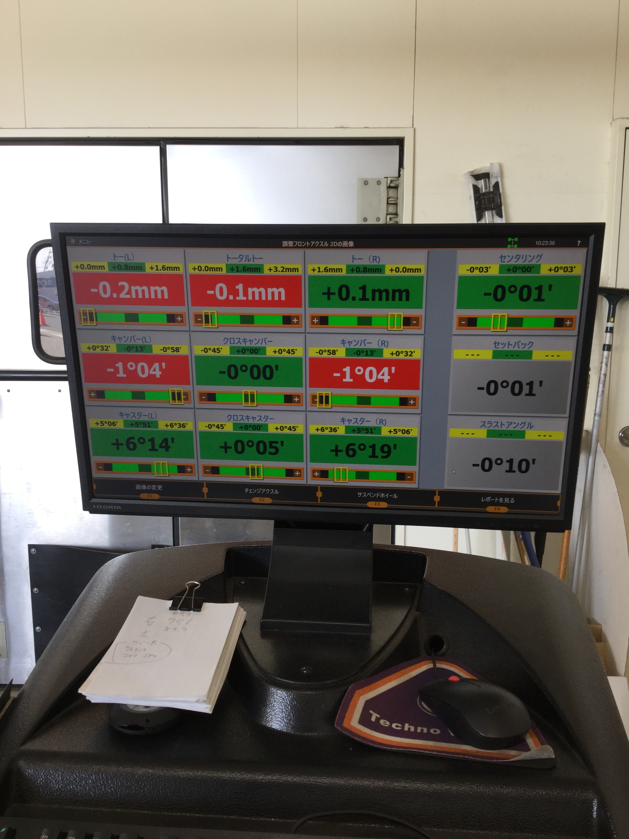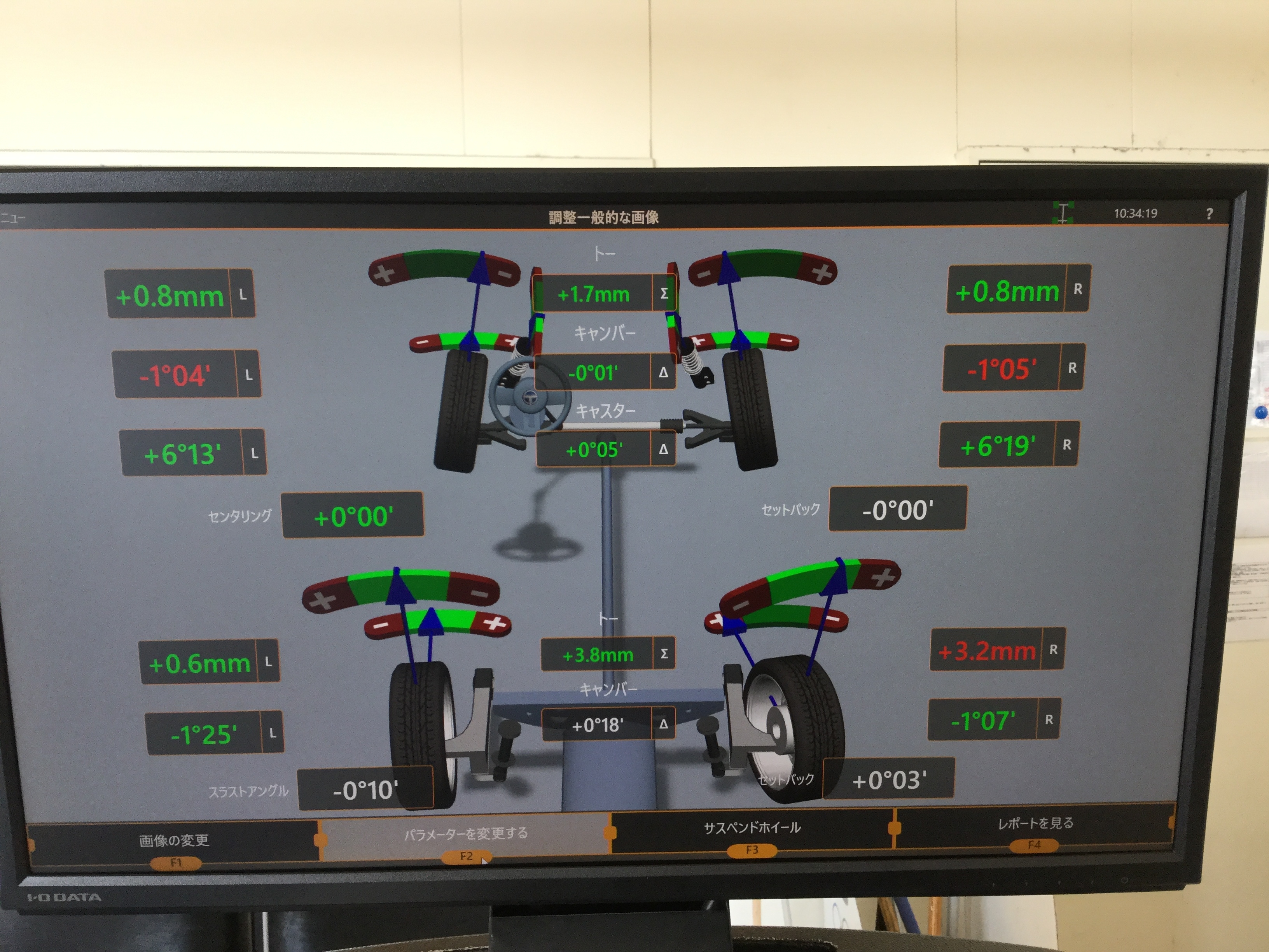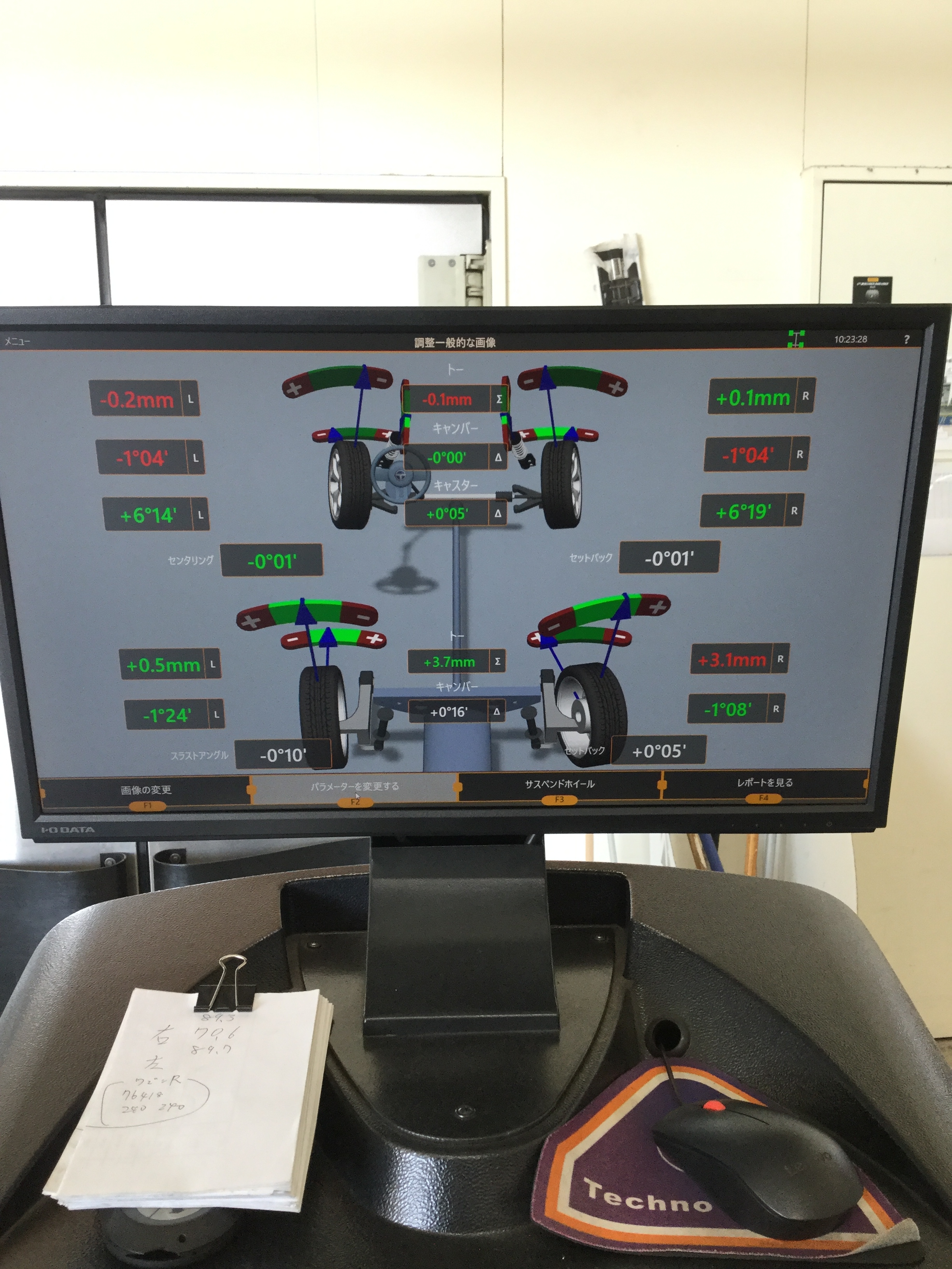 このお車はフロントトーのみ調整可能なのでフロントを基準値に調整します。