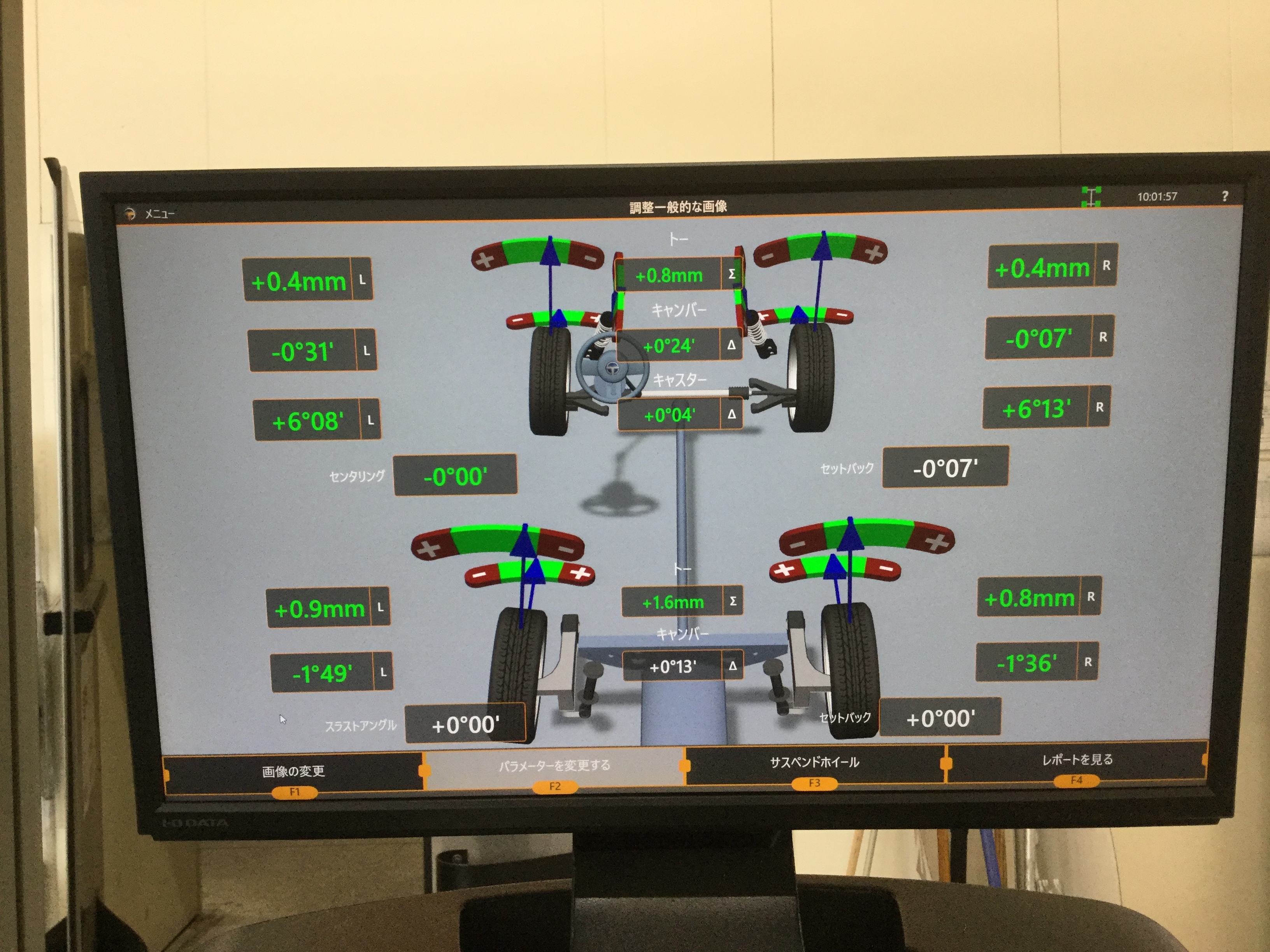 特にフロントのズレは走行やタイヤの摩耗にかなりの影響をもたらしそうです。