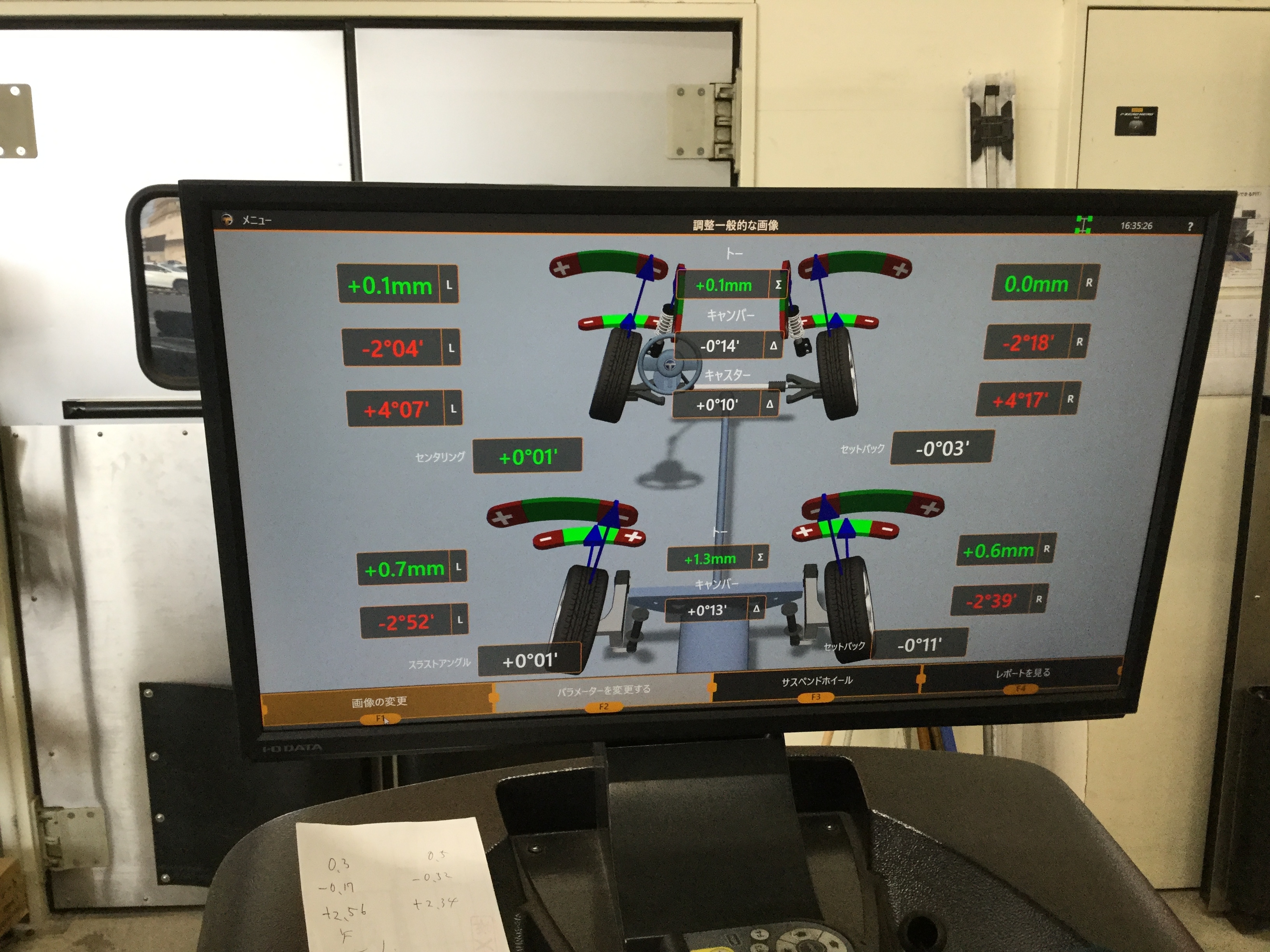 その後、フロントトー角、キャンバー角を調整致しました!!↓↓↓