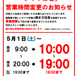 AM9:00~PM8:00(ピット作業受付:AM9:00~PM7:00)1月/2月/5月/6月/7月/8月/9月