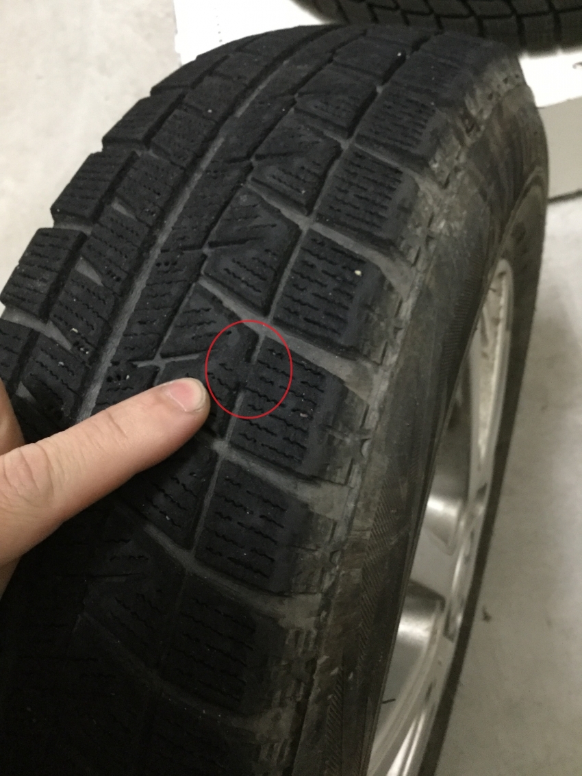スタッドレスタイヤは残溝50%未満(プラットフォームが露出)になると、冬タイヤとして使用できません。(最初の写真)その為、稀に上記の様なお話を耳にすることがあります。