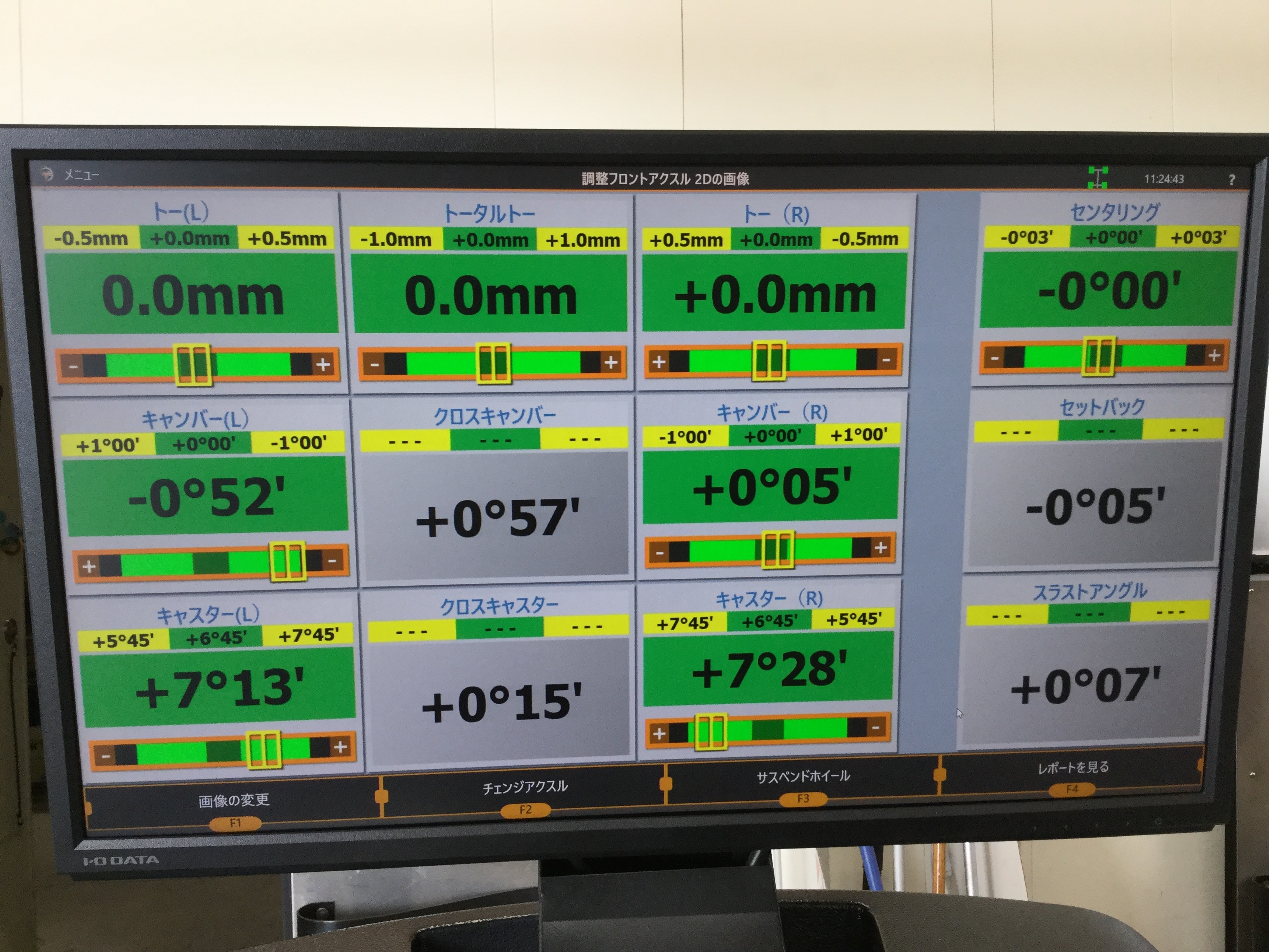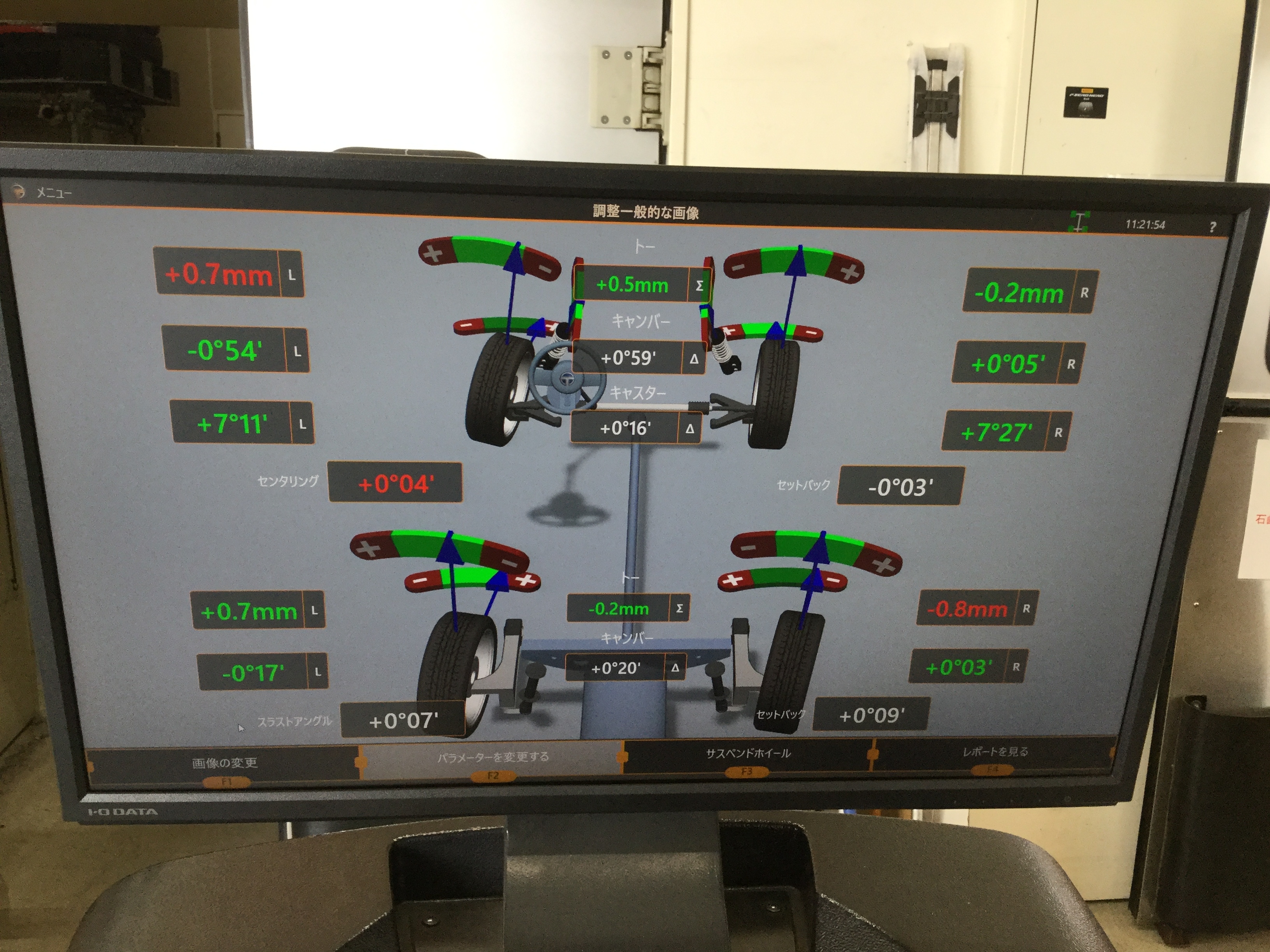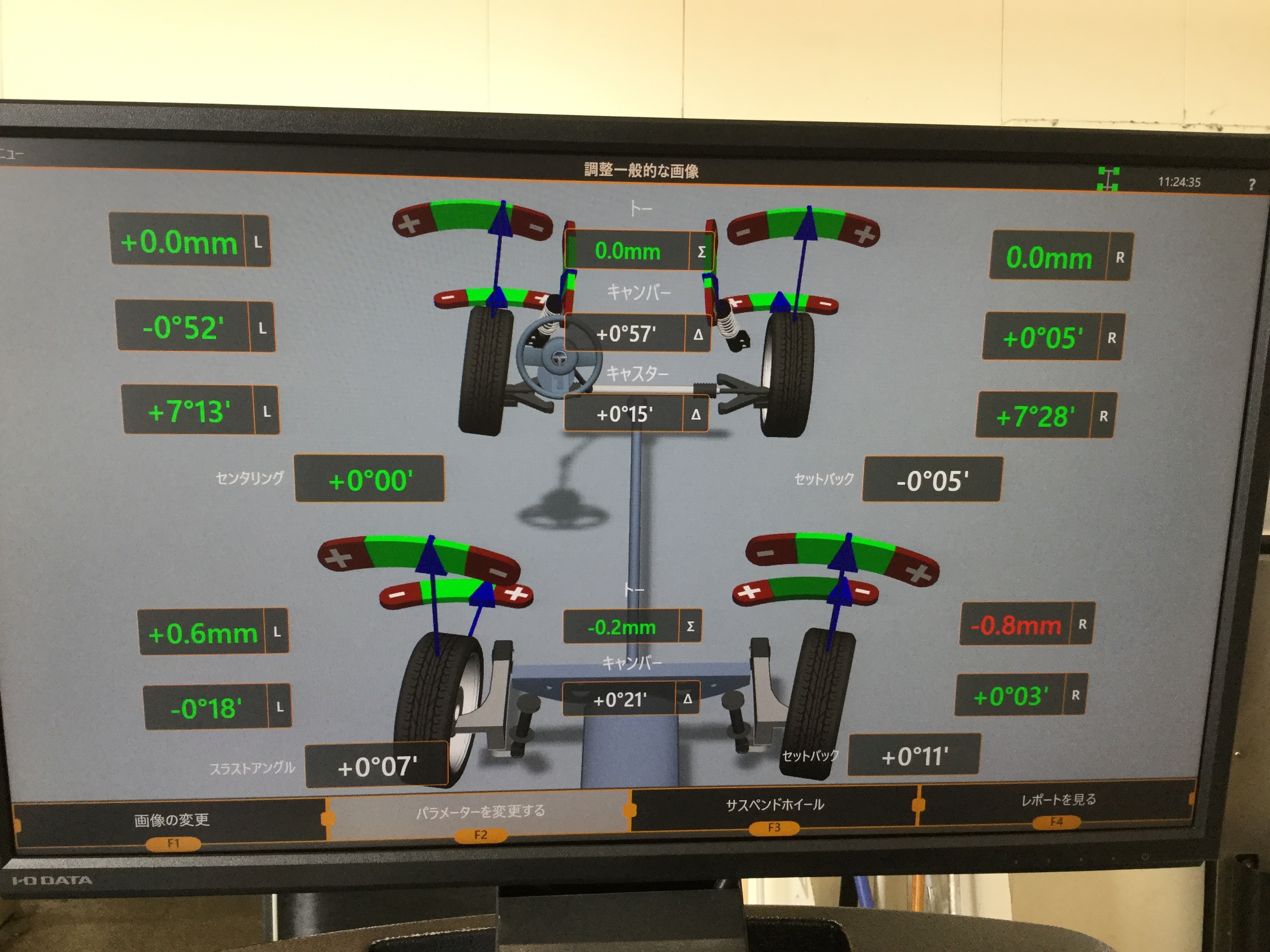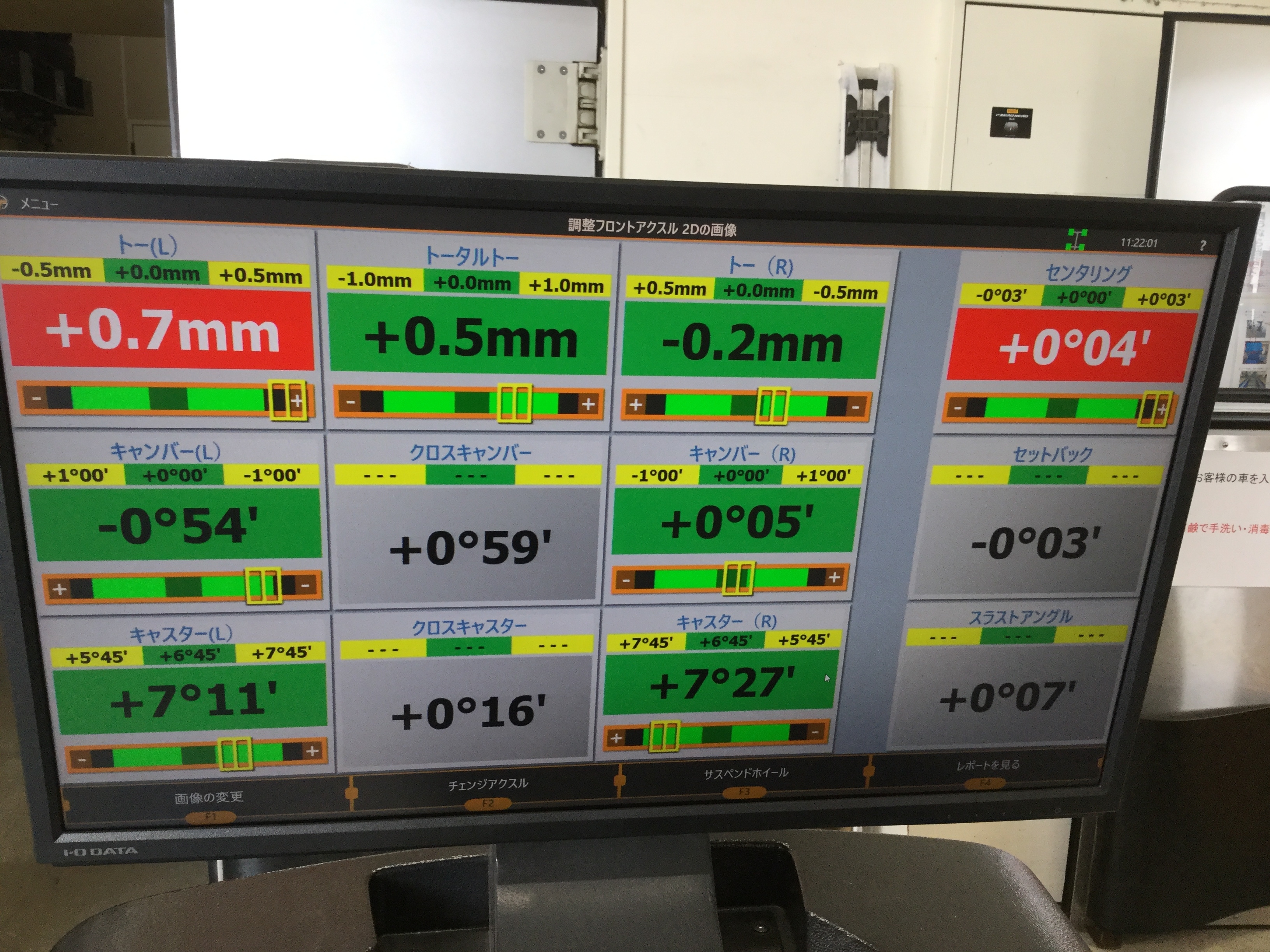 このお車は足回りの構造上フロントトー角のみの調整になります。