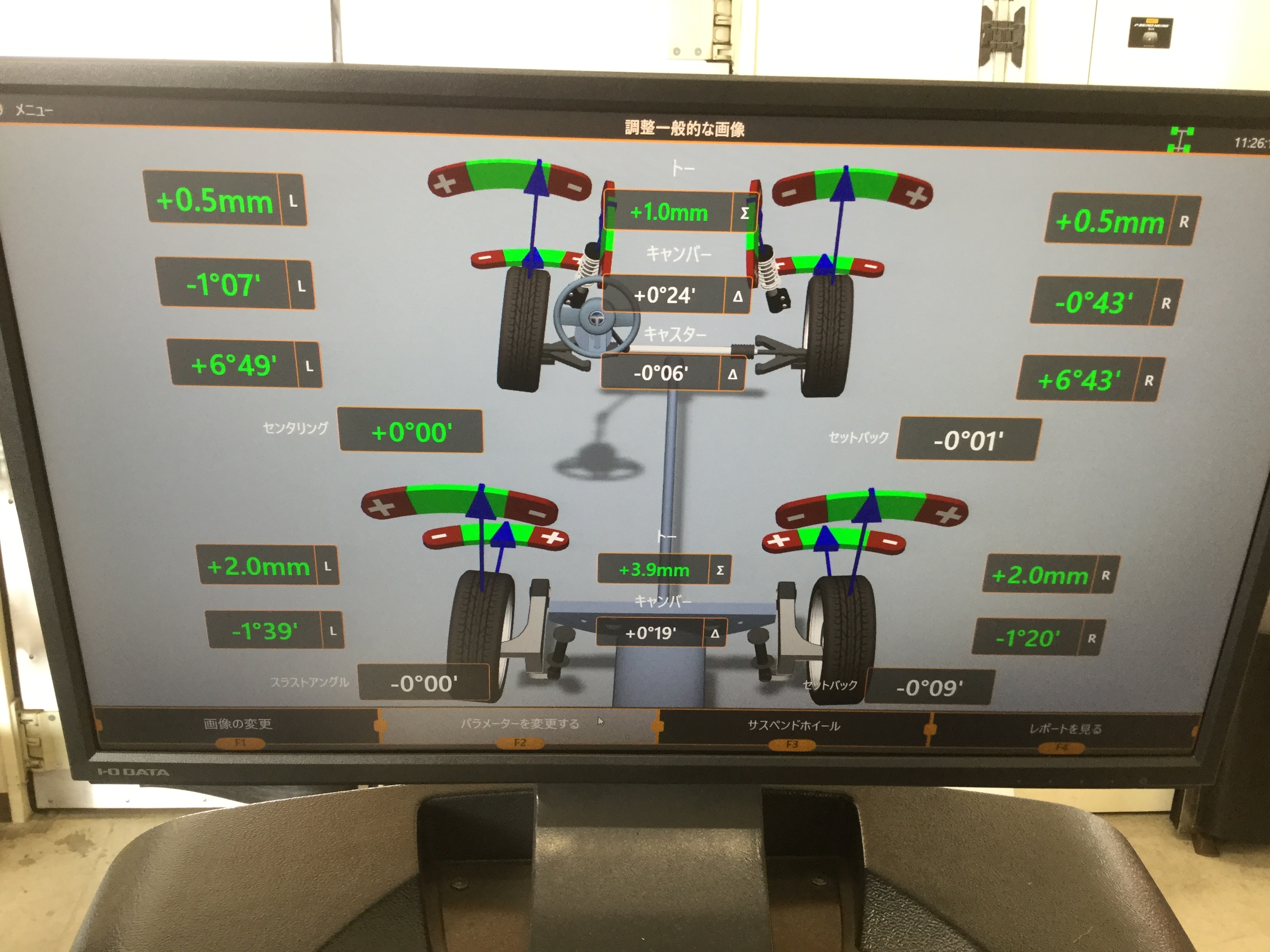 4輪全てのトー角においてズレがありましたので、基準値を目安に調整させて頂きました!!