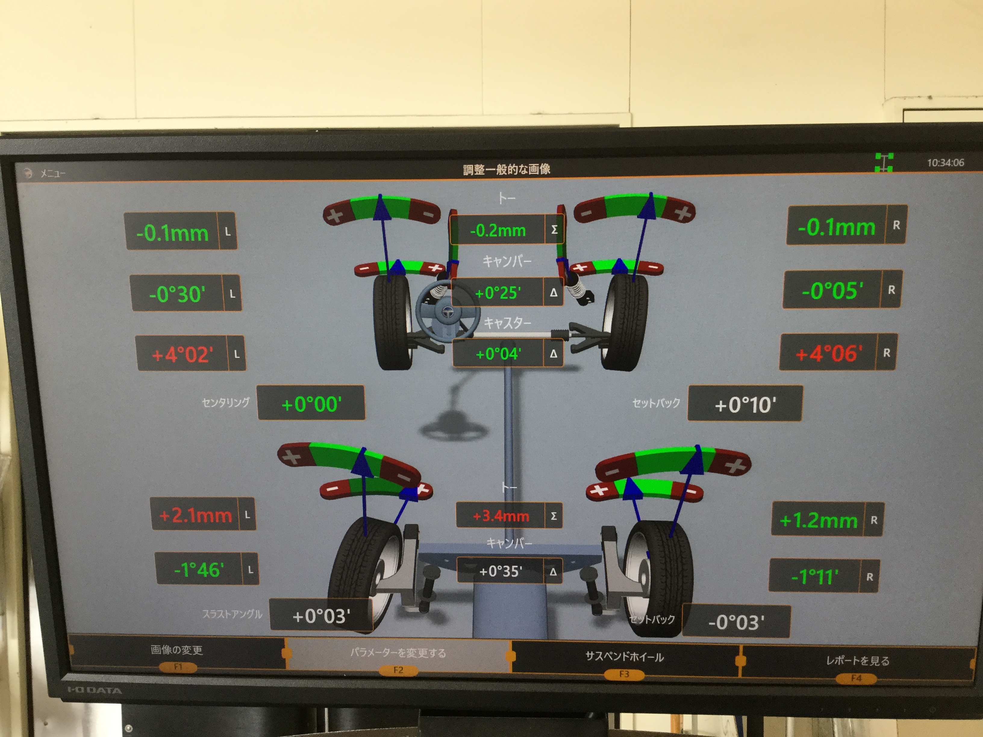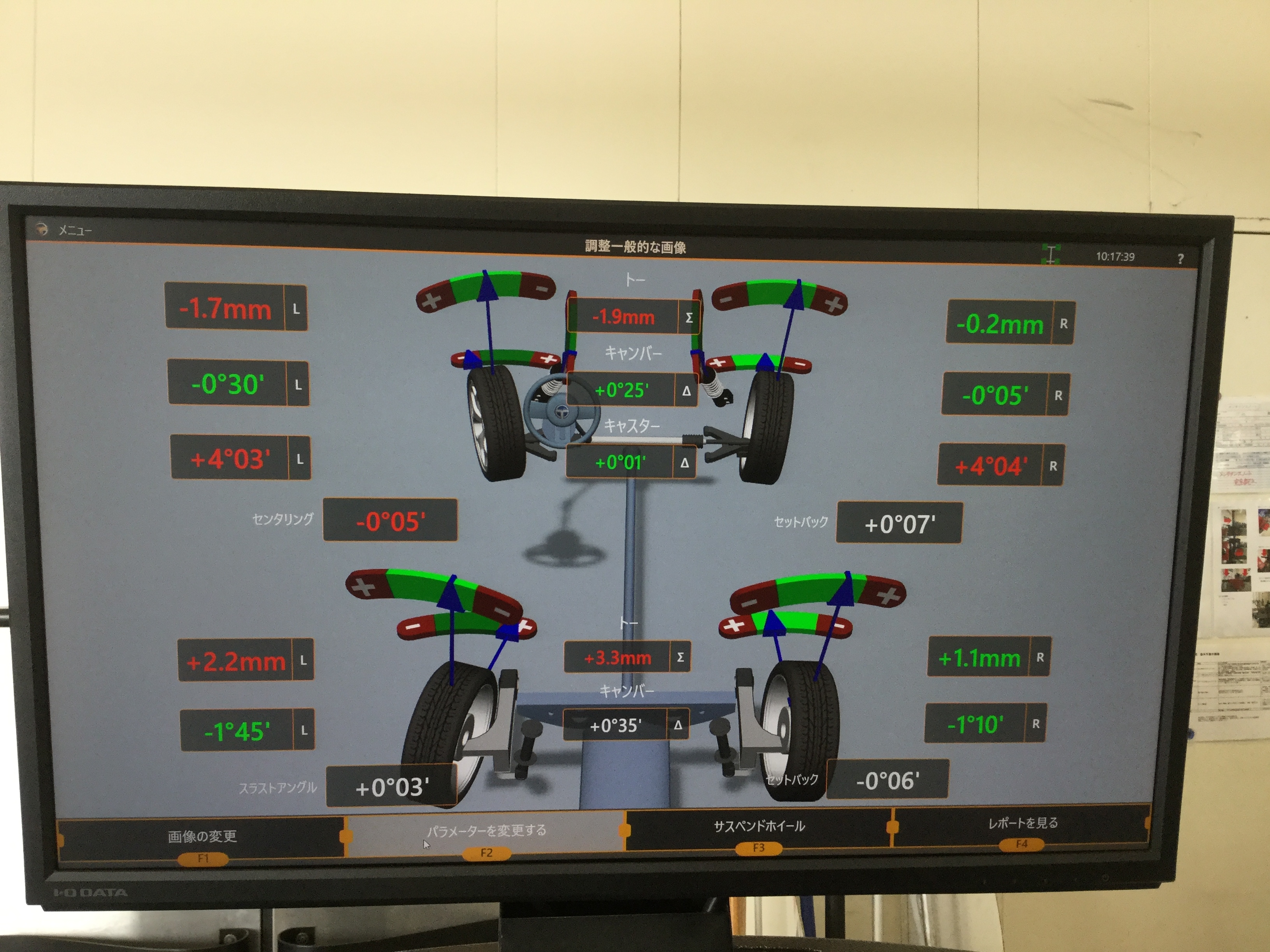 オーナー様は若干のトーアウトをご希望でしたので、左右共に基準値-0.1mmにて調整させていただきました!!