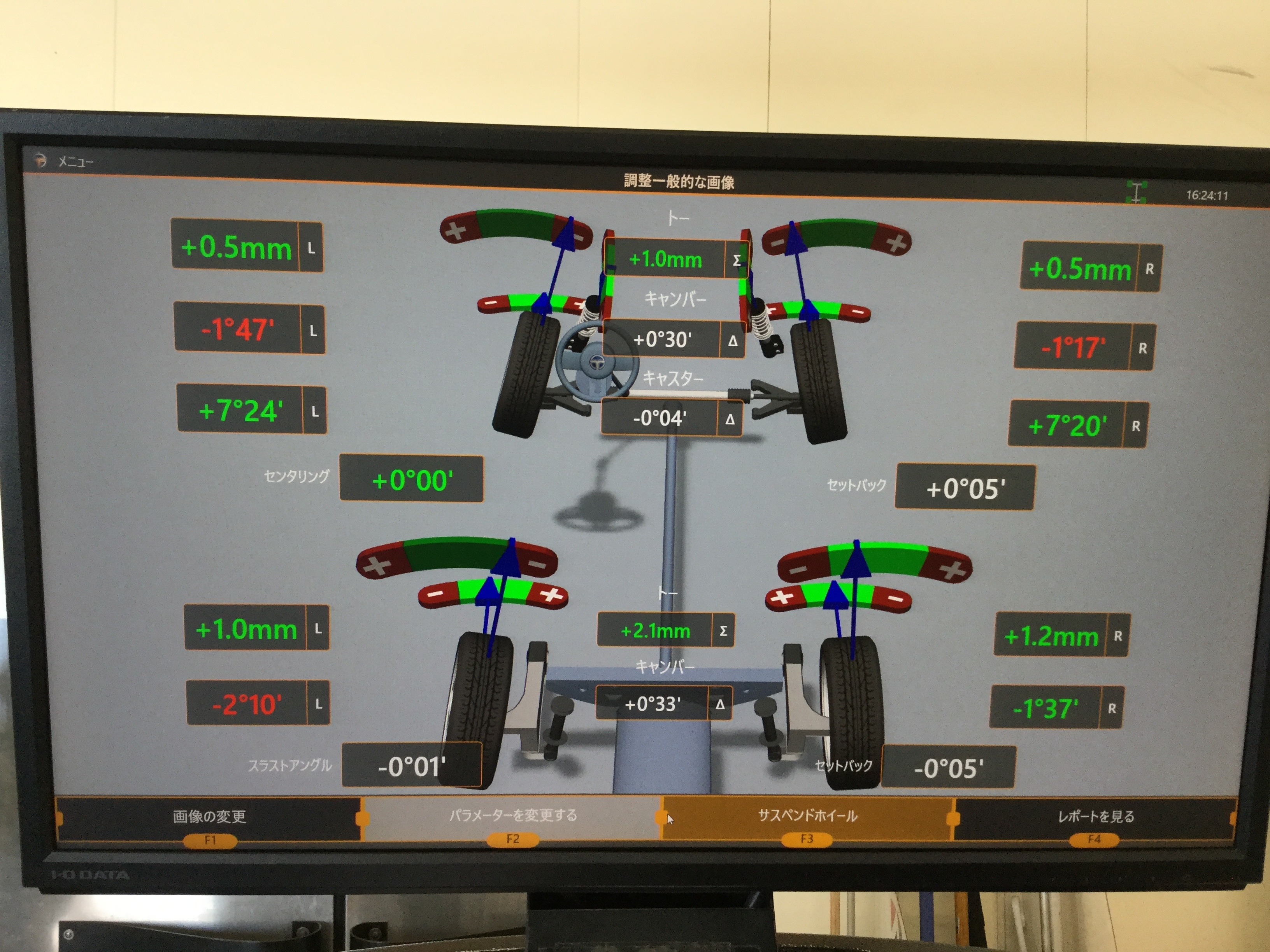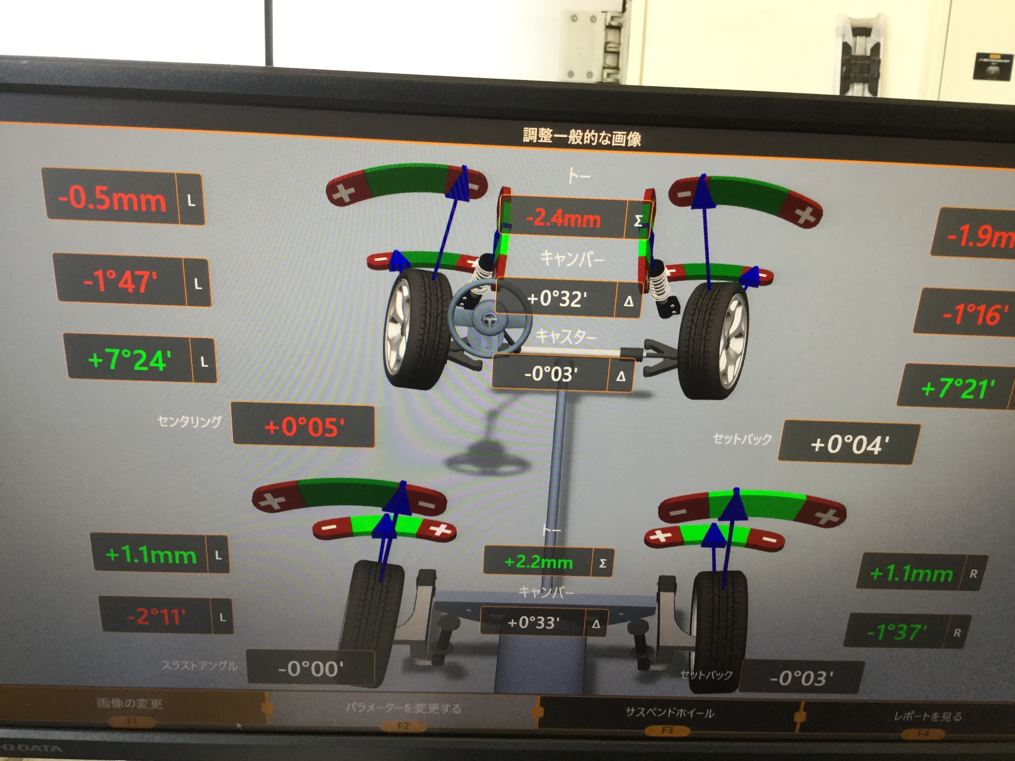 フロントトー角が左右共に車両外側を向いていました。幸いリアトー角はとてもキレイでした。