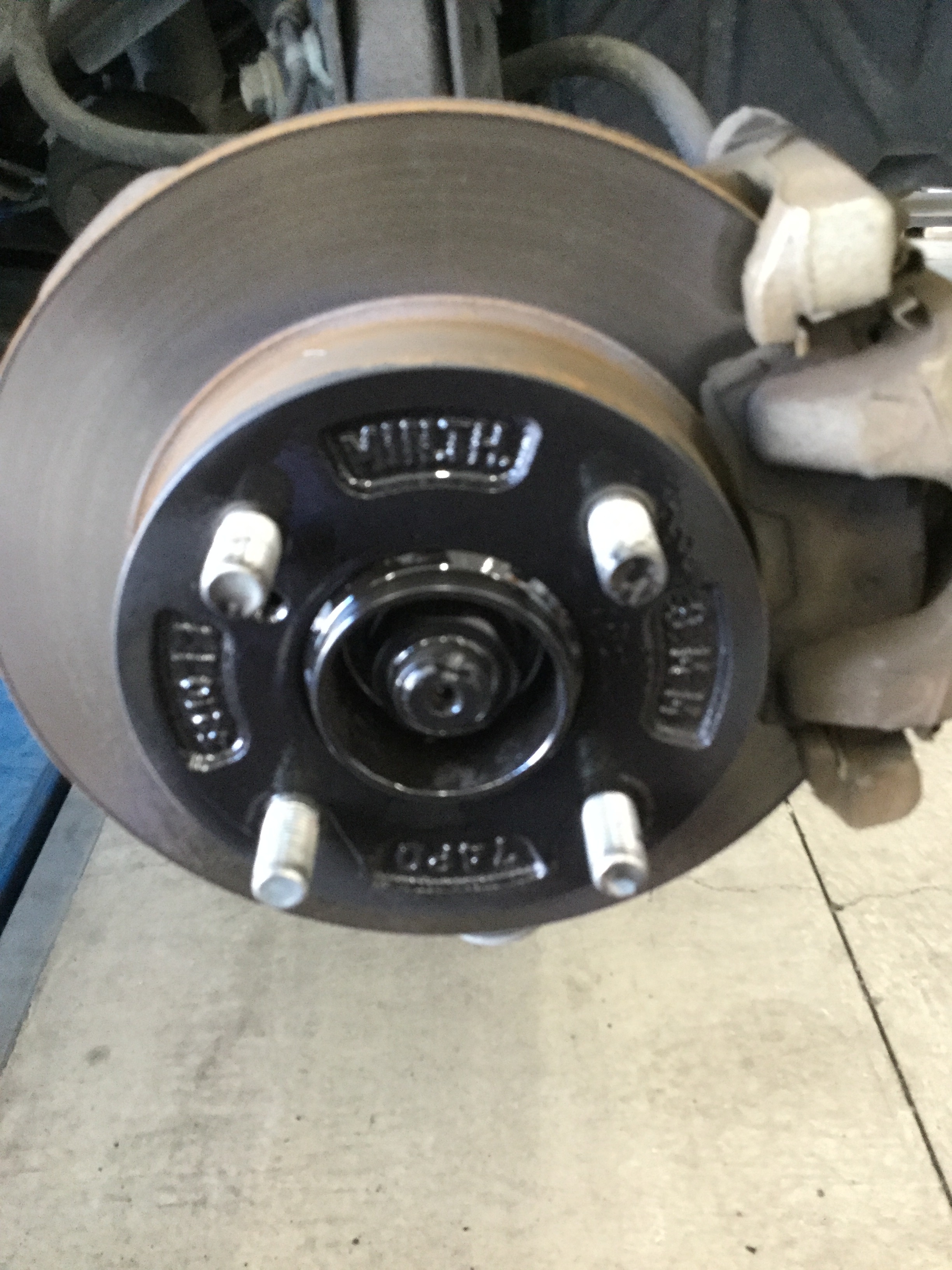 (このハブに4~6本のボルトが出ており、ホイールをナットで締めて固定しています。)