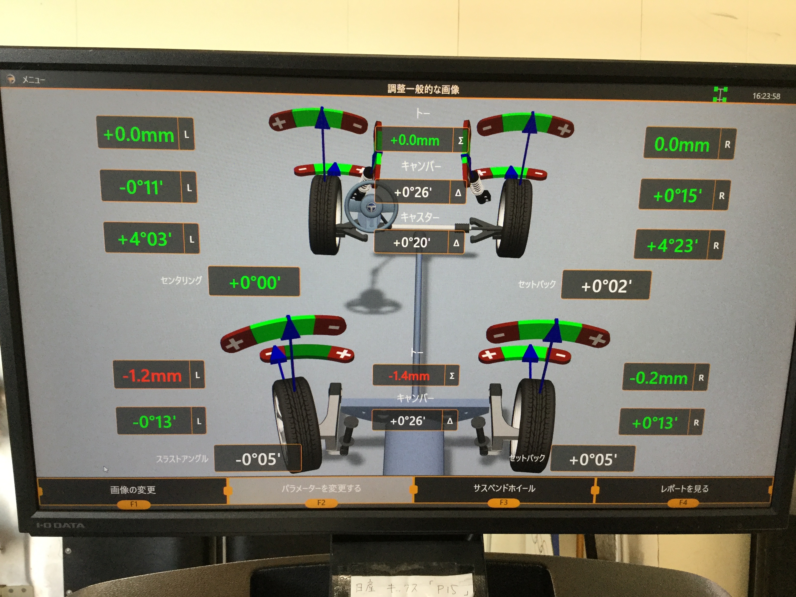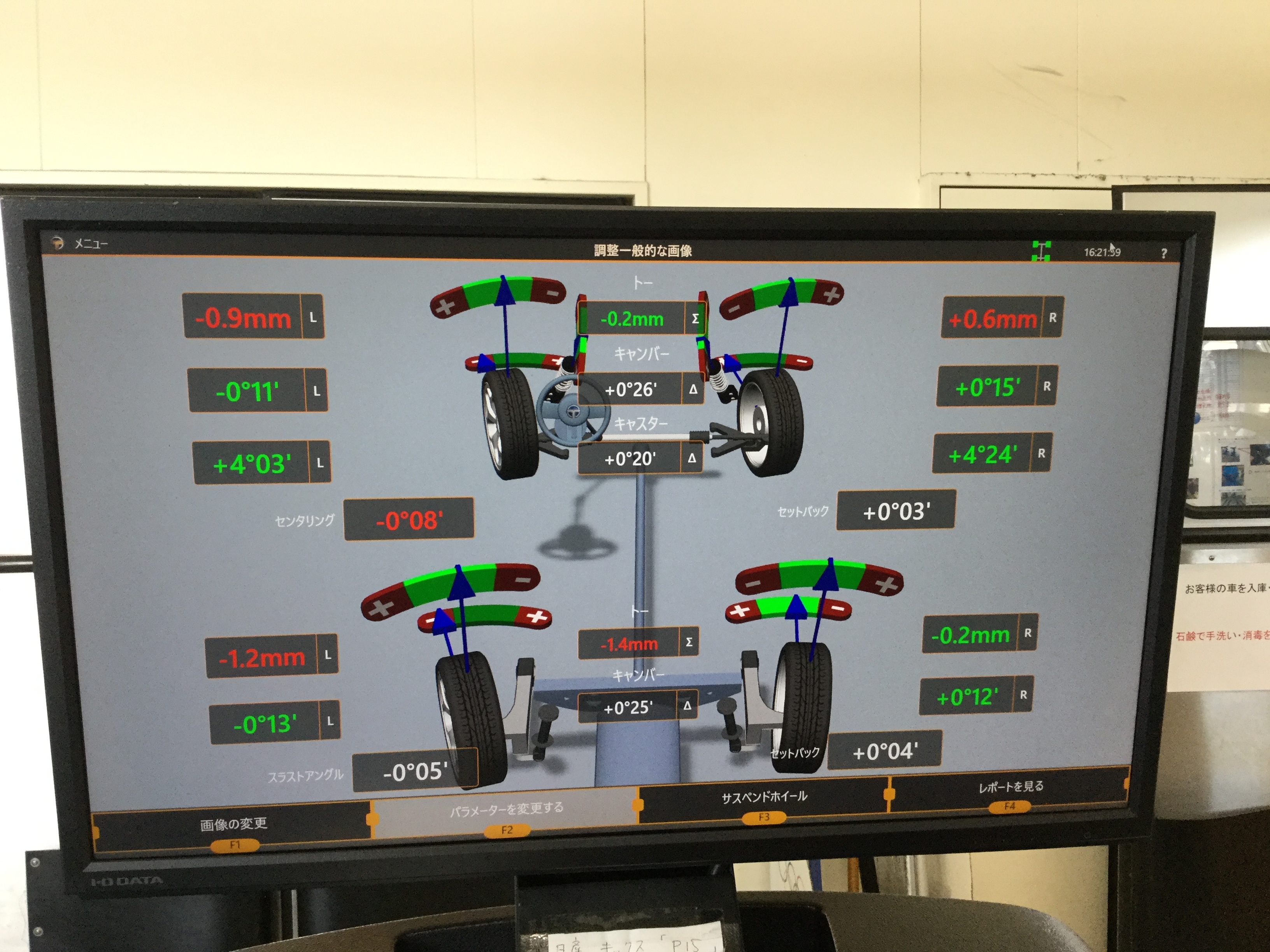 ↓↓↓↓コチラのお車はフロントトー角の調整のみ可能ですので、基準値+0.0mmに左右共に調整いたしました↓↓↓↓