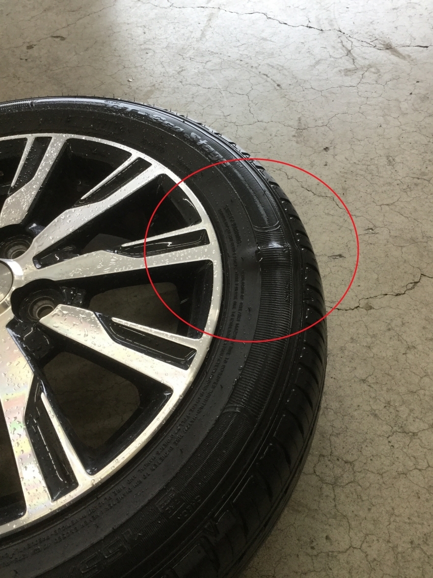この状態の原因としては、「タイヤを縁石に乗り上げた」「タイヤを擦ってしまった」そんな時に起こりやすいです!