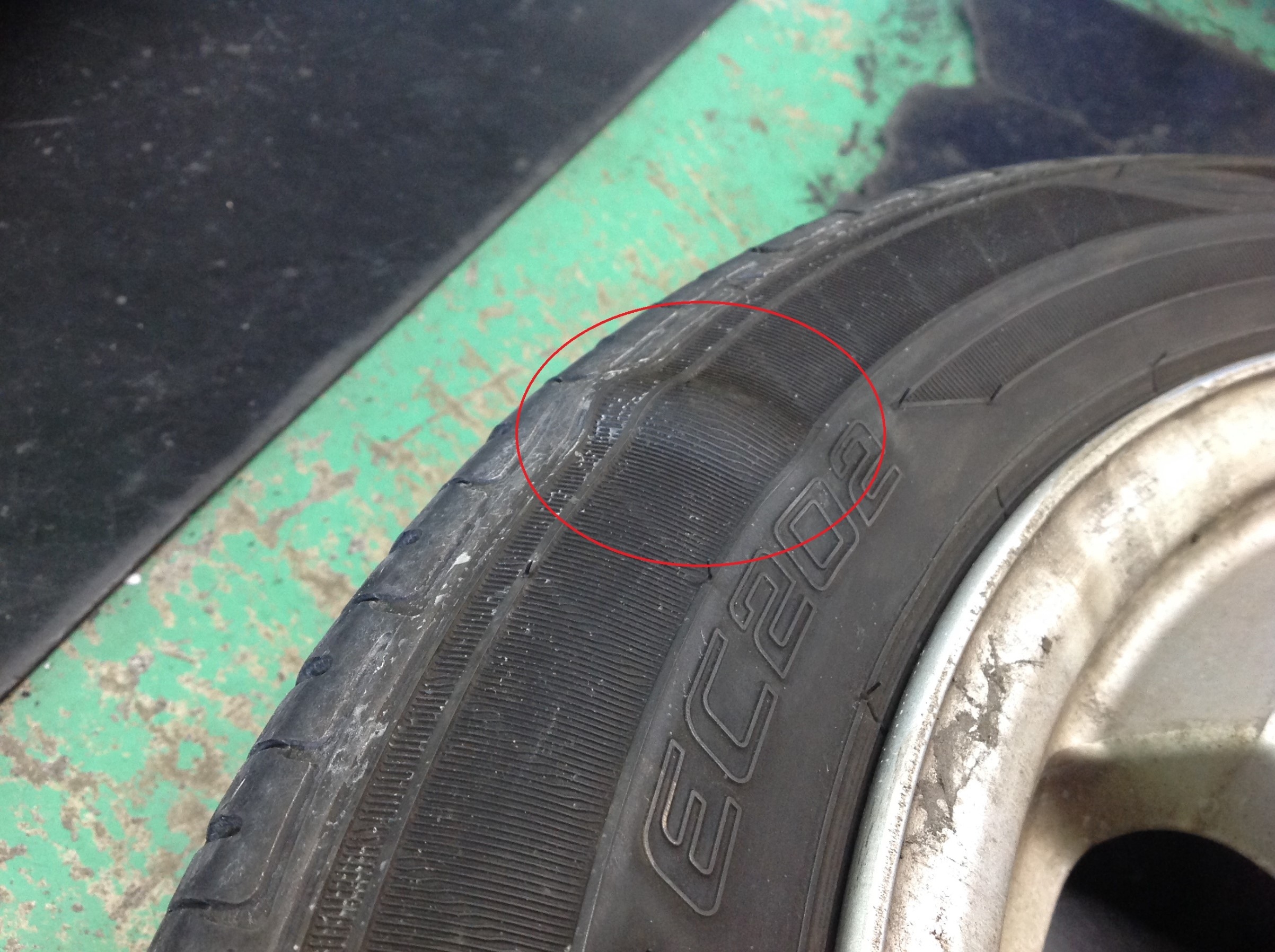これは、簡単に言うと、カーカスコードというタイヤ内部のワイヤーが切れてしまっている状態です。