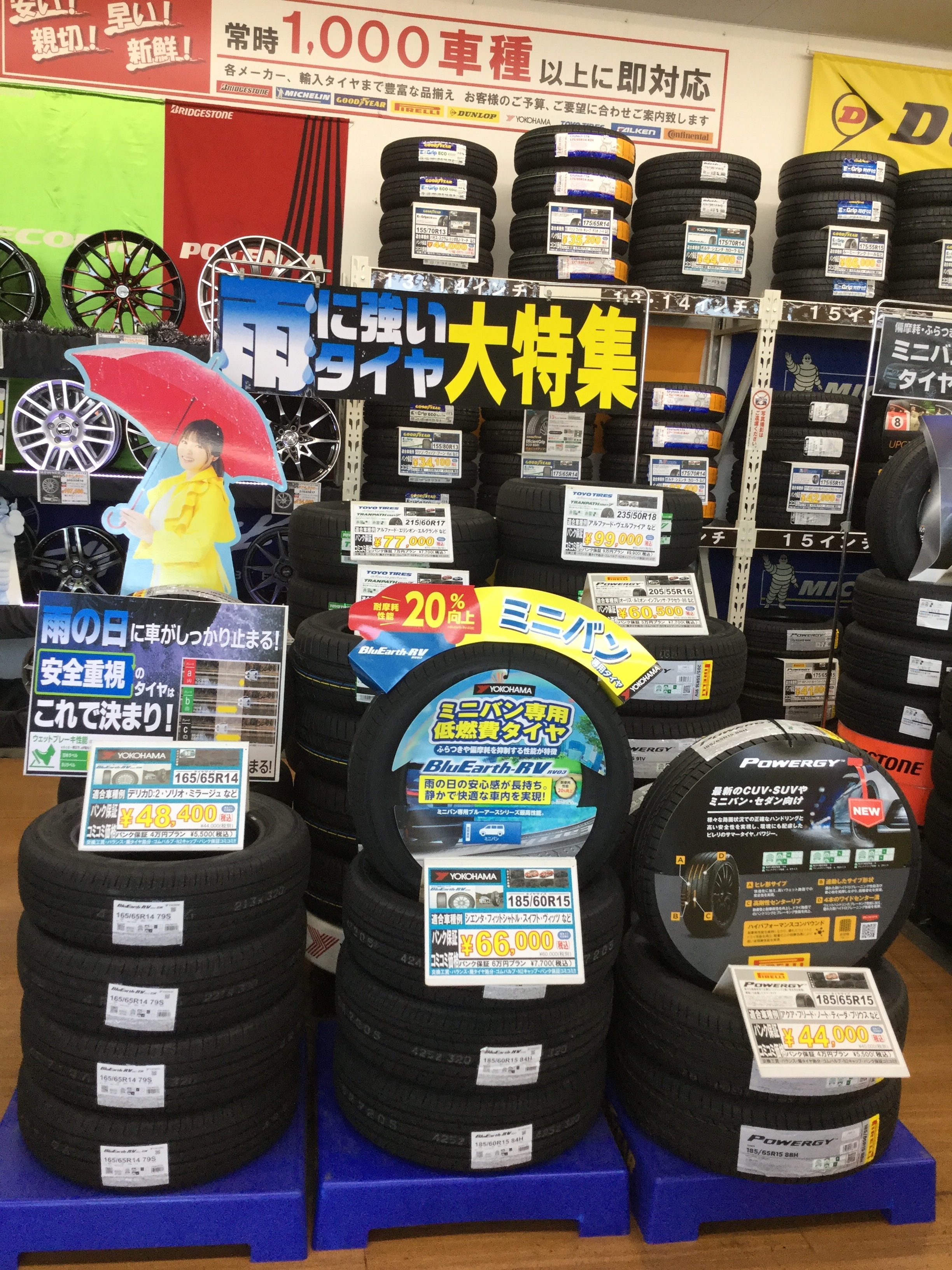 もし、タイヤがそろそろ交換時期だなあという方いらっしゃいましたら、交換を梅雨後に回さないでくださいね!