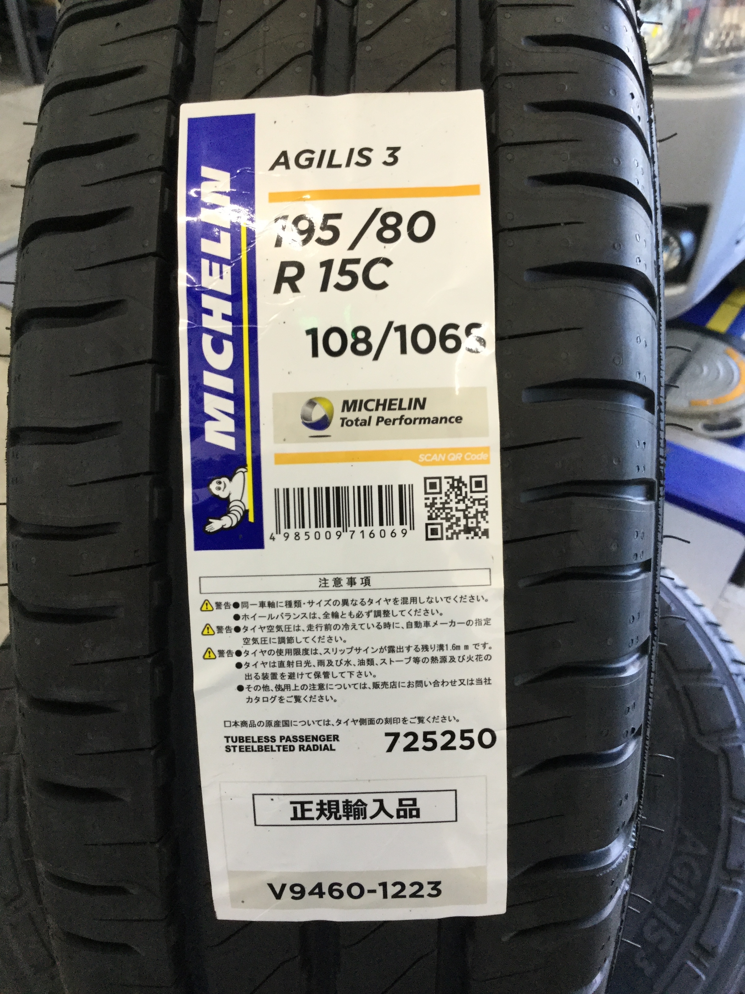 今回のタイヤ交換は、トヨタ ハイエースに 195/80R15C サイズの