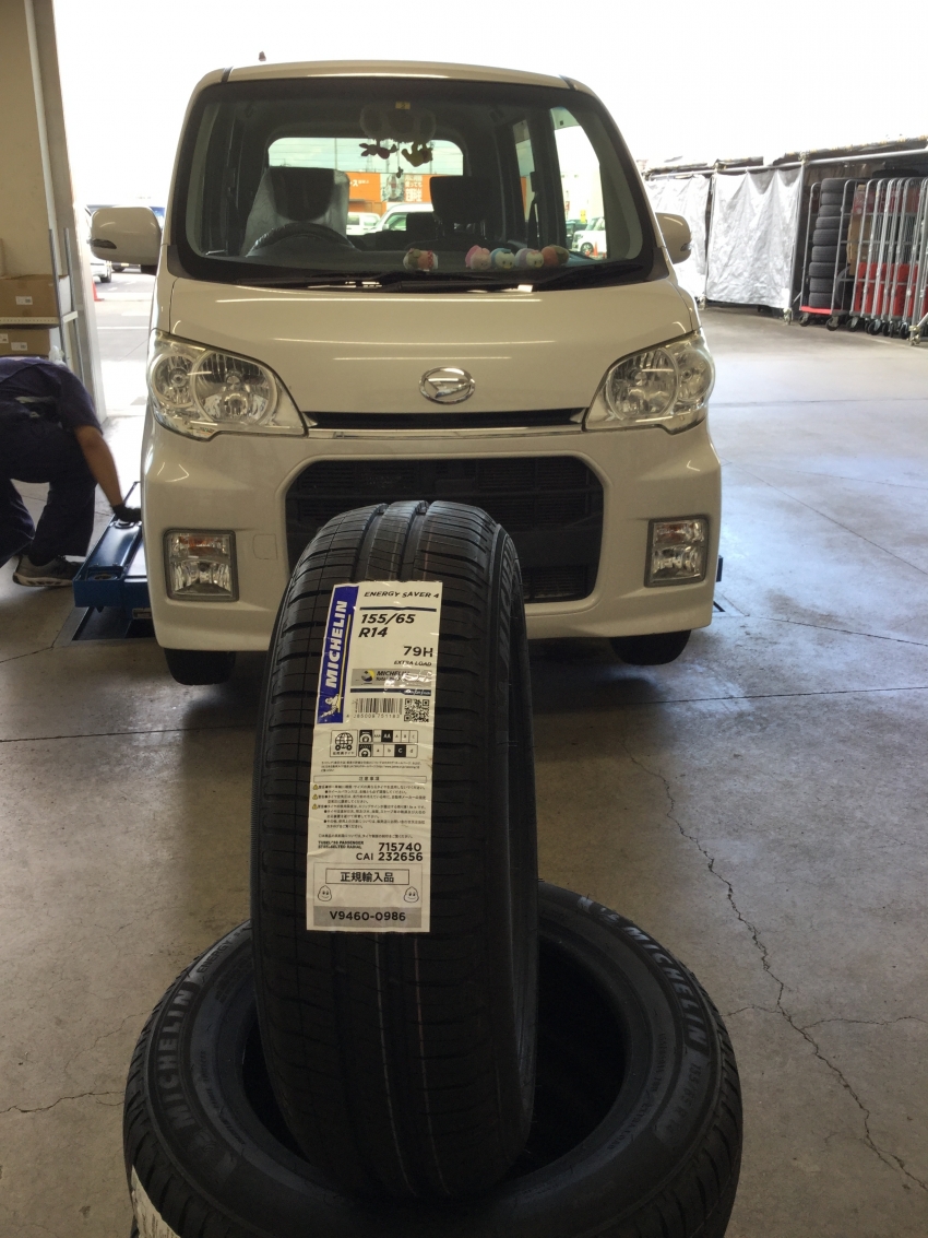 本日は、ダイハツ タントエグゼに 155/65R14サイズの