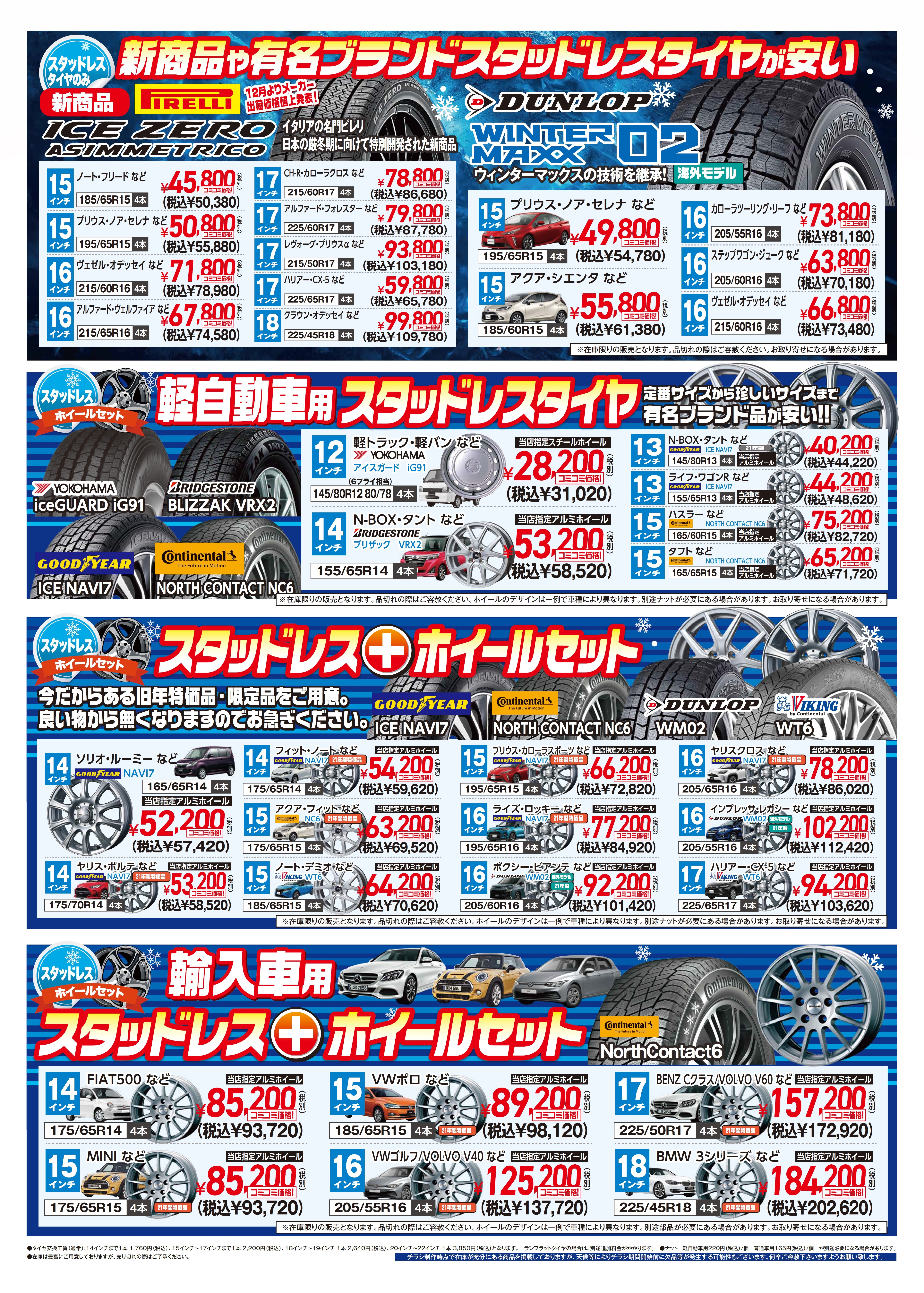 まだまだ続く、生活必需品など値上げ続きの今、冬本番前のご準備に『特選スタッドレスホイールセット』など、家計応援価格にて販売いたします(^_-)-☆