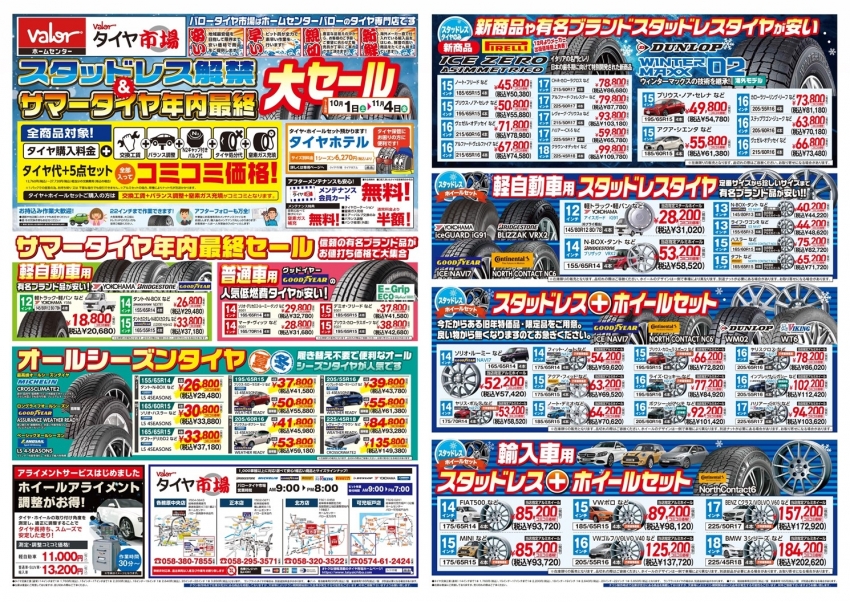 冬本番で焦らない為にも、スタッドレスタイヤもホイールセットも、この機会をお見逃しのないよう、タイヤ市場北方店までお越しくださいませ!