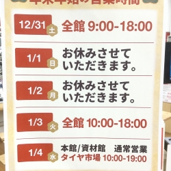 AM9:00~PM8:00(ピット作業受付:AM9:00~PM7:00)1月/2月/5月/6月/7月/8月/9月