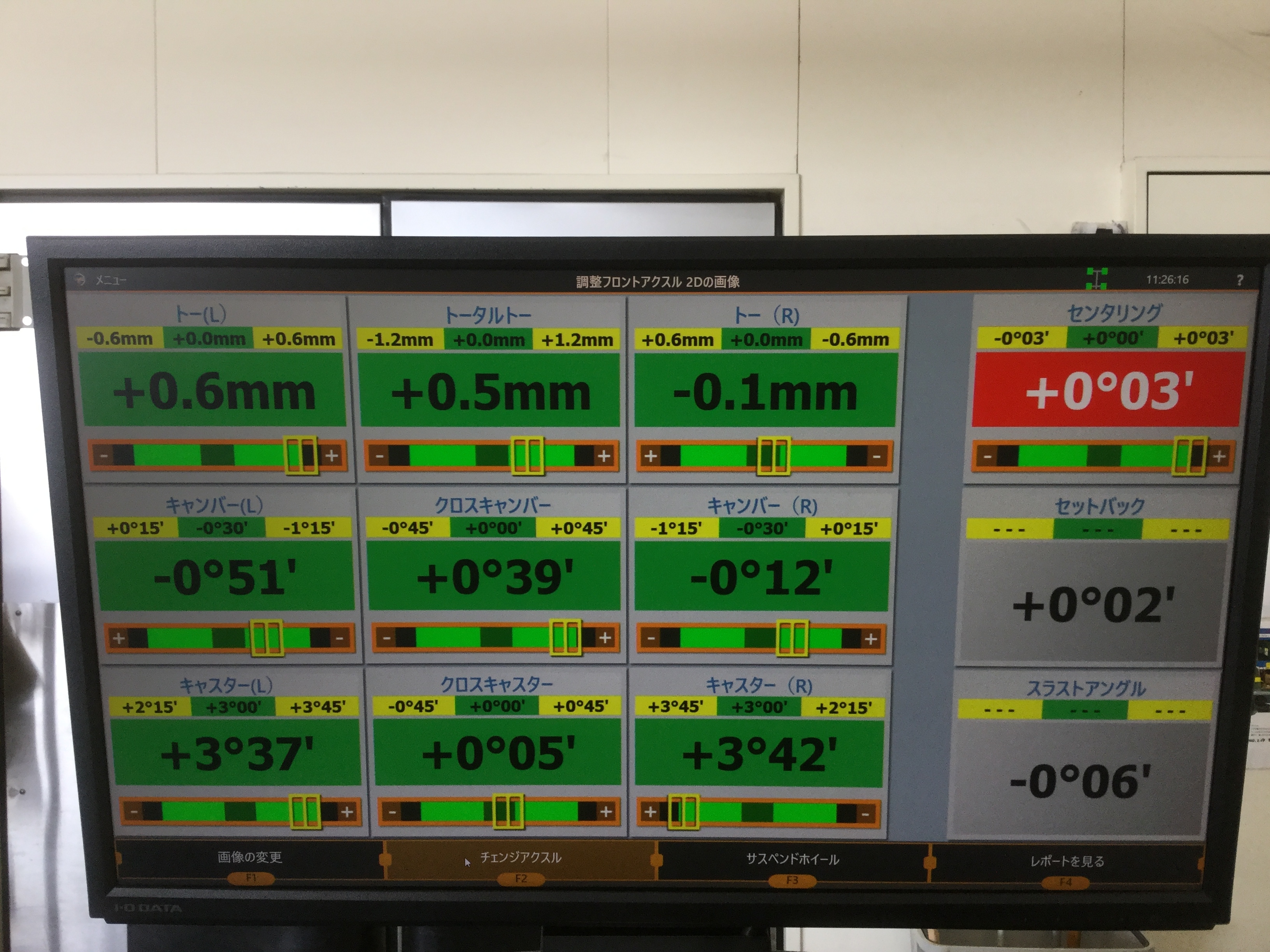 ウィッシュは主にフロントが調整箇所となっておりますので、基準値に向けて、しっかり調整です!